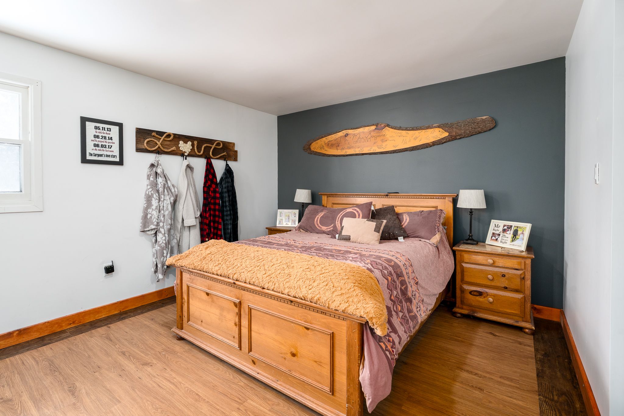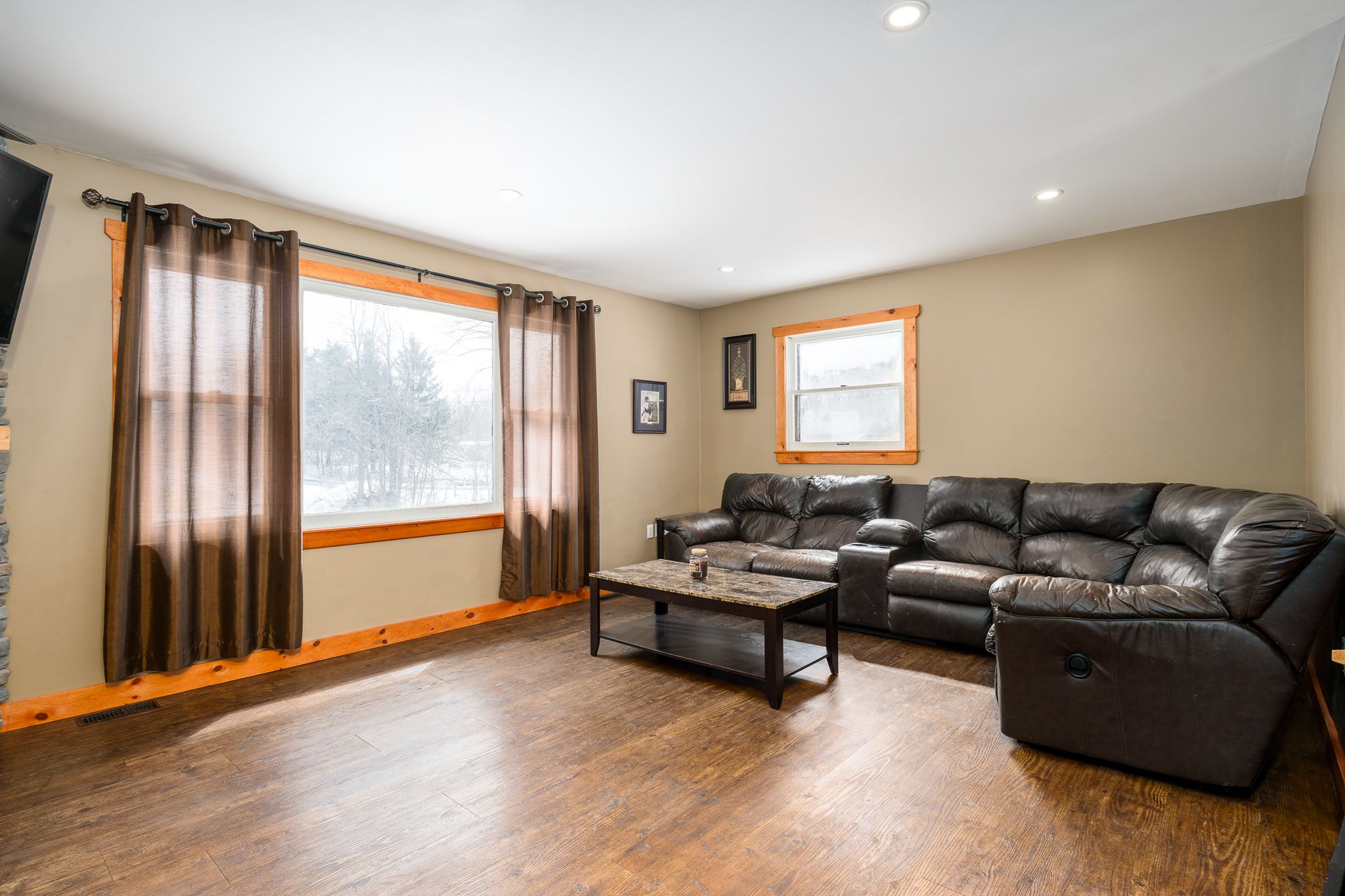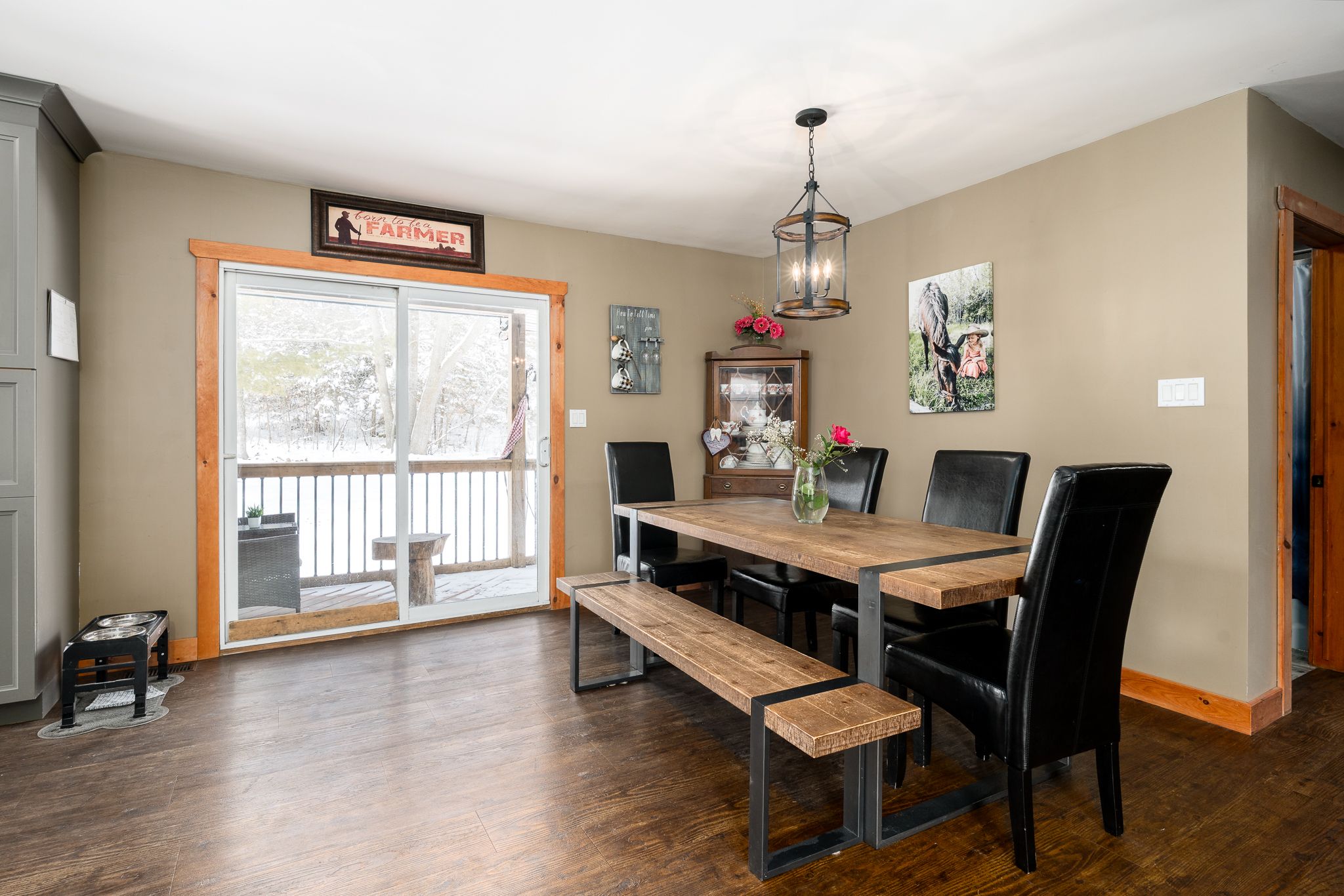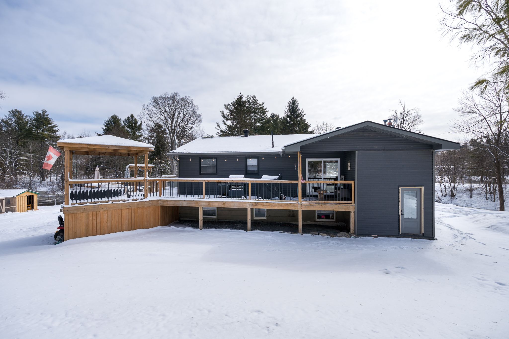 Welcome to peaceful country living in this lovely updated bungalow, set on just over an acre of picturesque property. Surrounded by mature trees and featuring a gently flowing stream, this setting offers the perfect blend of tranquility and space for the whole family to enjoy. Spend your summers entertaining on the expansive deck, cooling off in the above-ground pool, and watching the kids play freely in the wide-open yard. Step inside to a spacious and practical mudroom, ideal for busy family life, which leads into a bright and inviting open-concept main level. Filled with natural light, this space showcases a stunning kitchen complete with warm wood countertops and seamless flow into the dining area, where patio doors lead directly out to the backyard oasis. The cozy living room provides the perfect place to unwind at the end of the day. The main floor also features a generous primary bedroom with a walk-in closet, along with a well-appointed 4-piece bathroom. Downstairs, the fully finished lower level offers even more living space, including a comfortable family room with a charming wood stove, three additional bedrooms, and a 3-piece bathroom combined with convenient laundry. A truly welcoming country property, offering comfort, charm, and room to grow-this is a place you'll be proud to call home.