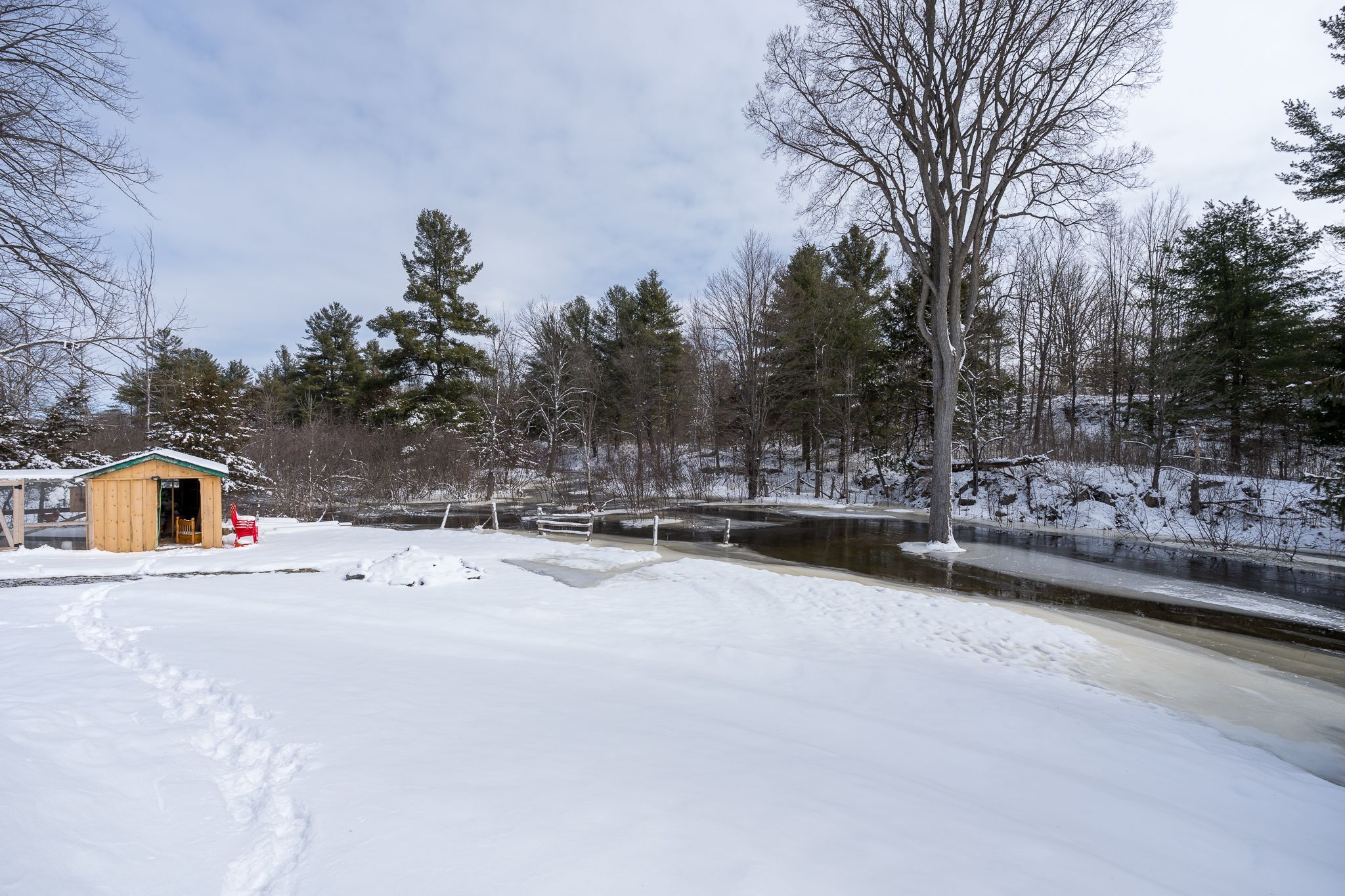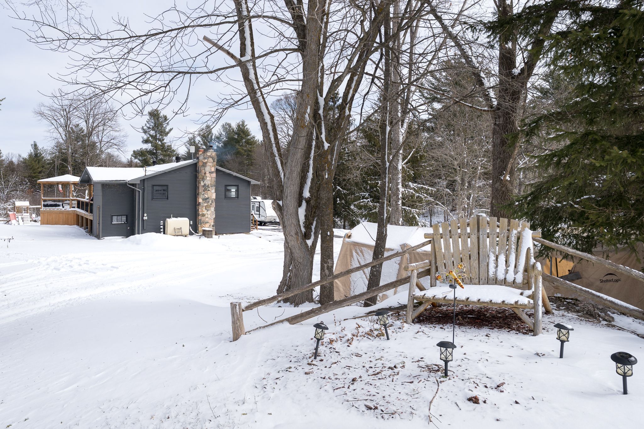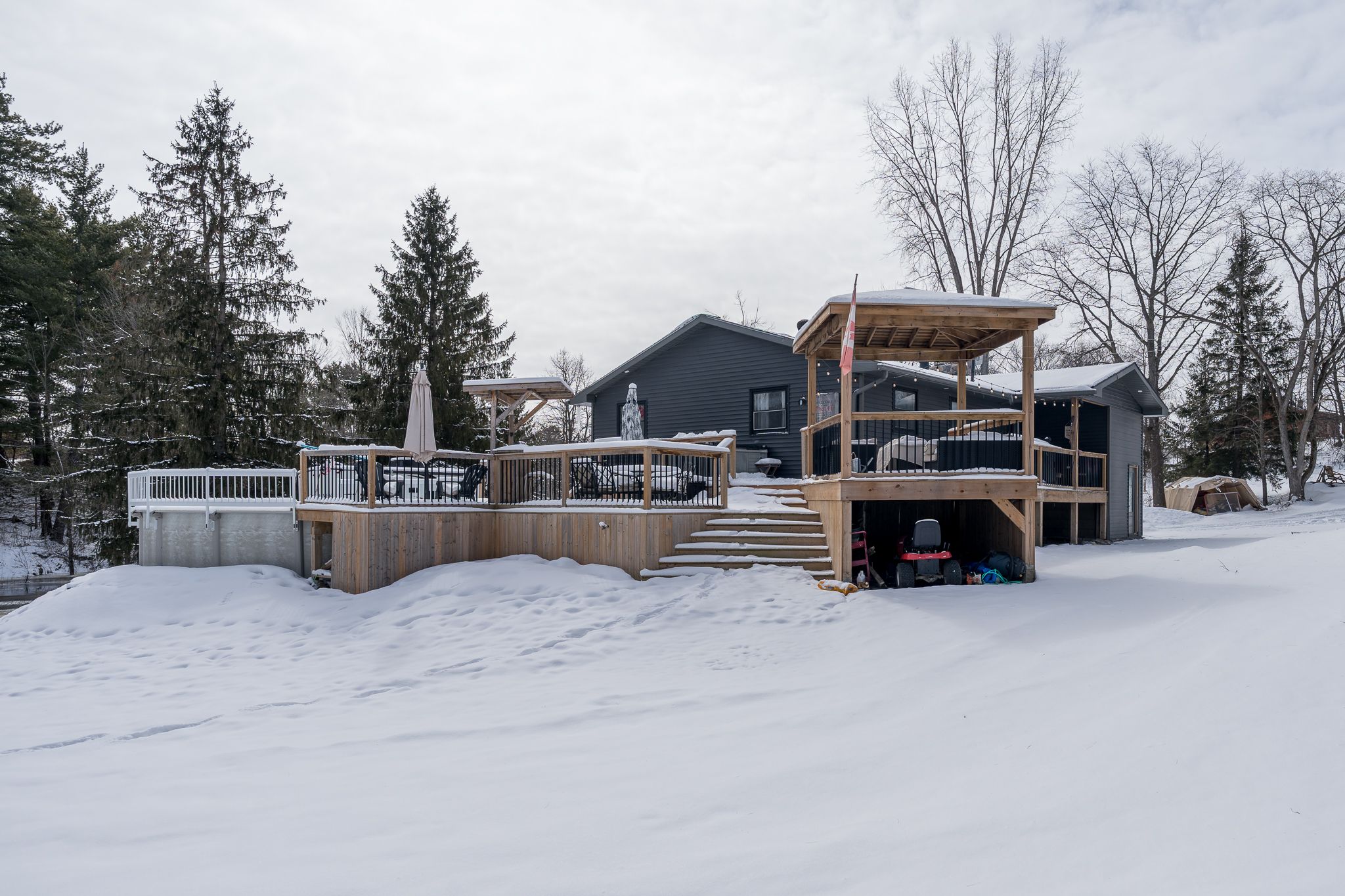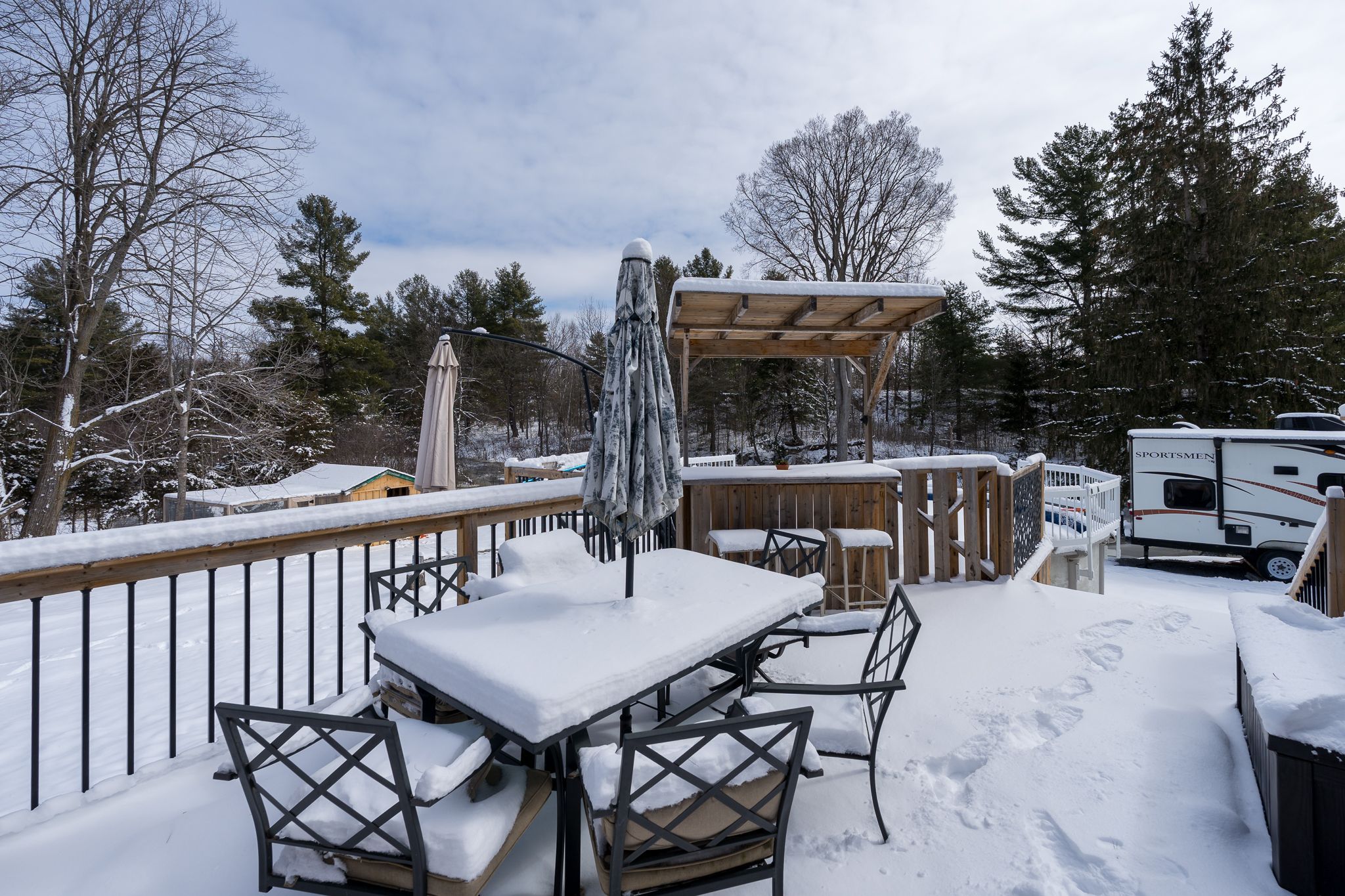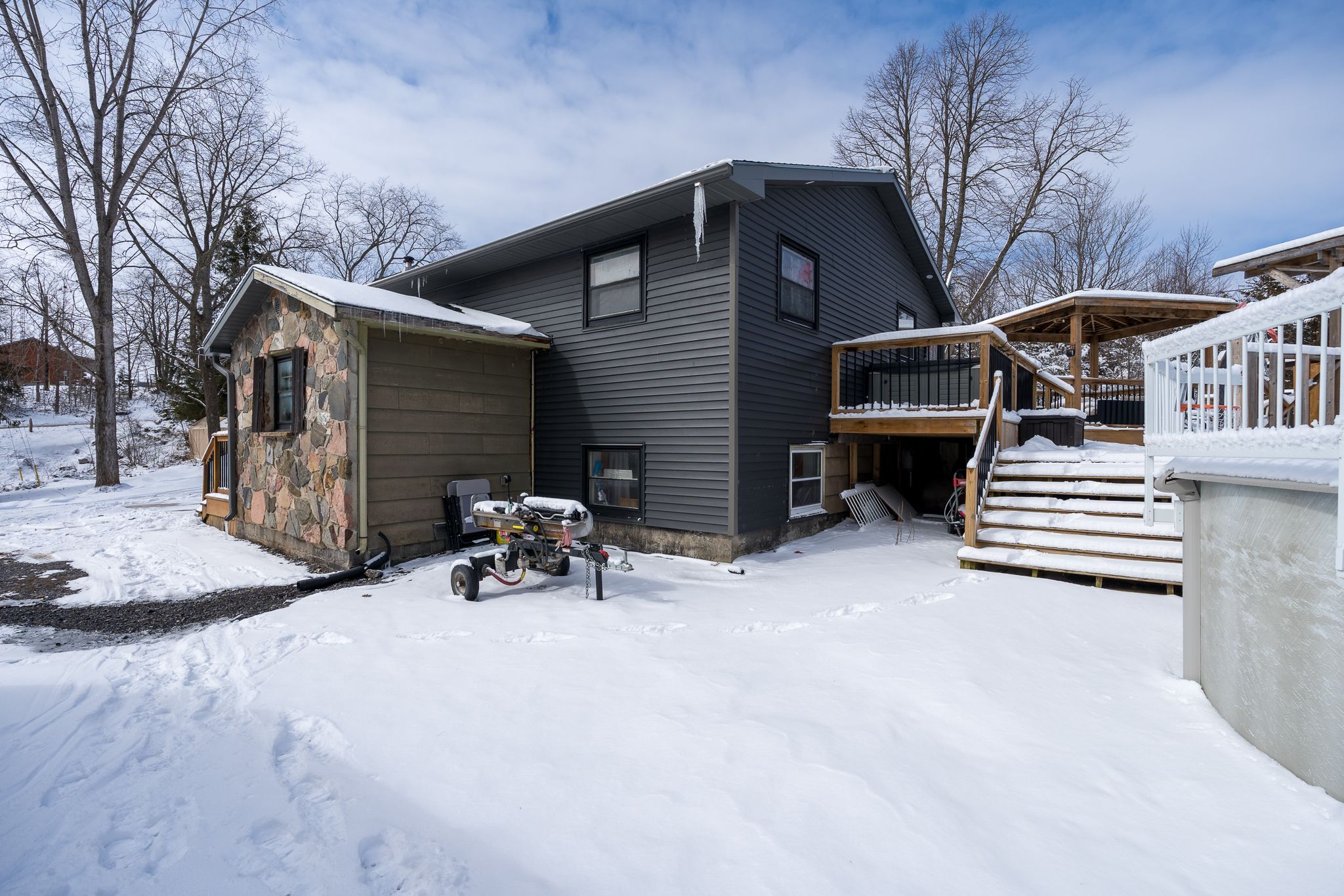 Welcome to peaceful country living in this lovely updated bungalow, set on just over an acre of picturesque property. Surrounded by mature trees and featuring a gently flowing stream, this setting offers the perfect blend of tranquility and space for the whole family to enjoy. Spend your summers entertaining on the expansive deck, cooling off in the above-ground pool, and watching the kids play freely in the wide-open yard. Step inside to a spacious and practical mudroom, ideal for busy family life, which leads into a bright and inviting open-concept main level. Filled with natural light, this space showcases a stunning kitchen complete with warm wood countertops and seamless flow into the dining area, where patio doors lead directly out to the backyard oasis. The cozy living room provides the perfect place to unwind at the end of the day. The main floor also features a generous primary bedroom with a walk-in closet, along with a well-appointed 4-piece bathroom. Downstairs, the fully finished lower level offers even more living space, including a comfortable family room with a charming wood stove, three additional bedrooms, and a 3-piece bathroom combined with convenient laundry. A truly welcoming country property, offering comfort, charm, and room to grow-this is a place you'll be proud to call home.