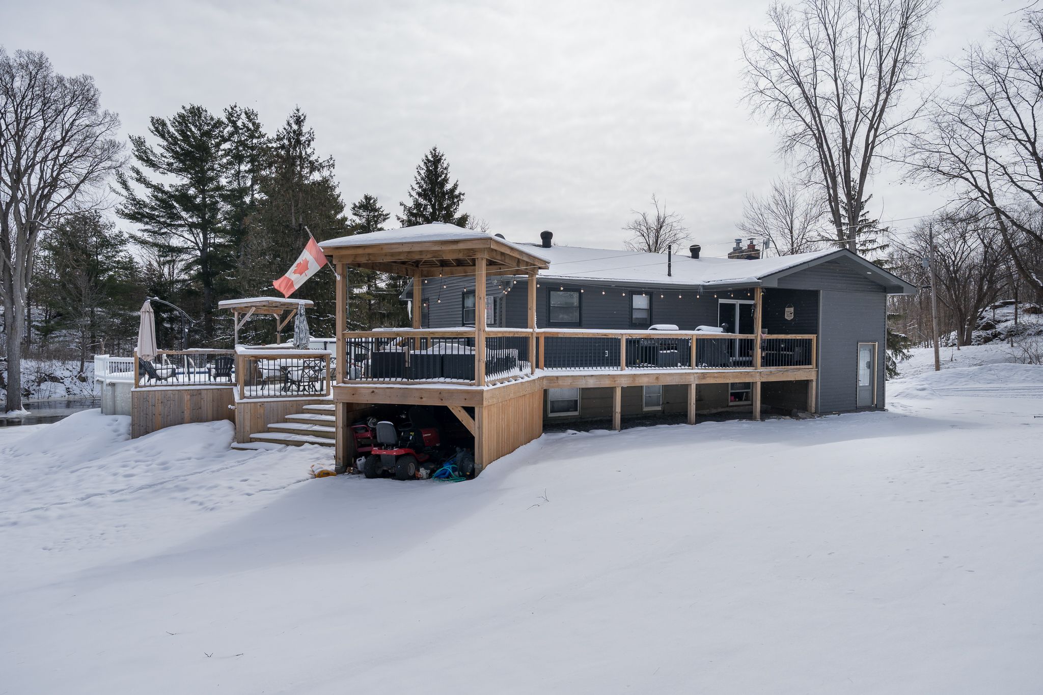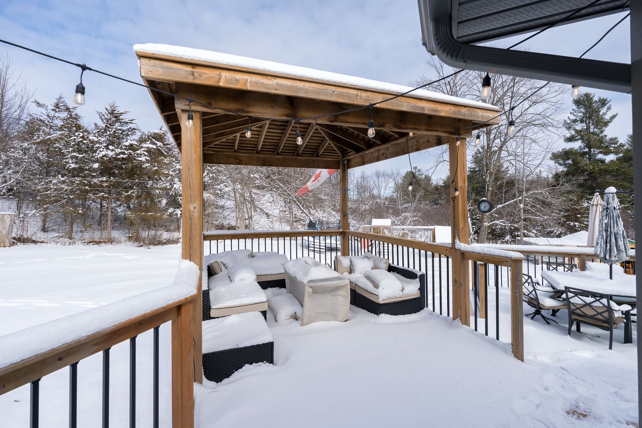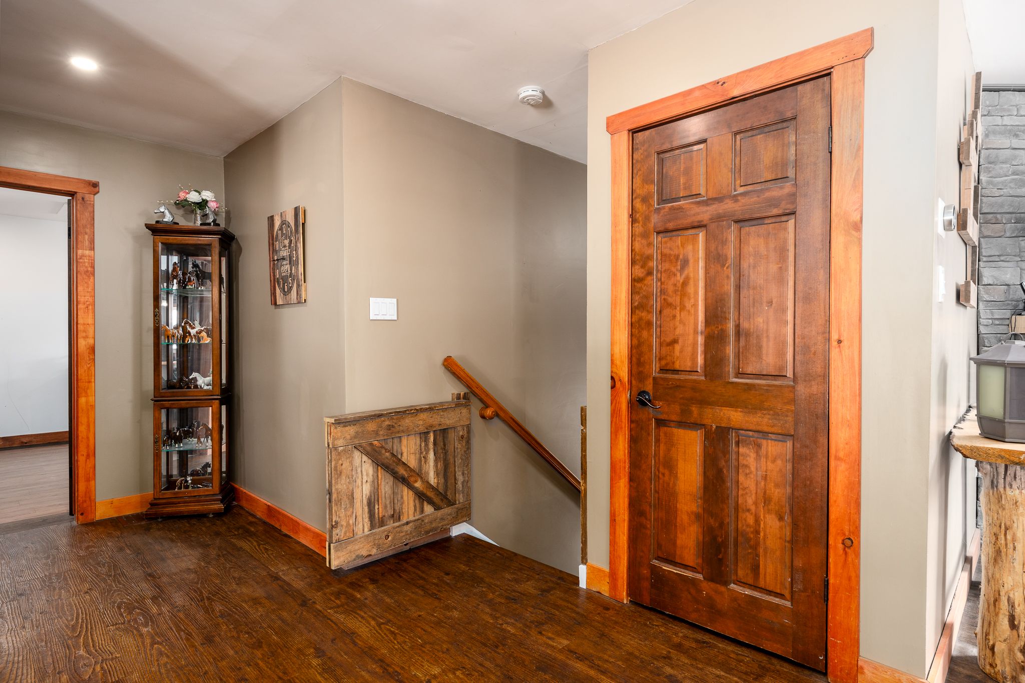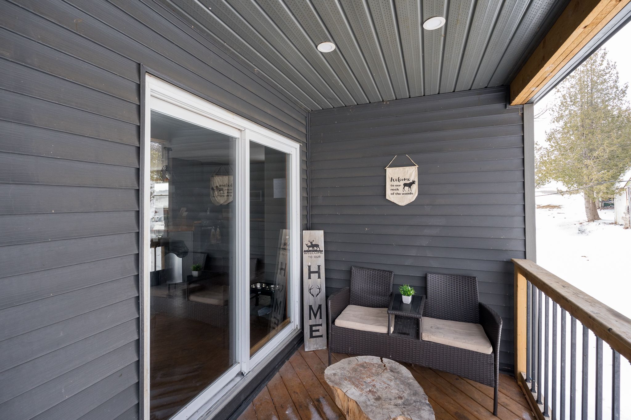 Welcome to peaceful country living in this lovely updated bungalow, set on just over an acre of picturesque property. Surrounded by mature trees and featuring a gently flowing stream, this setting offers the perfect blend of tranquility and space for the whole family to enjoy. Spend your summers entertaining on the expansive deck, cooling off in the above-ground pool, and watching the kids play freely in the wide-open yard. Step inside to a spacious and practical mudroom, ideal for busy family life, which leads into a bright and inviting open-concept main level. Filled with natural light, this space showcases a stunning kitchen complete with warm wood countertops and seamless flow into the dining area, where patio doors lead directly out to the backyard oasis. The cozy living room provides the perfect place to unwind at the end of the day. The main floor also features a generous primary bedroom with a walk-in closet, along with a well-appointed 4-piece bathroom. Downstairs, the fully finished lower level offers even more living space, including a comfortable family room with a charming wood stove, three additional bedrooms, and a 3-piece bathroom combined with convenient laundry. A truly welcoming country property, offering comfort, charm, and room to grow-this is a place you'll be proud to call home.
