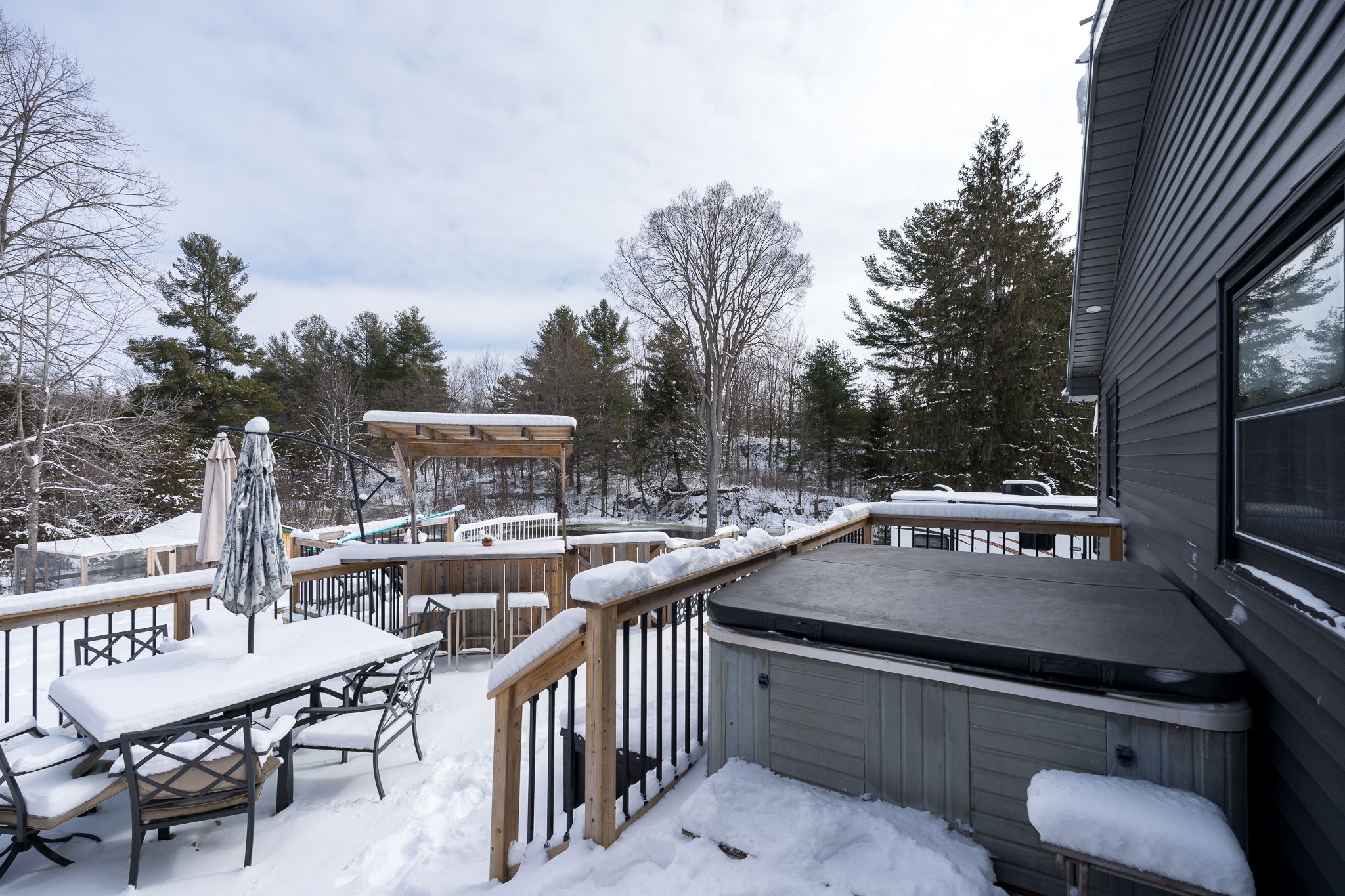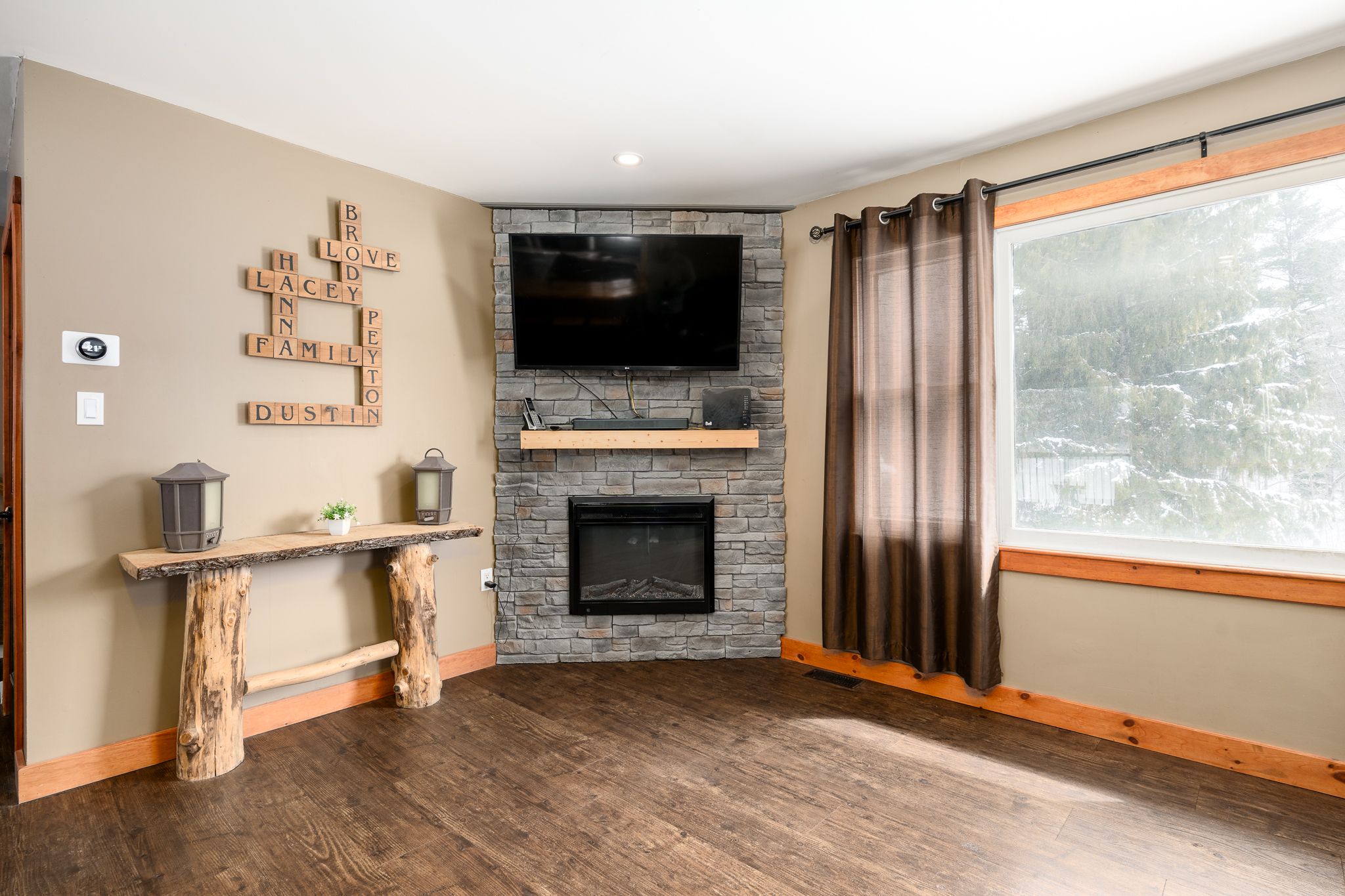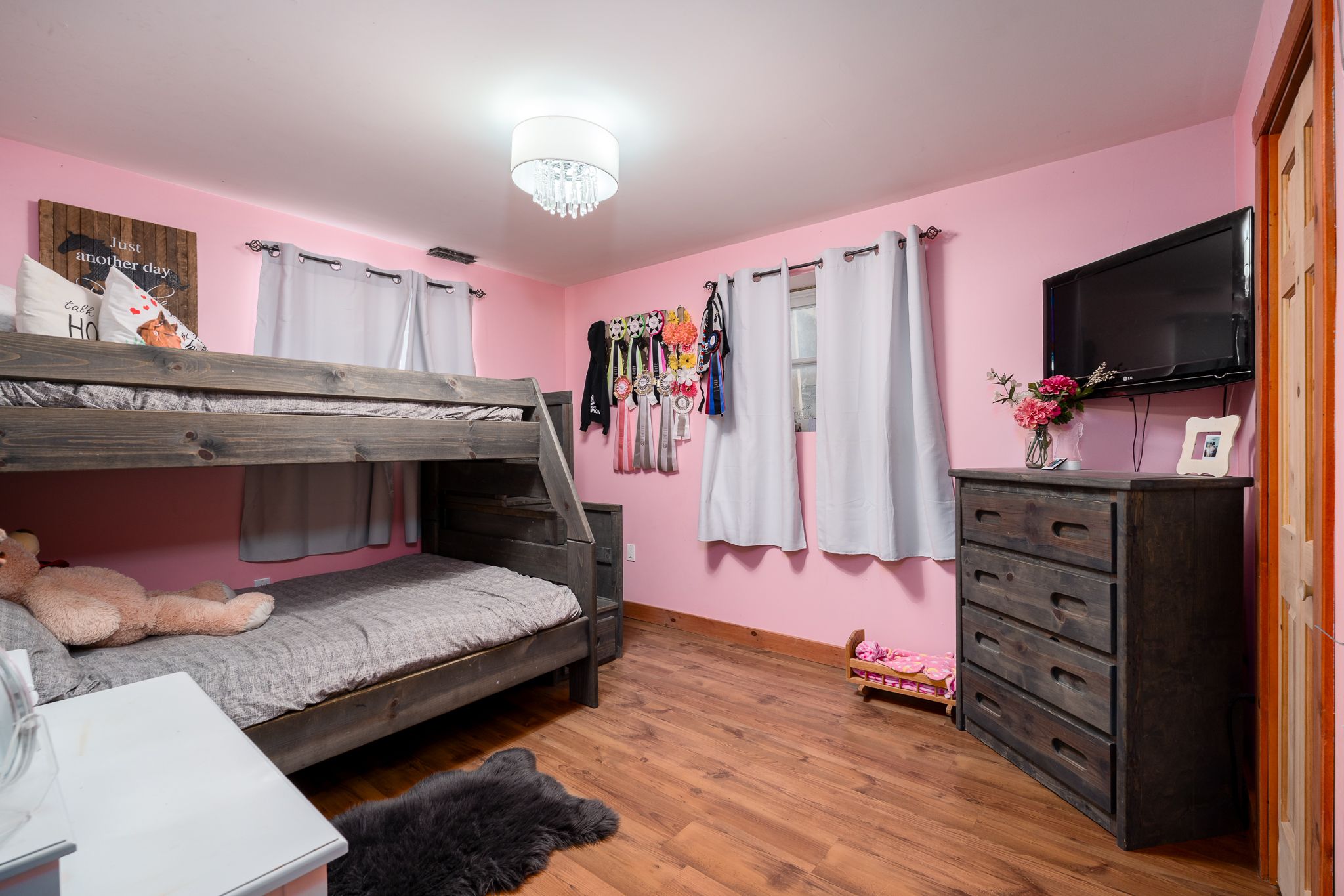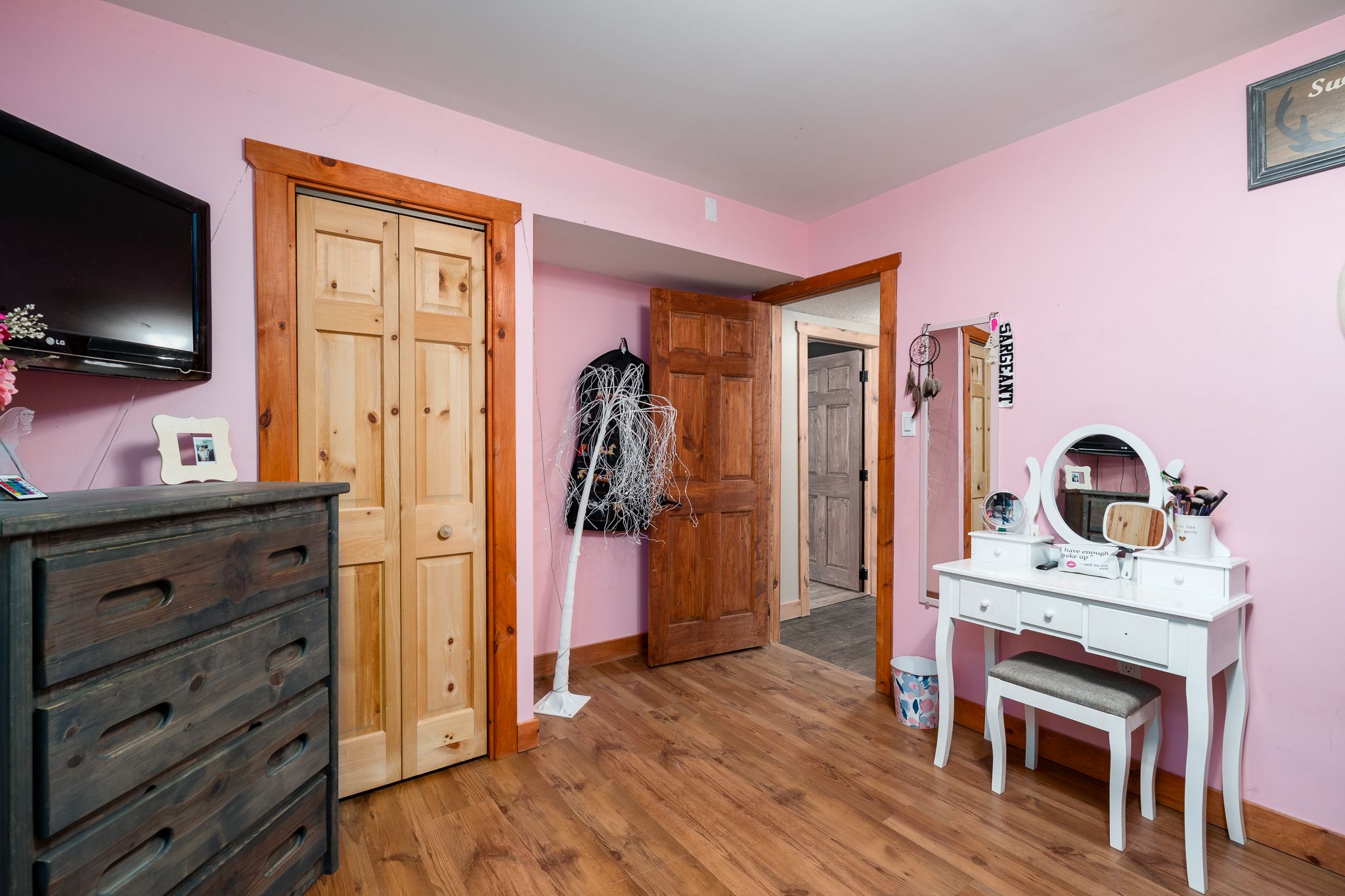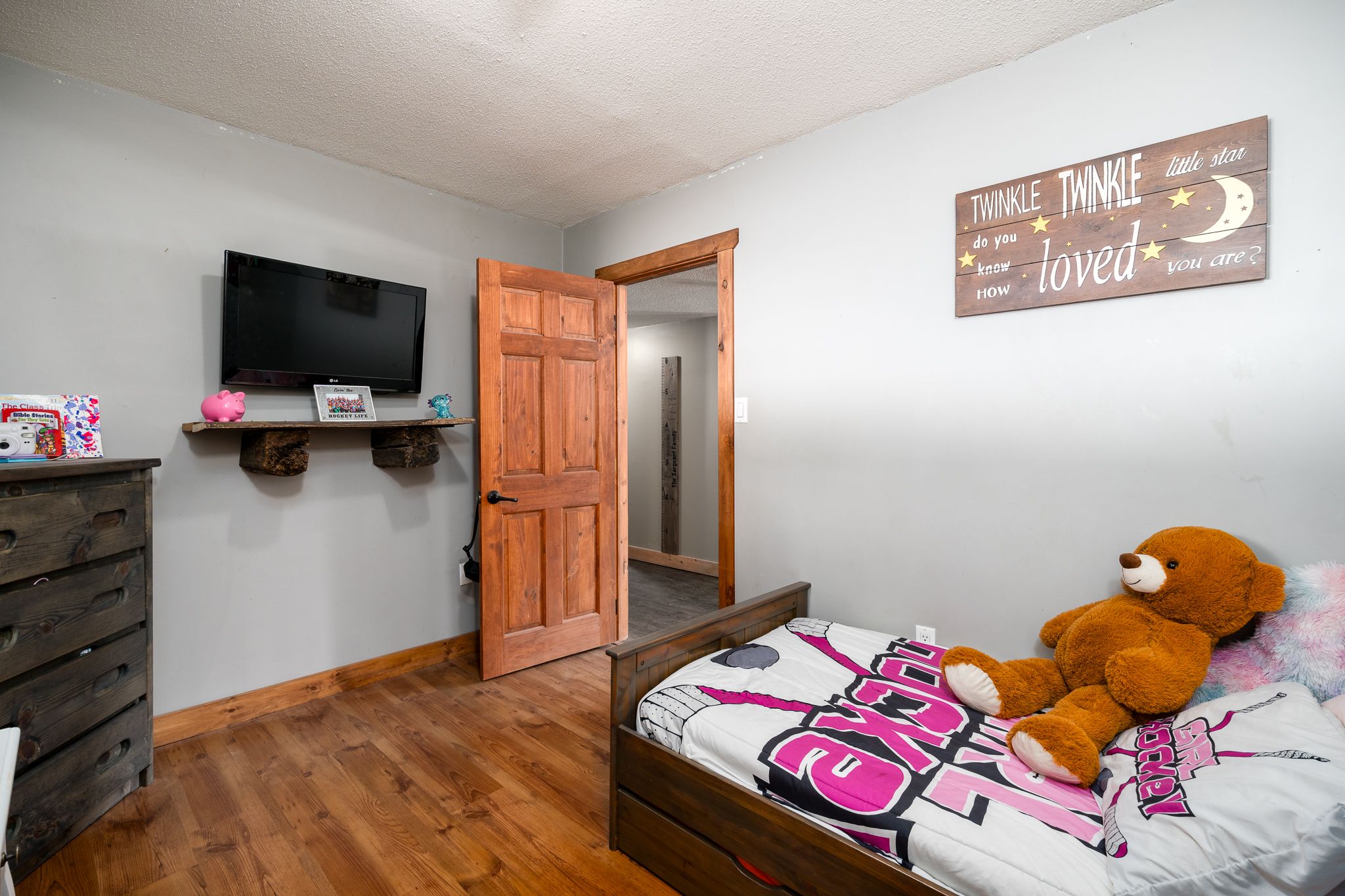 Welcome to peaceful country living in this lovely updated bungalow, set on just over an acre of picturesque property. Surrounded by mature trees and featuring a gently flowing stream, this setting offers the perfect blend of tranquility and space for the whole family to enjoy. Spend your summers entertaining on the expansive deck, cooling off in the above-ground pool, and watching the kids play freely in the wide-open yard. Step inside to a spacious and practical mudroom, ideal for busy family life, which leads into a bright and inviting open-concept main level. Filled with natural light, this space showcases a stunning kitchen complete with warm wood countertops and seamless flow into the dining area, where patio doors lead directly out to the backyard oasis. The cozy living room provides the perfect place to unwind at the end of the day. The main floor also features a generous primary bedroom with a walk-in closet, along with a well-appointed 4-piece bathroom. Downstairs, the fully finished lower level offers even more living space, including a comfortable family room with a charming wood stove, three additional bedrooms, and a 3-piece bathroom combined with convenient laundry. A truly welcoming country property, offering comfort, charm, and room to grow-this is a place you'll be proud to call home.