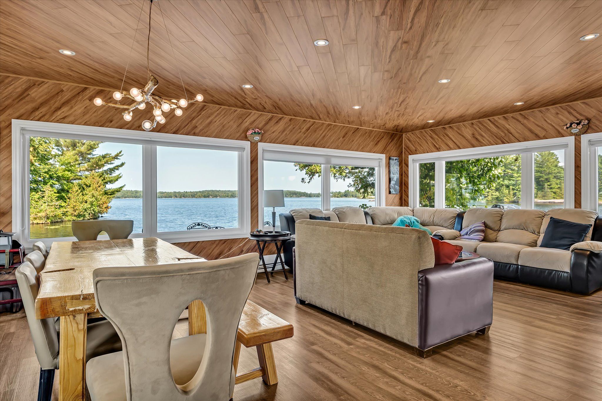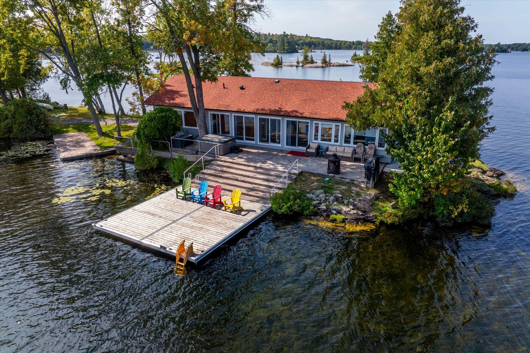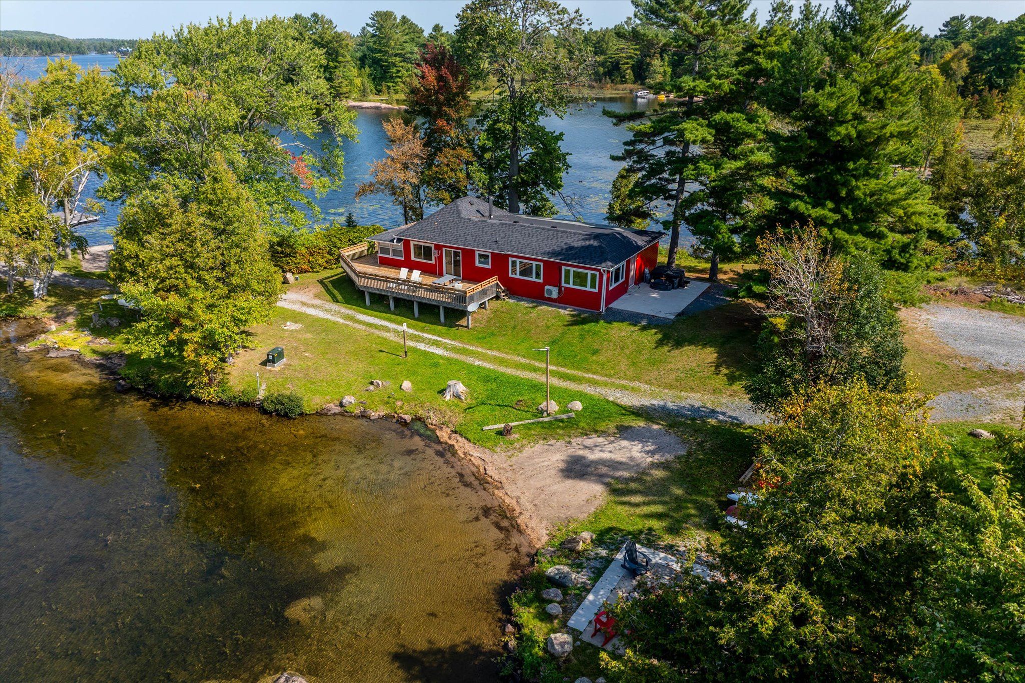 Welcome to an awe-inspiring 13-acre peninsula on stoney lake, featuring a private waterfront with nearly 3,000-foot shoreline. This remarkable estate includes two fully updated, year-round cottages, each with three large bedrooms and three modern bathrooms, making them perfect for family gatherings or rental opportunities. Delight in the ultimate outdoor experience with private docks, decks, and a beautiful sandy beach. Relax in the peaceful ambiance of the charming gazebo, an ideal spot for sipping morning coffee or admiring the sunset. Each cottage comes with a hot tub for added luxury. Behind this 13-acre retreat lies 2250 gilchrist bay rd, a vast 157-acre property with a residence over 7,300 square feet, once the home of renowned canadian musician ronnie hawkins.