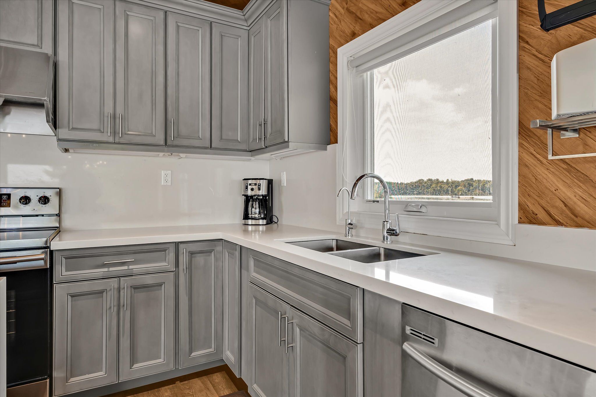 • Outdoor amenities include docks, decks, and a sandy beach.