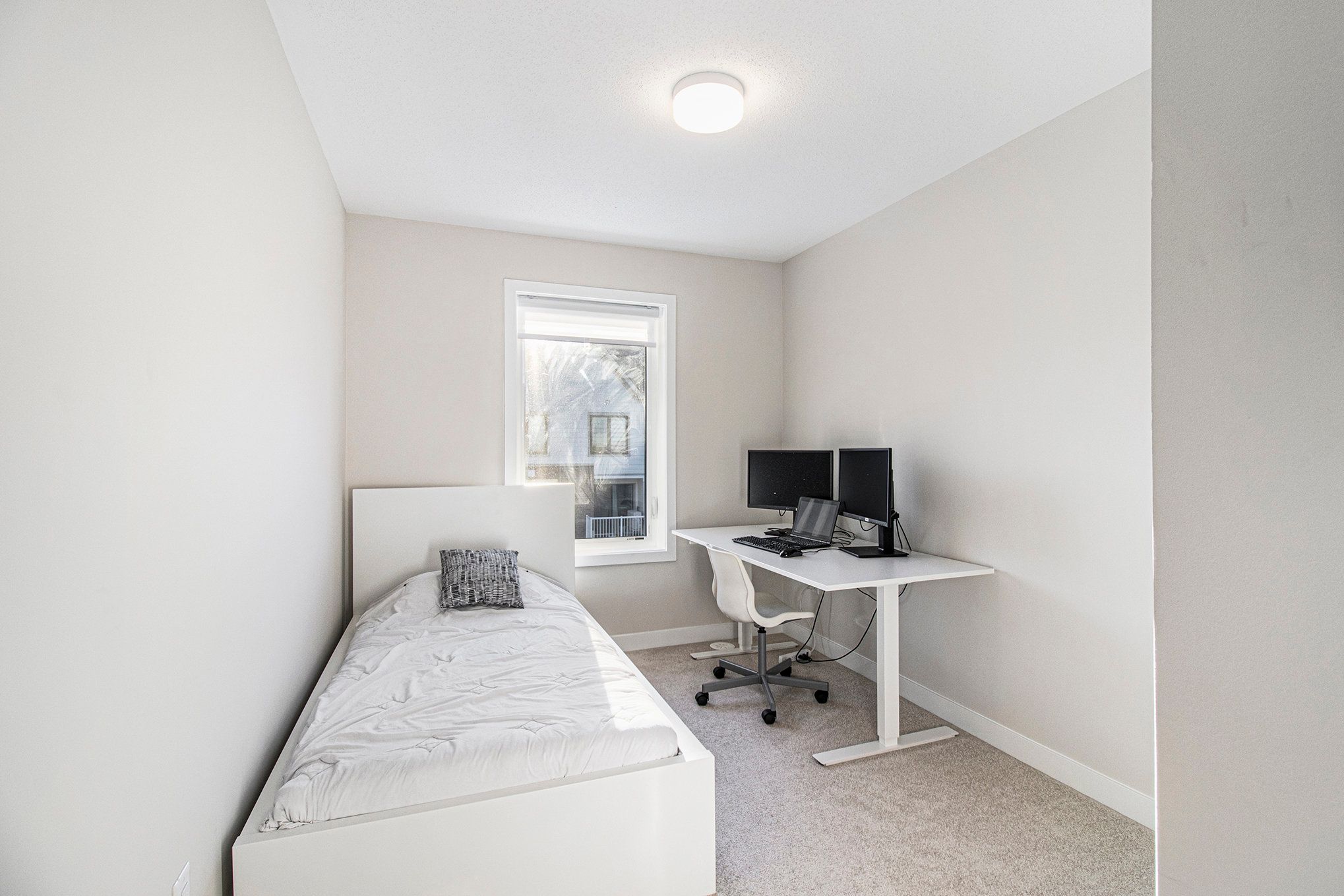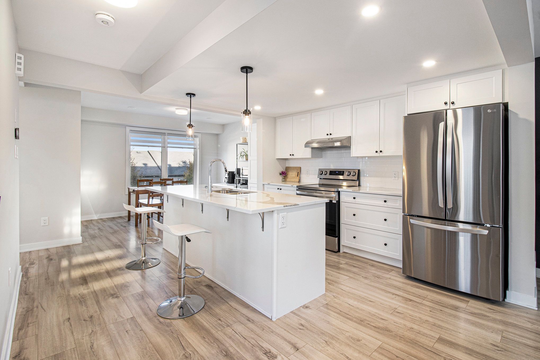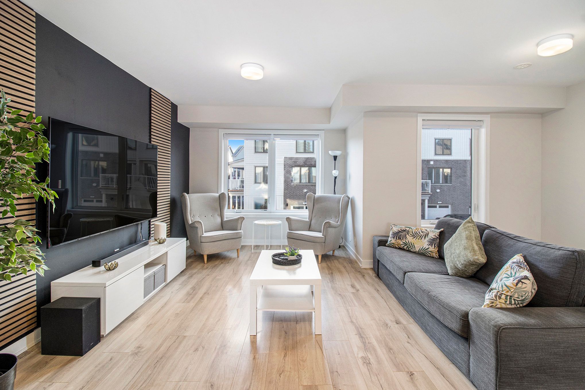 This stunning 2024 mattamy-built 3-storey bedford end-unit townhome offers the perfect combination of modern design, comfort, and functionality in a highly desirable west ottawa location. Over $42. 000 design and structural upgrades (such as guest suite). Situated on a premium corner lot, this home stands out with windows on three sides, creating an exceptionally bright and airy living space filled with natural light throughout the day. The ground floor features a versatile guest suite complete with a full bathroom and patio door access to the backyard-a perfect retreat for guests, in-laws, or use as a private home office. The second level showcases an inviting open-concept living and dining area with southwest exposure, providing warm afternoon sunlight and views of a nearby historic building. The modern kitchen is beautifully appointed with quartz countertops, pots and pans drawers, and upgraded cabinetry. Recessed pot lights and a clean white palette give the space a bright, elegant, and contemporary feel. A smart thermostat adds to the home's comfort and energy efficiency. The third floor features a spacious primary bedroom and a private ensuite bathroom, offering a quiet space to unwind. Additional bedrooms are well-sized and designed to maximize comfort and privacy. A convenient laundry area is also located on the upper floor for everyday ease. With two parking spaces (one garage and one exterior driveway), this home offers both practicality and flexibility. Built in 2024, it comes with the remainder of the tarion warranty, ensuring peace of mind for years to come. Set on a quiet street in a family-friendly and growing community, residents will enjoy nearby walking paths, green spaces, and parks ideal for outdoor activities. Located just minutes from highway 417, public transit, top-rated schools, centrum shopping centre, canadian tire centre, and tanger outlets, this home combines modern living with exceptional convenience.