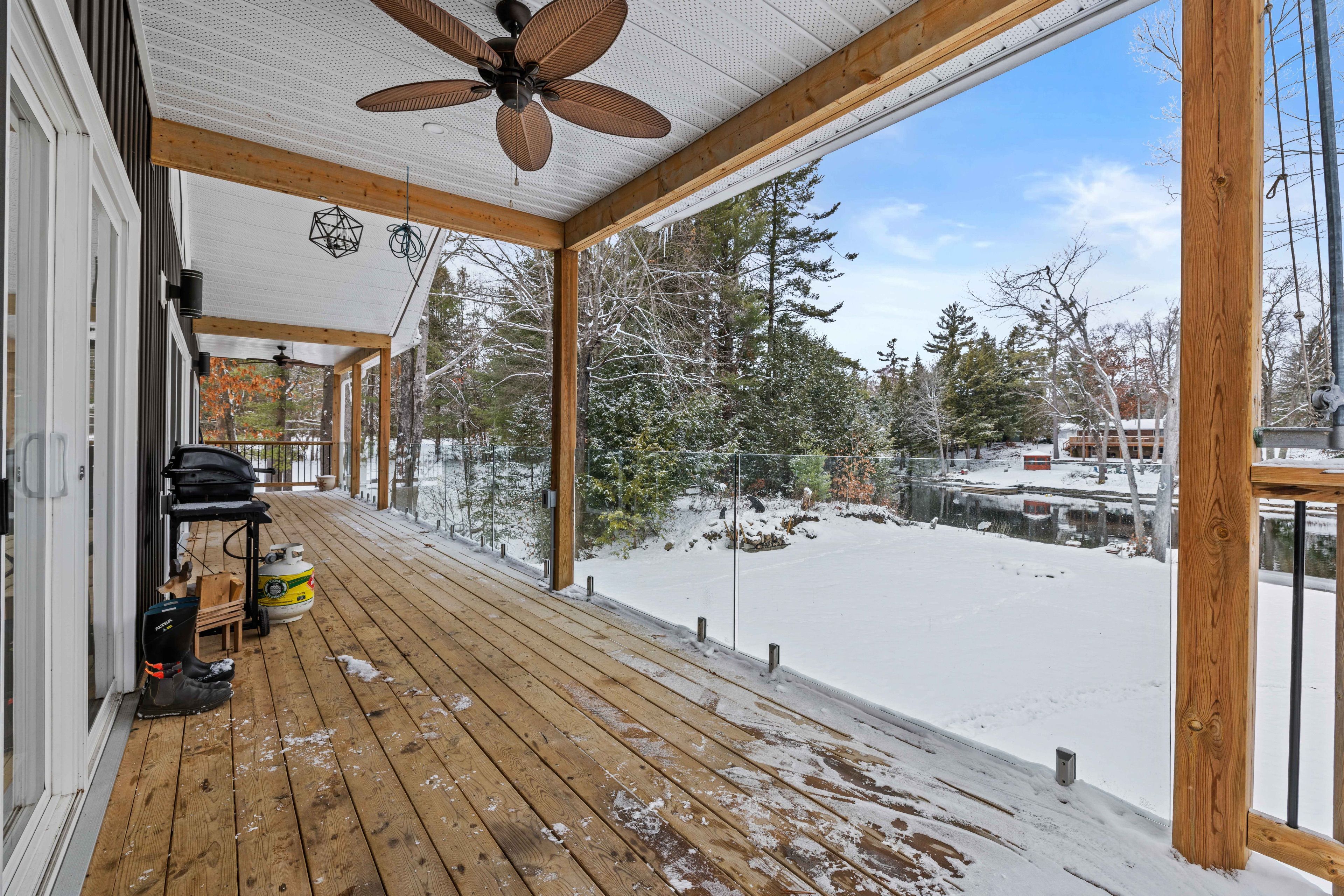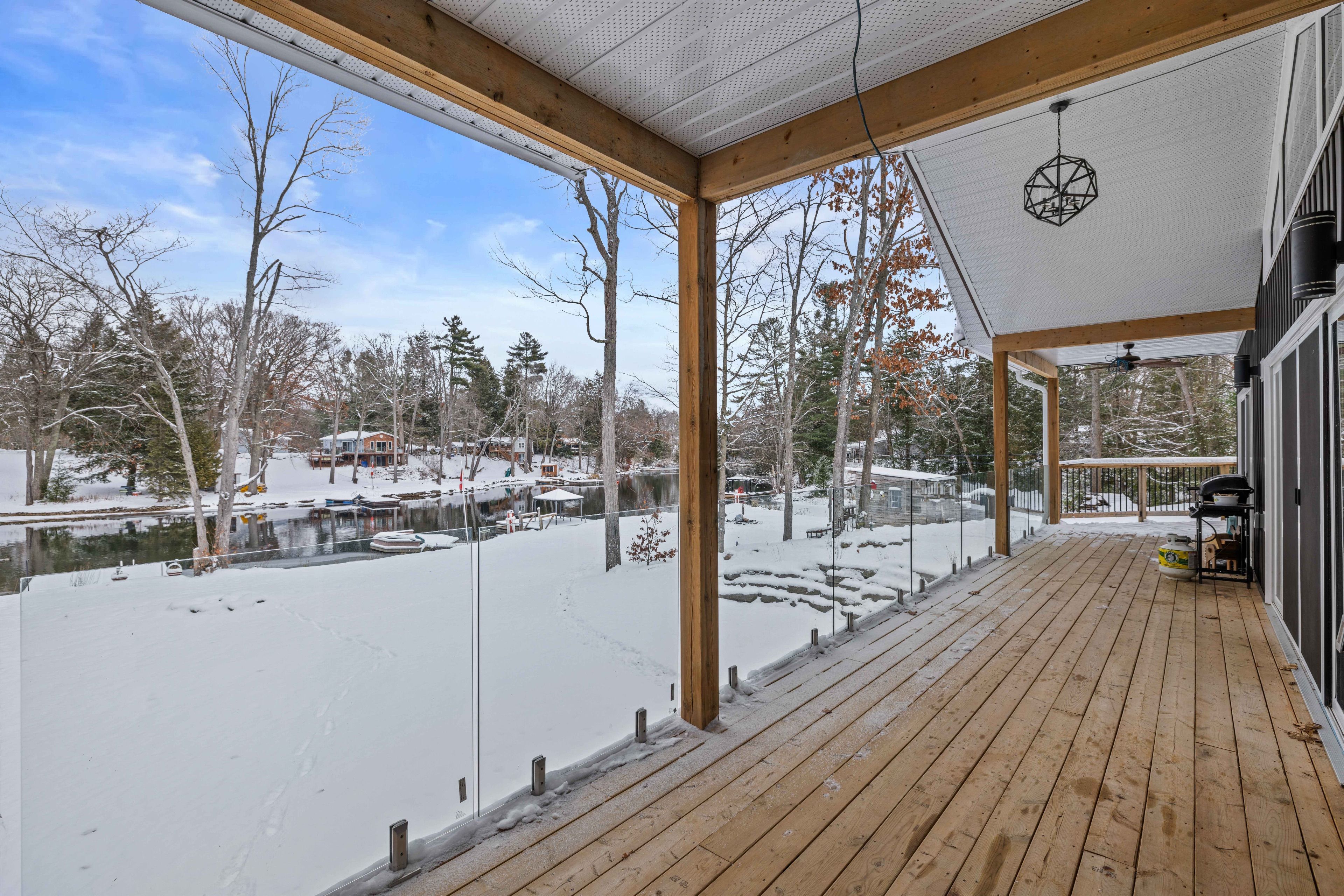 • Covered porch offers calming waterfront views for relaxation and enjoyment.
