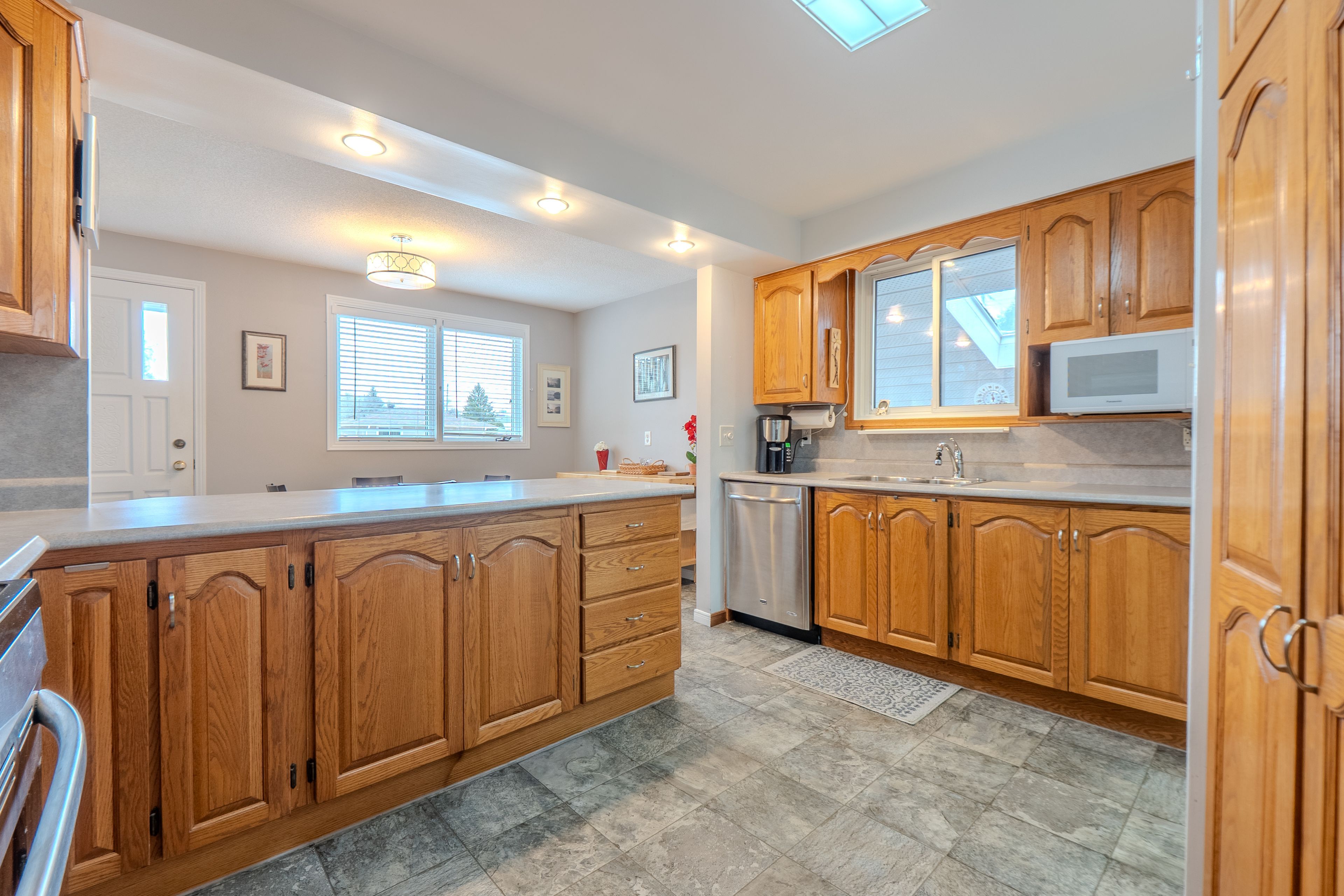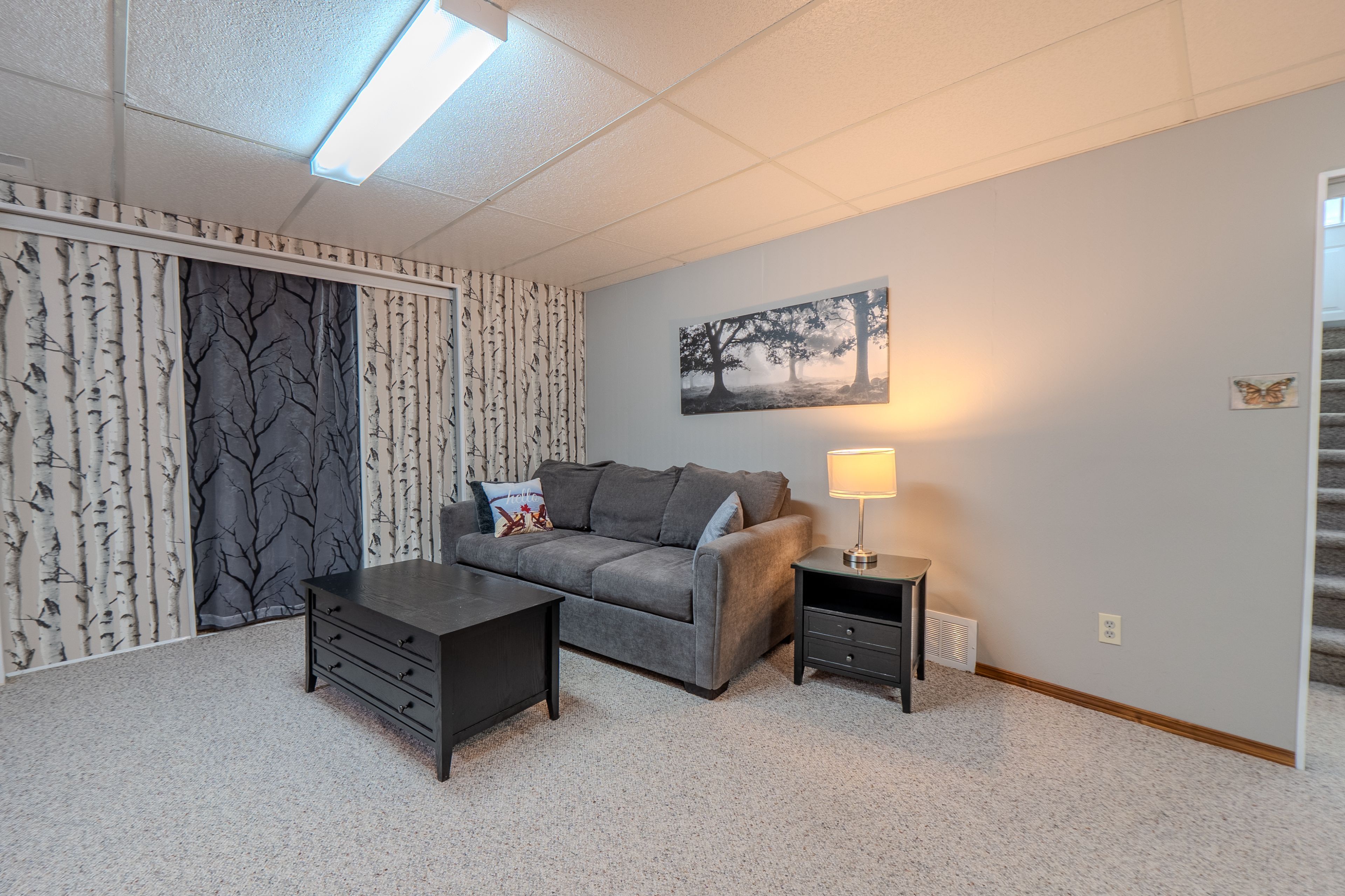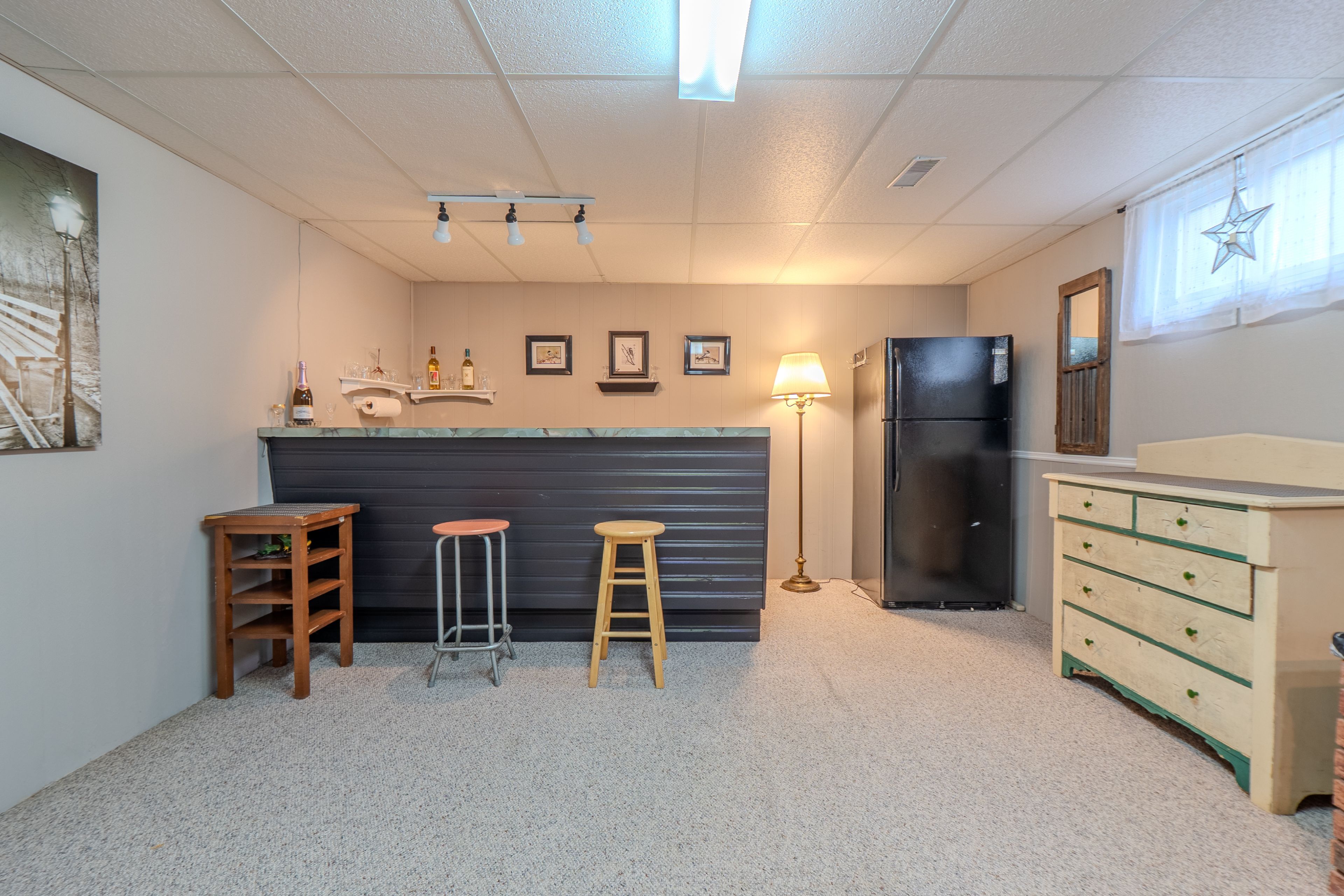 • Bright oversized recroom with a wet bar, perfect for entertaining.