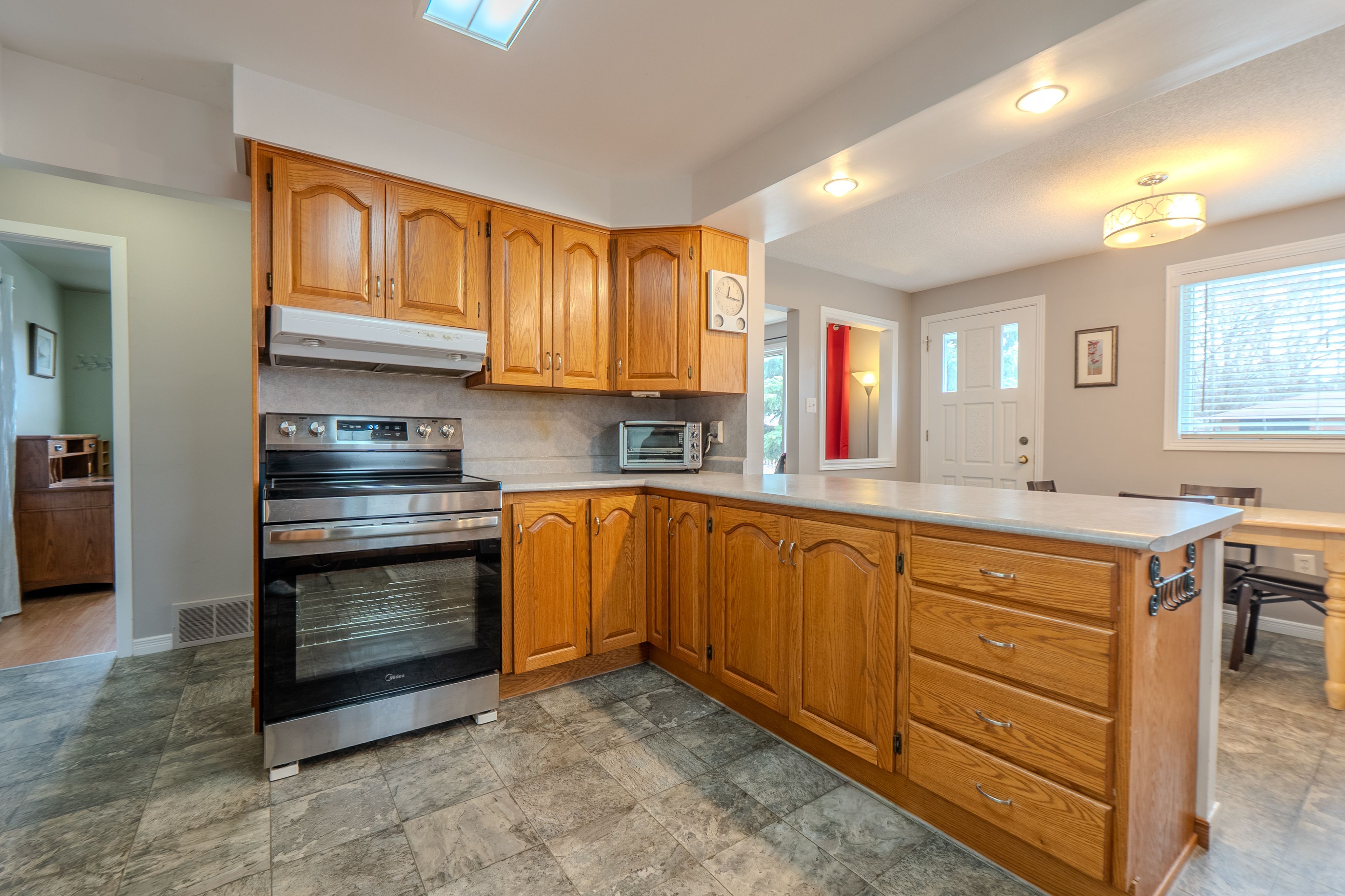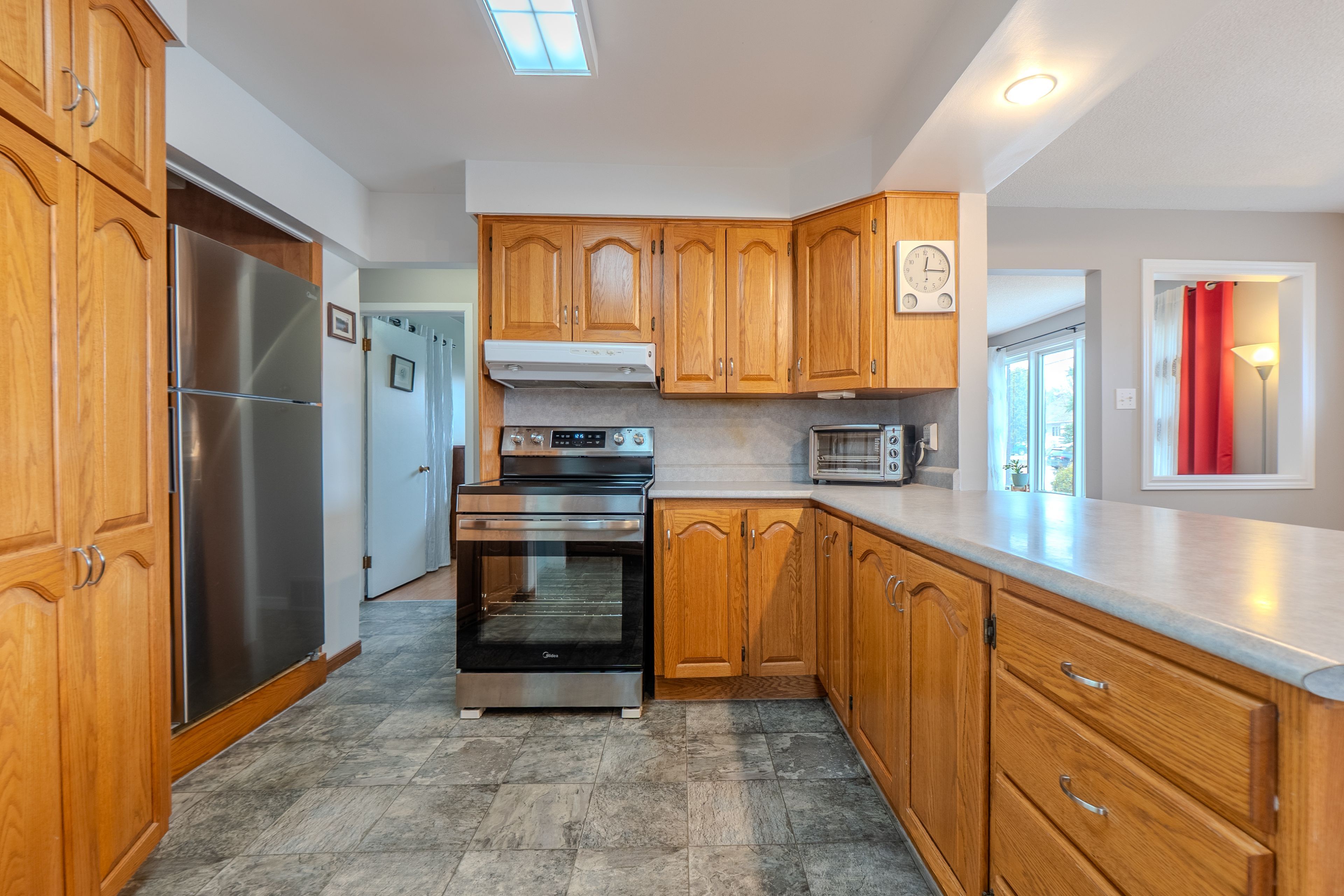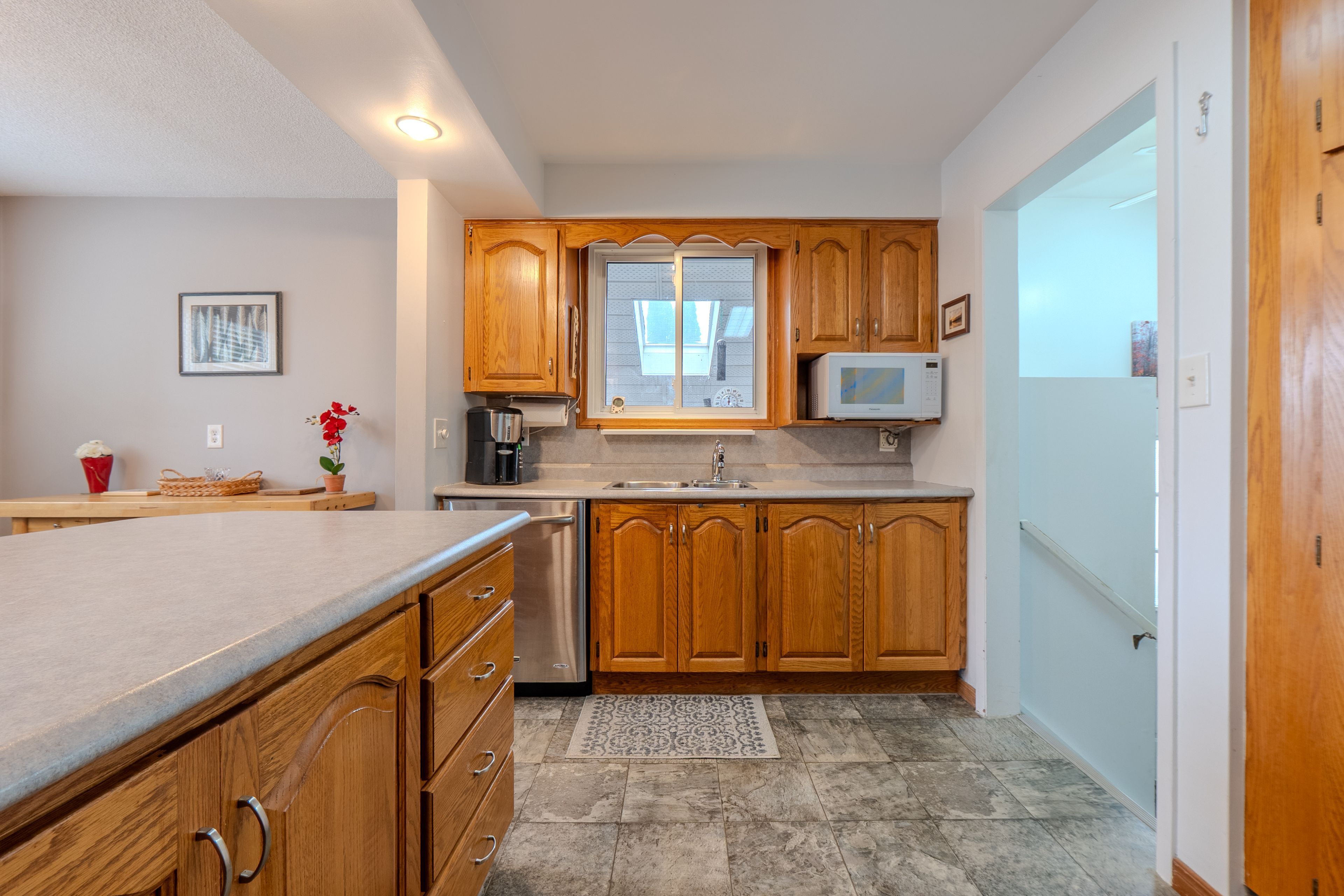 • Bright oversized recroom with a wet bar, perfect for entertaining.