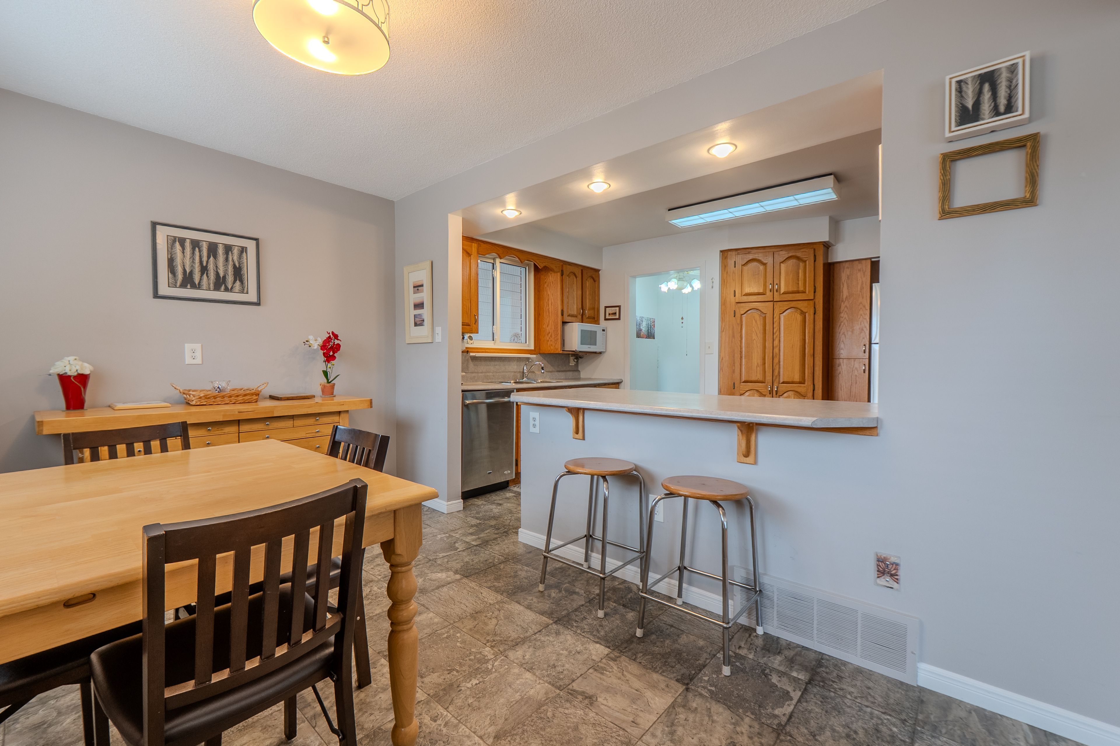 This 3 bedroom brick home in a great neighborhood offers 3 bedroom oversized recroom with 2 baths. The main level has a kitchen, diningroom and livingroom. It comes iwth all the main appliances as well. The recroom is very bright with a wet bar perfect for entertaining. There is plenty of storage with a cold cellar. The carport offers shelter for those bbq night or to park your vehicle. The home offers lots of natural light including a skyligth in the carportthat brings light inot the kitchen. The backyard is a private oasis, immaculate grass and beautiful perrenial flower beds. The neighborhood is very family friendly and the location allows you to walk anywhere including costco movies and grocery stores