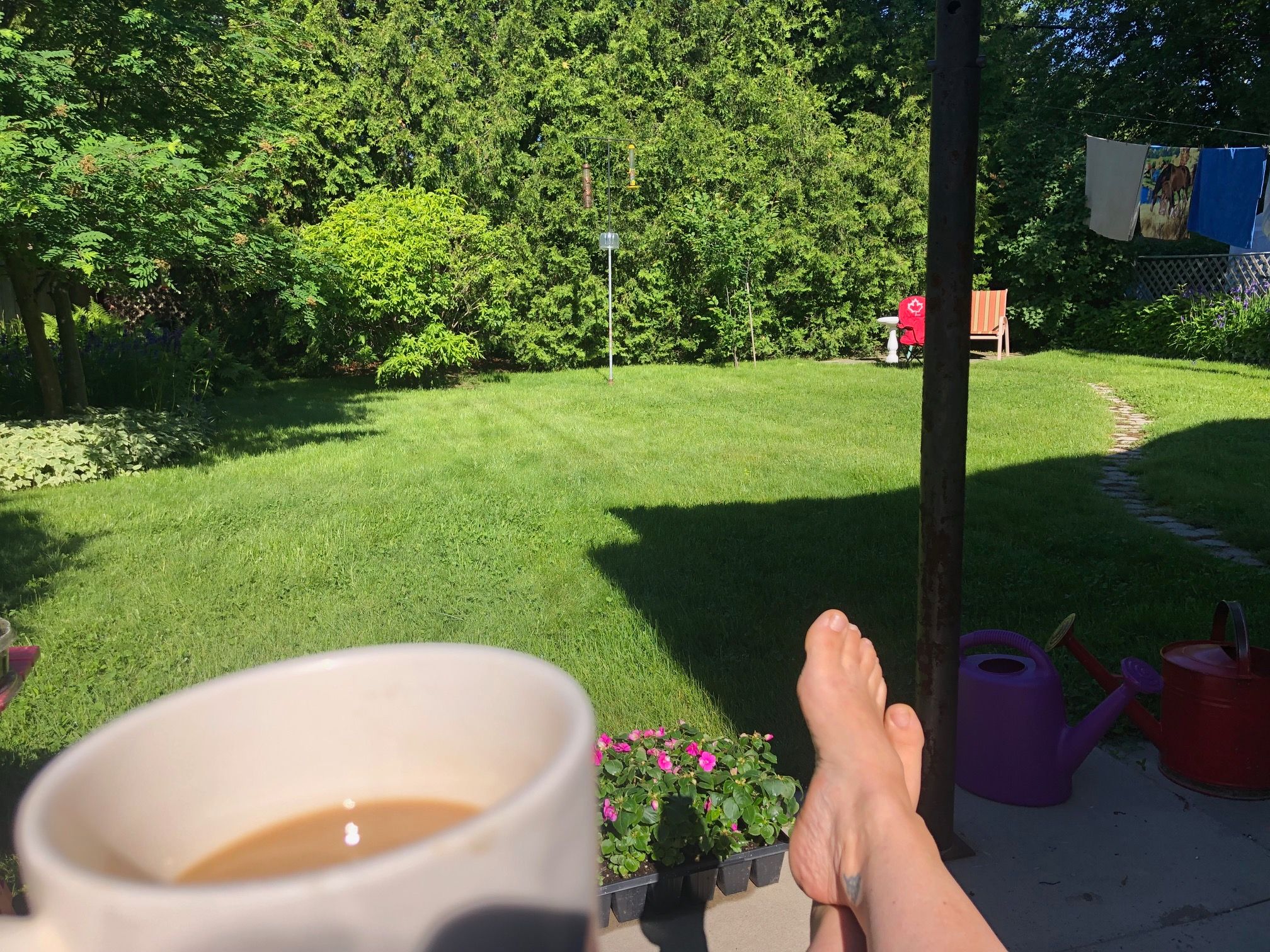 • Private backyard oasis with immaculate grass and perennial flower beds.