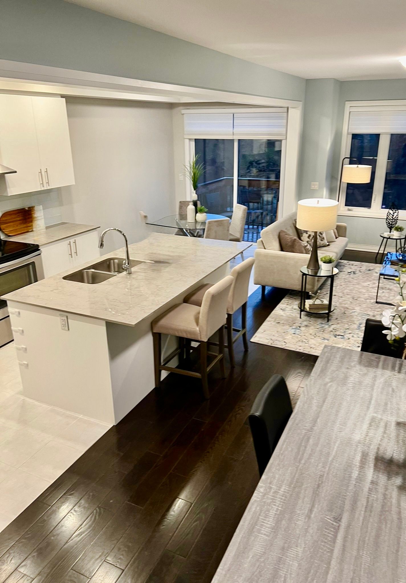 • Bright kitchen featuring quartz countertops and an oversized island.