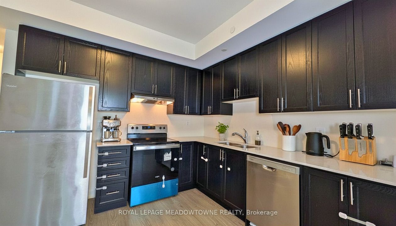 Welcome to this executive modern 2-storey townhouse in highly desired woodlands, pickering. Offering 1,100+ sq ft of well-designed living space, this home combines contemporary style with everyday comfort. The main level features a bright open-concept living and dining area with wide-plank flooring and a modern kitchen equipped with stainless steel appliances and ample cabinetry-perfect for entertaining or relaxed daily living. Step out to your private balcony and enjoy open views. The lower level hosts two generously sized bedrooms, each offering excellent privacy and natural light. The primary bedroom includes a 3-piece ensuite bathroom, while a second full bathroom serves the additional bedroom. A convenient powder room is located on the main level. In-unit laundry and numerous builder upgrades throughout complete this impressive home. Ideally situated close to shopping malls, schools, transit, highway 401, bus stops, tim hortons, lcbo, and all major amenities-making commuting and daily errands effortless. A fantastic opportunity for a small family, first time home buyer or investor.