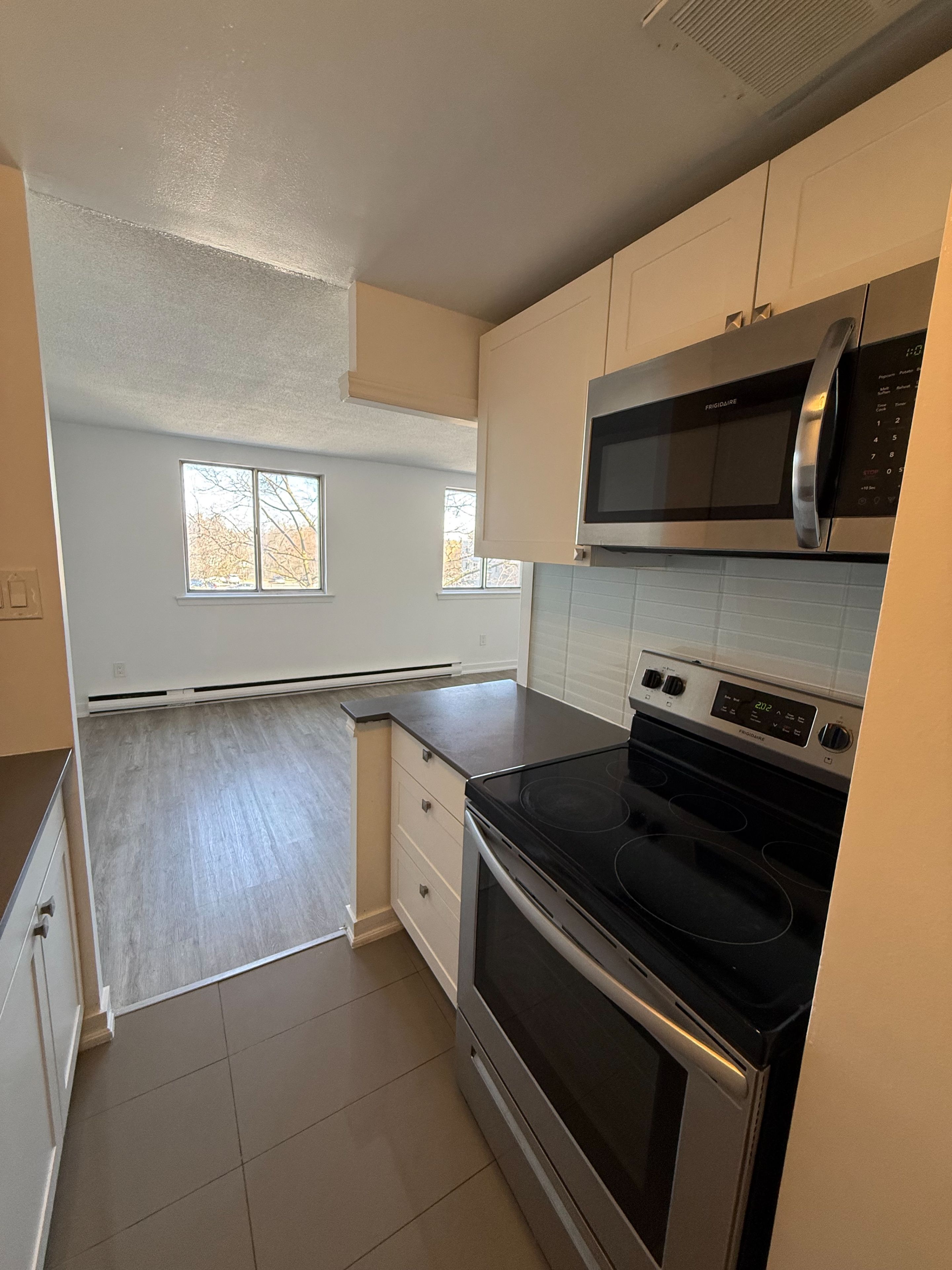 Limited-time promotion: one month free rent is applicable on a 13 month lease. Fully renovated and spacious bachelor/studio suitefeaturing a modern kitchen with quartz countertops, stainless steel appliances, ceramic tile backsplash, and upgraded cabinetry. The unit includes a stainless steel double undermount sink with tall faucet, new refrigerator, stove, and over-the-range microwave. The renovated bathroom offers updated fixtures, ceramic tile finishes, and a modern vanity with quartz countertop. Freshly painted with a contemporary color palette throughout. Building amenities include a secure and well-maintained property with a friendly on-site management team and newly renovated shared laundry facilities. Heat and water utilities are included in the rent. Outdoor parking is available for an additional monthly fee. Conveniently located near public transit, schools, shopping, and major highways.