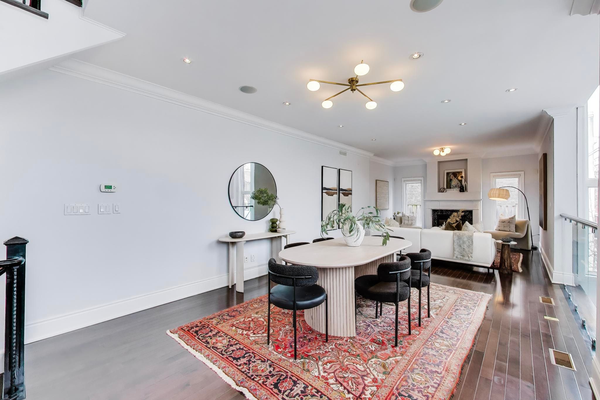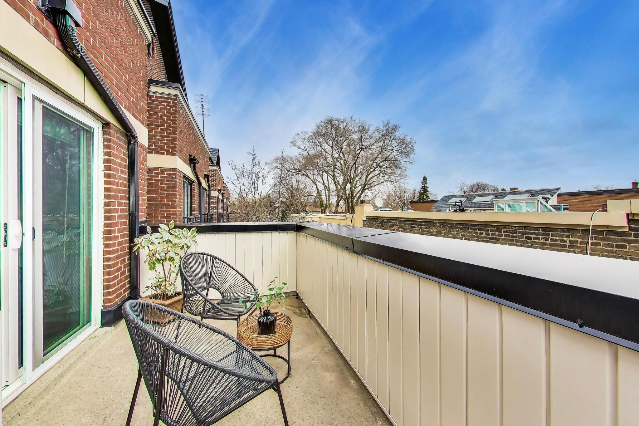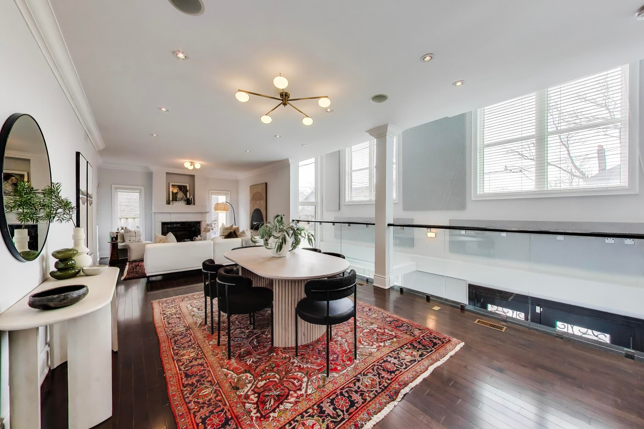 Hidden gem at 'annette lanes' in bloor west village: sophisticated freehold townhome with live/work potential! Welcome to a truly exceptional & rarely offered 2700 square foot townhome, where timeless elegance meets modern versatility across four above-grade thoughtfully designed levels. A grand double-door entrance with wrought iron detailing opens to an impressive entry level featuring exquisite marble flooring & an airy, light-filled ambiance enhanced by expansive windows with a privacy glass option. Perfect as a dream home office, this versatile space also features a cozy gas fireplace and inviting sitting area, easily doubling as a family room or den, with a powder room and dedicated laundry for added convenience. The second level reveals a bright open-concept living and dining area enhanced by a second gas fireplace, pot lights, and dramatic two-storey windows that flood the space with natural light. An atrium-style glass railing overlooks the level below, adding architectural sophistication. The kitchen is beautifully appointed with marble countertops, stainless steel appliances, & a functional layout for entertaining, with a walkout to a stunning south-west facing brick terrace featuring three charming cut-out windows - perfect for entertaining & relaxing. The third level offers two spacious bedrooms, including one with a private balcony, along with a well-designed double-entry 4-piece bathroom with glass shower. The top level is a true retreat, showcasing a luxurious primary suite with vaulted ceiling, skylight, & a striking oversized round window. Enjoy a private third balcony & a marble 5-piece ensuite complete with water closet, dual vanities, soaker tub, & separate glass shower. With a private garage & just steps to restaurants, cafés, boutique shopping, ttc and everyday amenities, as well as the humber river trails, this is a rare opportunity to own a distinctive property that offers luxury, flexibility, and an unbeatable location all in one.