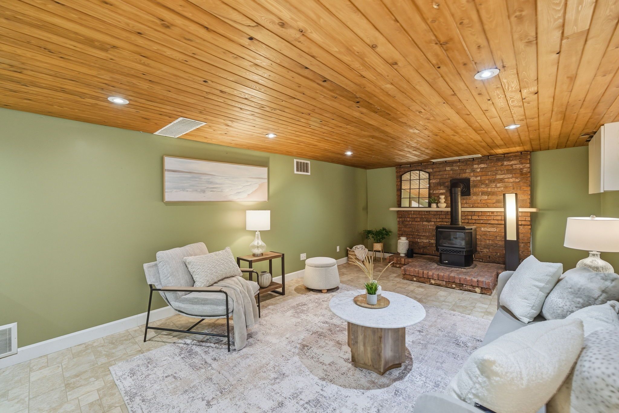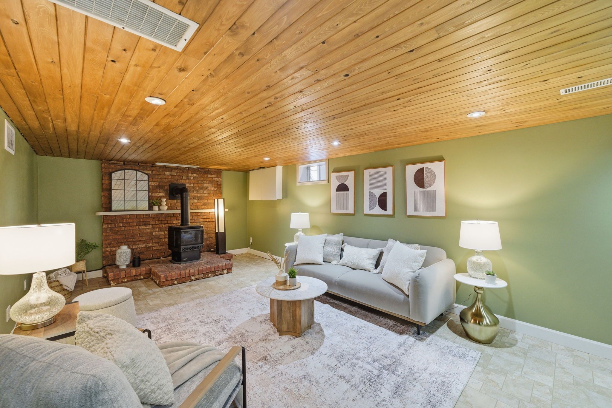• Large sunroom and cozy basement with a gas fireplace for extra living space.