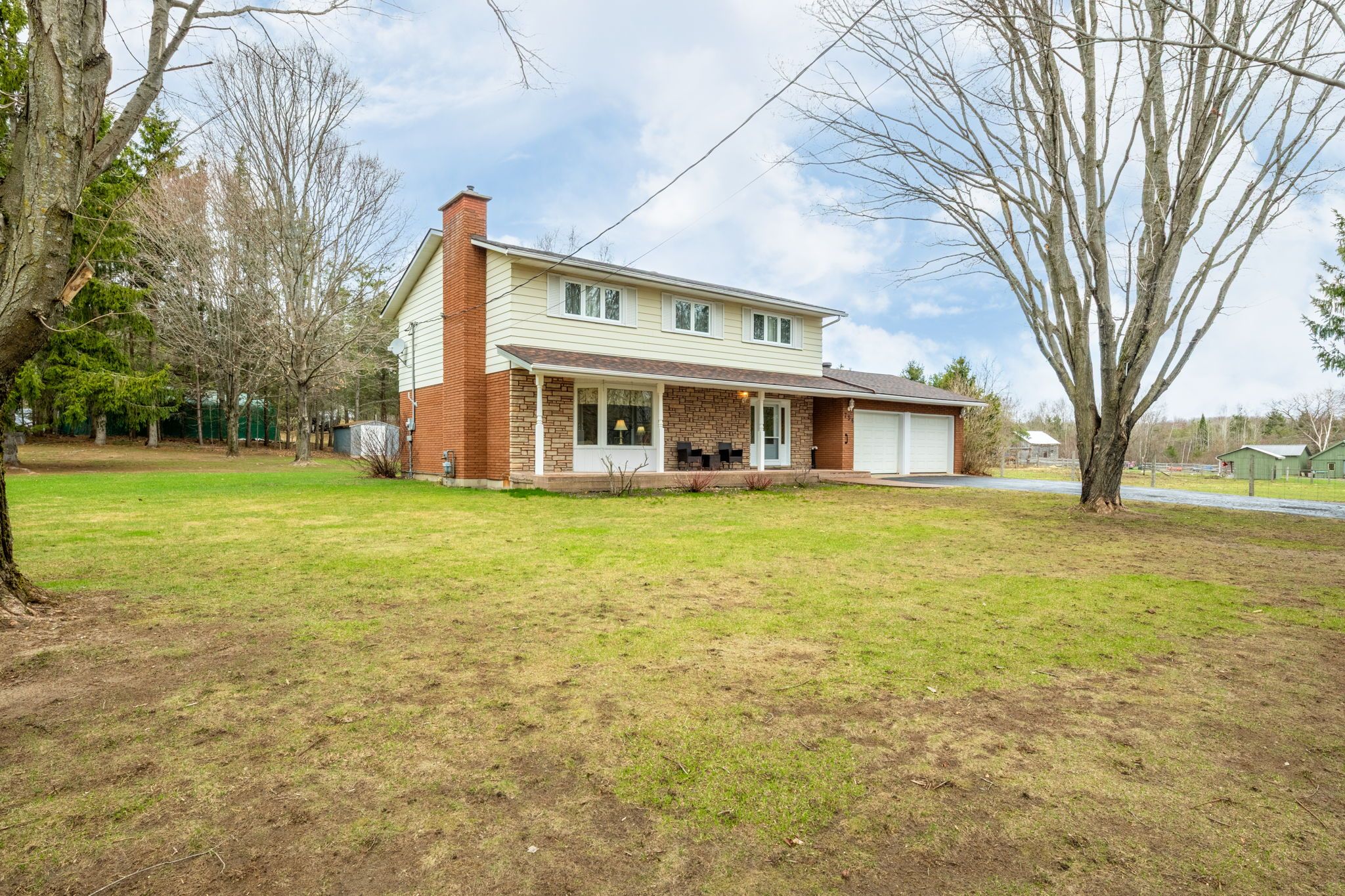 This is a rare opportunity you won't want to miss! Proudly owned by the original owners and offered for sale for the very first time, this property is located in the desirable toanche settlement of tiny township. Perfect for buyers seeking more space both inside and out, this impressive 5-bedroom, 2,016 sq. Ft. Home sits on a beautiful 10-acre parcel. The home features a spacious living room with a stunning fieldstone fireplace, a formal dining room, and a bright eat-in kitchen complete with all appliances. A main-floor family room offers a walkout to the deck, ideal for relaxing or entertaining. Additional highlights include 2. 5 bathrooms, hardwood flooring throughout, two gas fireplaces, and convenient inside access from the recently renovated, insulated double-car garage. The lower level has been recently updated to include a generous one-bedroom accessory apartment with a separate entrance-perfect for extended family or potential rental income. Outside, you'll find a detached, heated 28 x 26 ft. Workshop, multiple storage sheds, a 15 x 36 ft. Quonset, and a private backyard. Two large driveways provide ample parking. Ideally located near a marina, boat launch, playground, horseshoe pits, baseball diamonds, the ofsca trail system, awenda provincial park, and just a short 10-minute drive to shopping and schools, this property offers the perfect blend of privacy, space, and convenience.