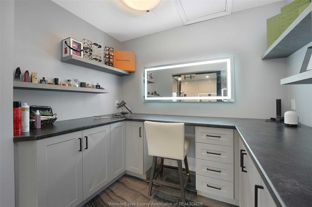 • Chef's kitchen features custom cabinetry and granite countertops for cooking.