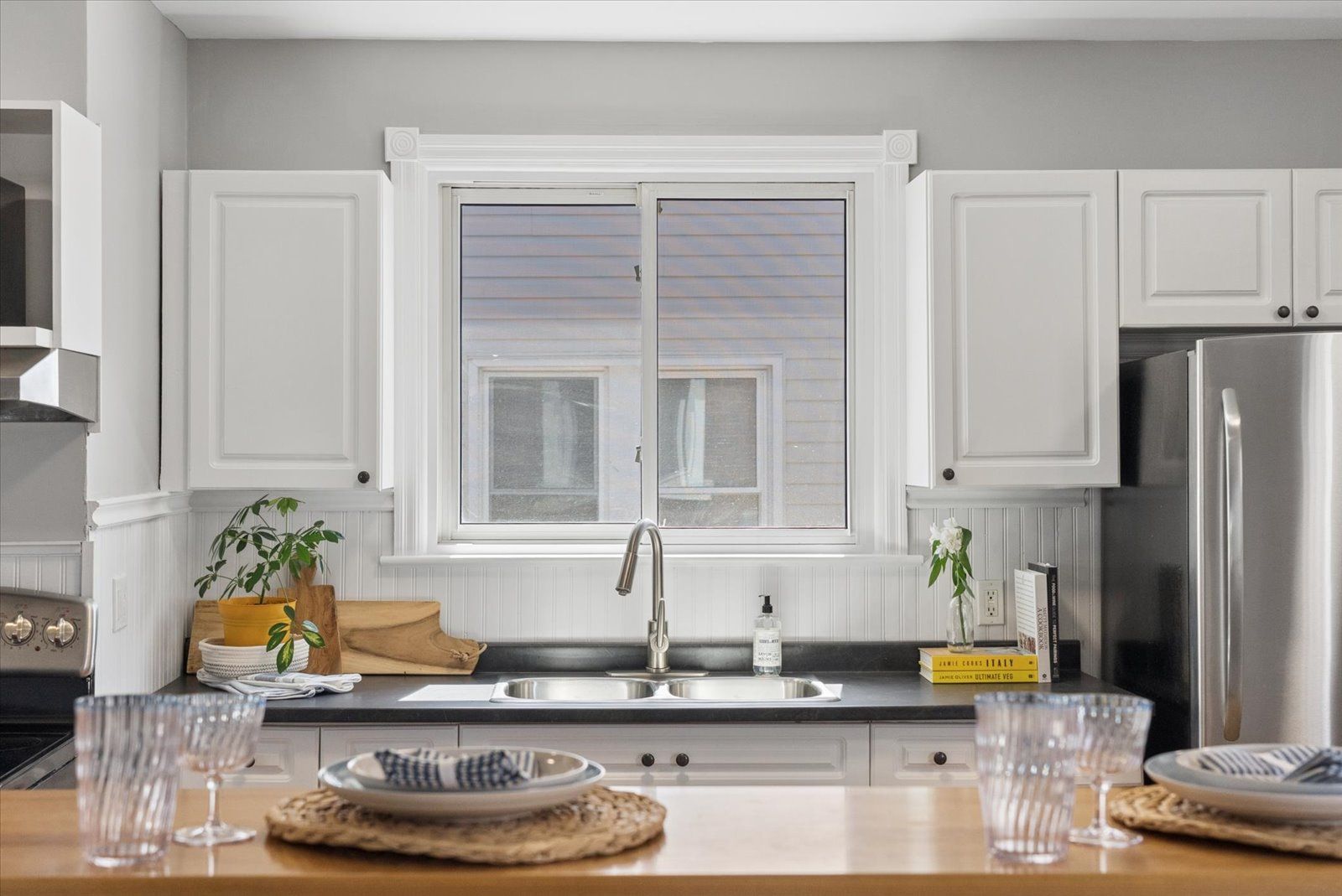 • Private backyard with deck, perfect for summer gatherings.