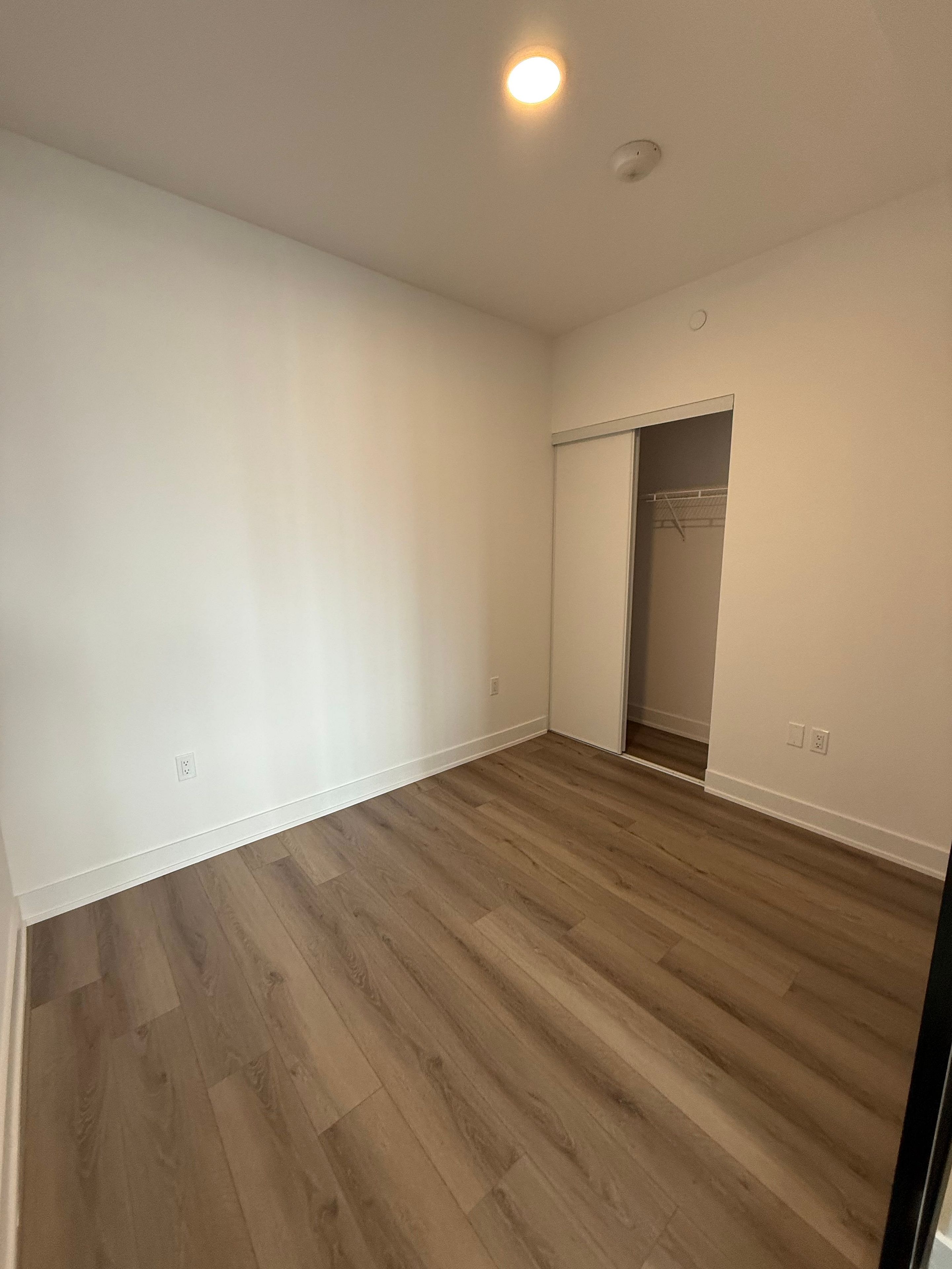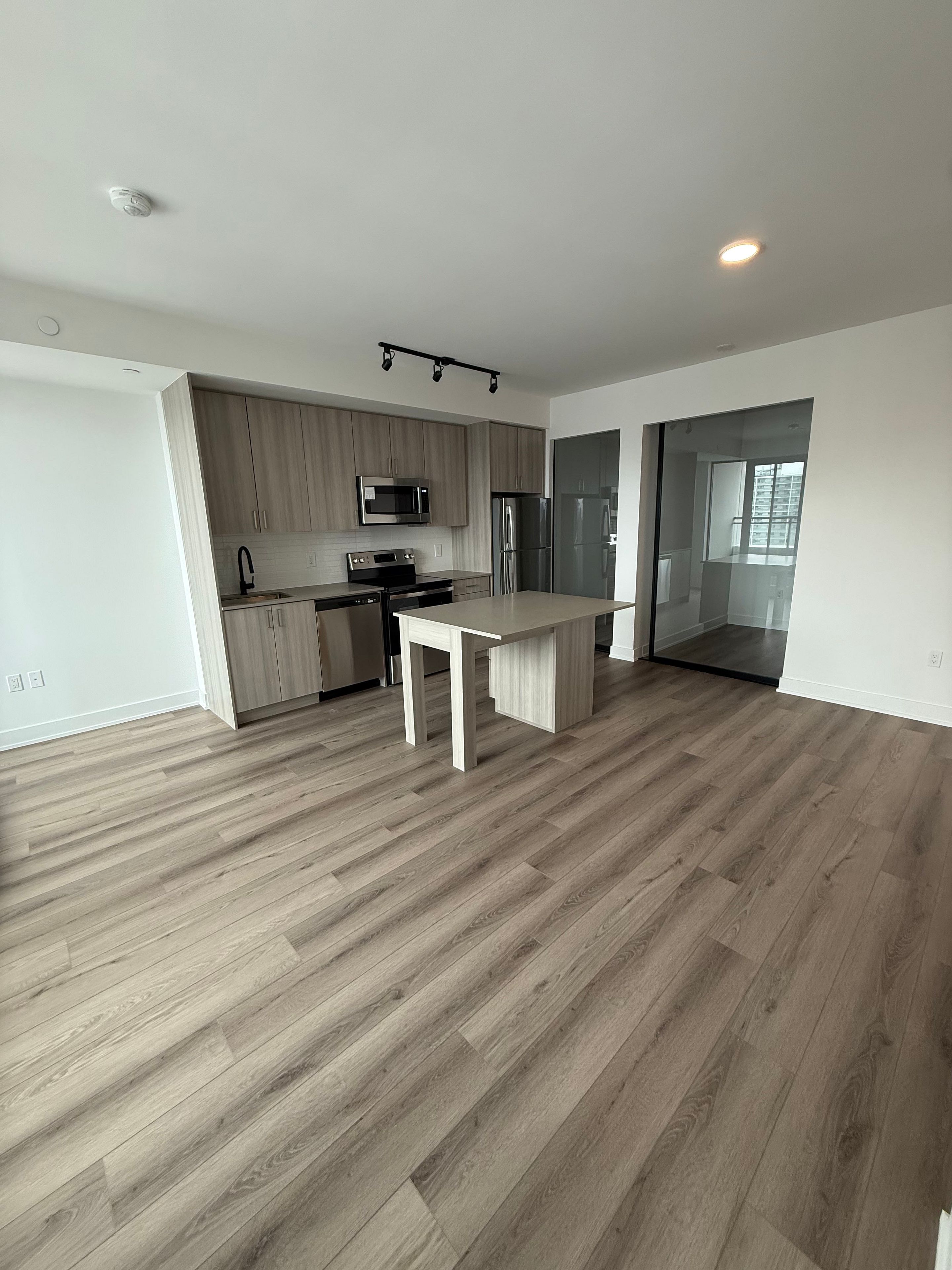 Stunning lower penthouse 2bedroom + den, 2bath suite in a boutique building offering 818 sq ft of open-concept layout features designer laminate flooring, 9' ceilings, modern trim, and matte black hardware. Kitchen offers quartz countertops, stainless steel appliances, undermount sink with pull-out faucet, and ceramic backsplash. Bathrooms include quartz counters, chrome fixtures, and glass shower panels. Enjoy premium amenities: fitness room, co-working spaces, rooftop terrace, secure underground parking, and bike storage. Boutique living with style and convenience!