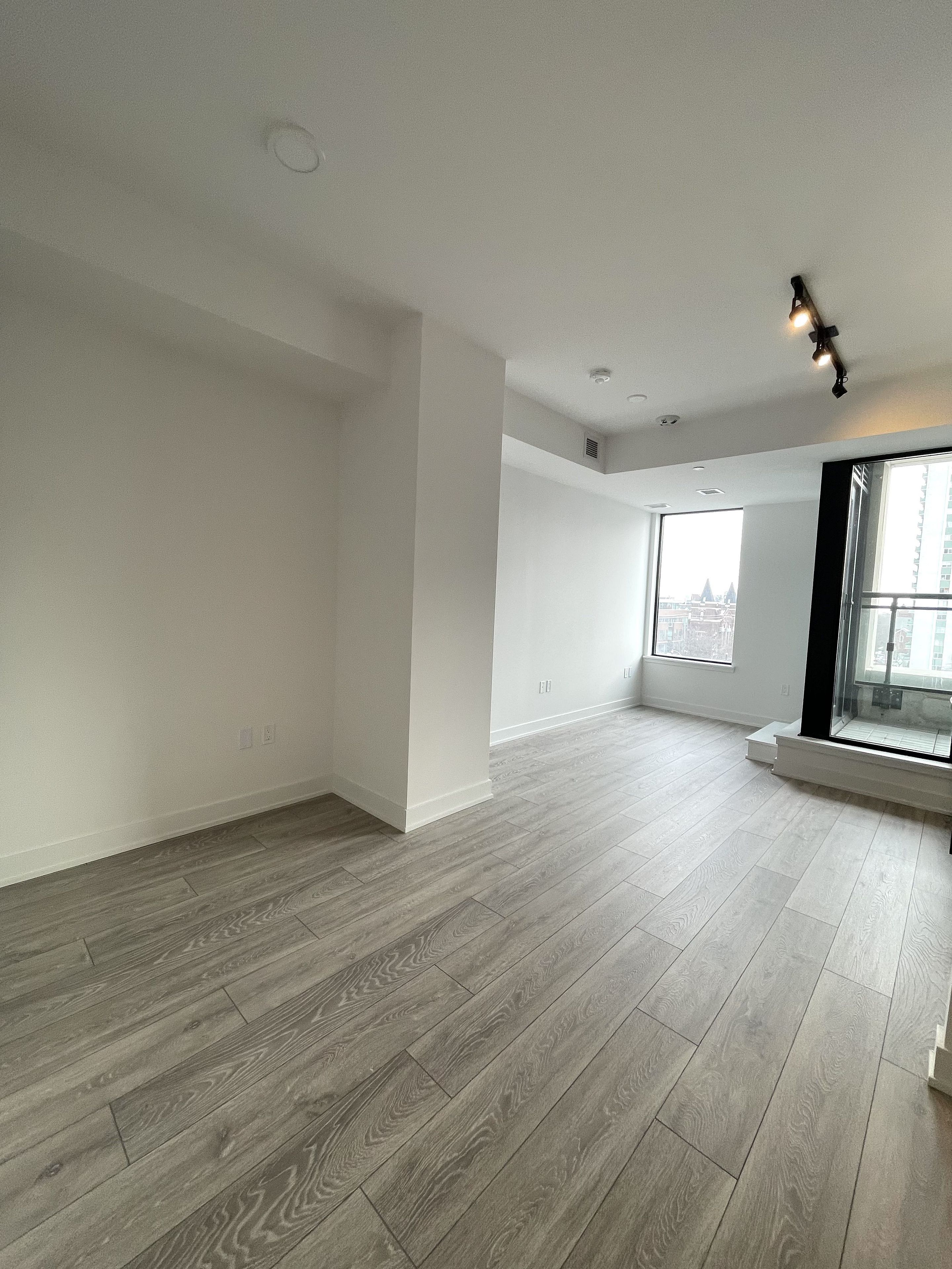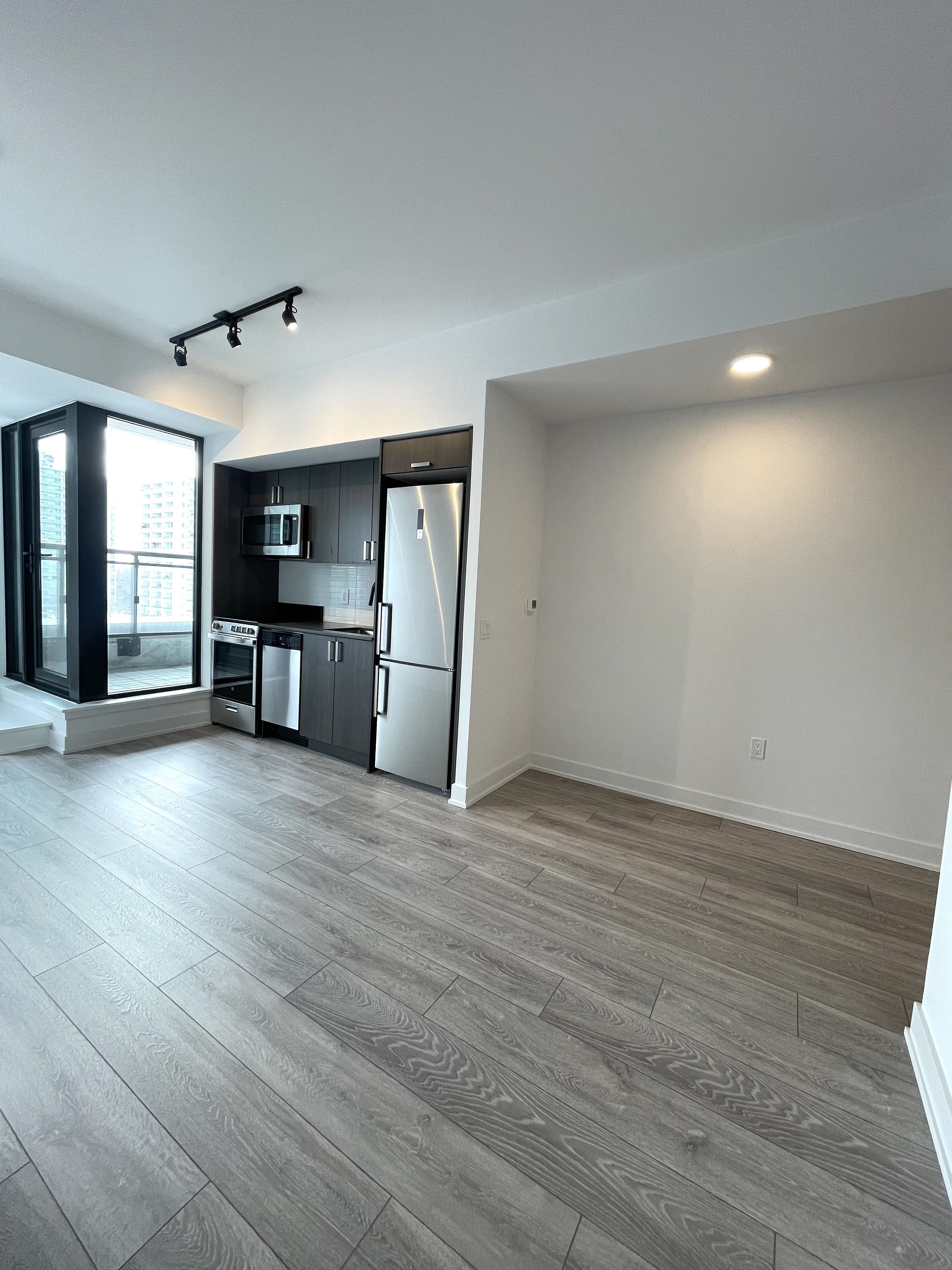 Welcome to motto condos, where modern design meets effortless urban living. This brand new, never-lived-in south-facing studio suite offers a bright and efficient layout, perfect for comfortable city living. Expansive floor-to-ceiling windows fill the space with natural sunlight throughout the day, creating a warm and inviting atmosphere. The open-concept design is complemented by wide plank flooring and a seamless flow between living, dining, and sleeping areas, maximizing both function and style. The contemporary kitchen features sleek matte cabinetry, stone countertops, a stylish tile backsplash, and a full appliance package, providing everything needed for everyday living. This pristine, never-occupied unit includes roller sunscreen shades and smart home features such as digital entry and programmable climate control for added convenience. Residents of motto condos enjoy premium amenities including a fitness centre, co-working spaces, and a landscaped rooftop terrace with bbqs. Ideally located in the vibrant dovercourt-wallace emerson-junction neighbourhood, just steps to transit, parks, cafes, and local dining. Perfect for professionals or students seeking a modern, move-in ready space in one of toronto's most dynamic communities.
