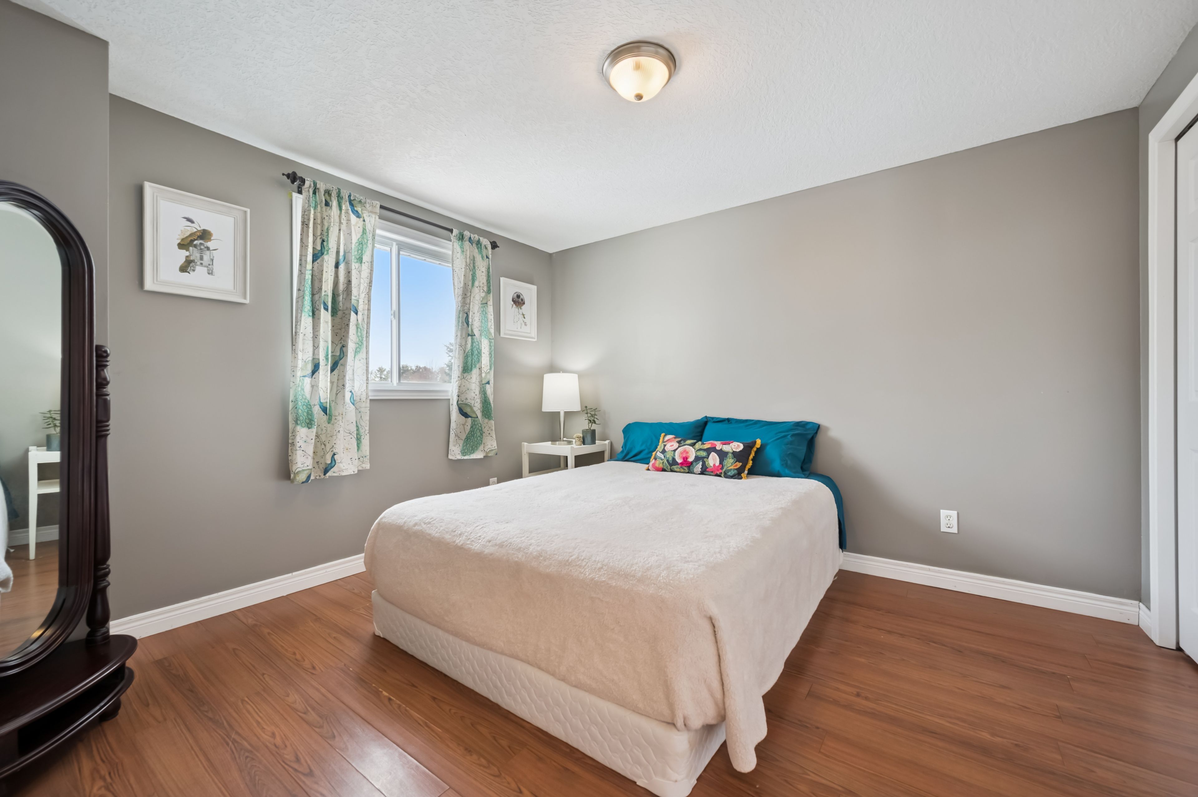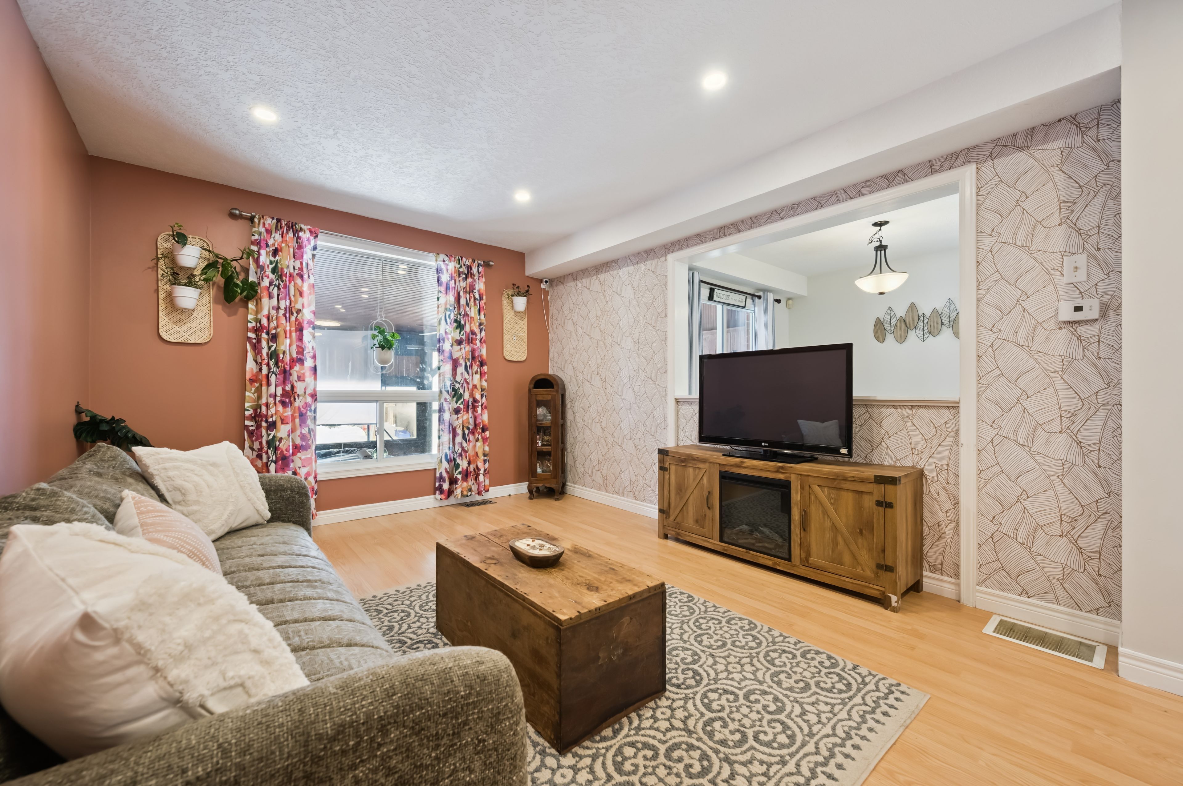 This well maintained 3-bedroom, 4-bath home is the perfect place to start your next chapter. From the moment you arrive, you'll notice the care and pride of ownership - a paved three-car driveway, plenty of gardens, and a charming front porch that instantly makes you feel at home. Step inside to a welcoming foyer with a convenient powder room and direct access to the garage. A few steps further and the main floor opens up into a bright, comfortable living space - ideal for relaxing after work or hosting friends and family. The spacious kitchen and eat-in area offer plenty of room for everyday meals and weekend gatherings alike. Out back, you'll fall in love with the private, landscaped yard. The large covered outdoor entertaining space makes summer bbqs and cozy evening get-togethers easy and enjoyable - rain or shine. Upstairs, the generous primary bedroom features its own ensuite and walk-in closet, giving you a peaceful retreat at the end of the day. Two additional bedrooms and a full four-piece bath provide plenty of space for family, guests, or a home office. The fully finished lower level adds even more flexibility, with a den, office or sleeping area, and an additional two-piece bath - perfect for working from home, a playroom, or movie nights. If you're a first-time buyer looking for a move-in-ready home with space to grow, this one checks all the boxes. Come see it for yourself - you'll feel right at home the moment you walk in.