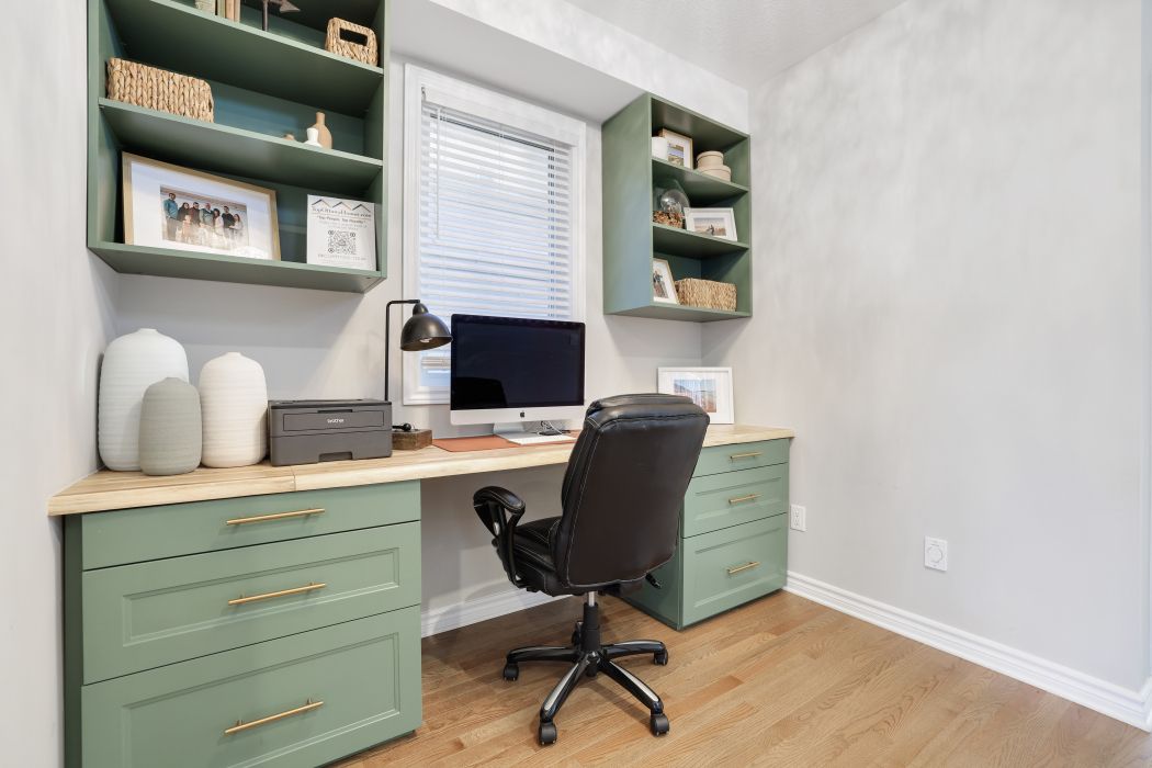 • Bright main floor with 9' ceilings and a custom cabinetry den.