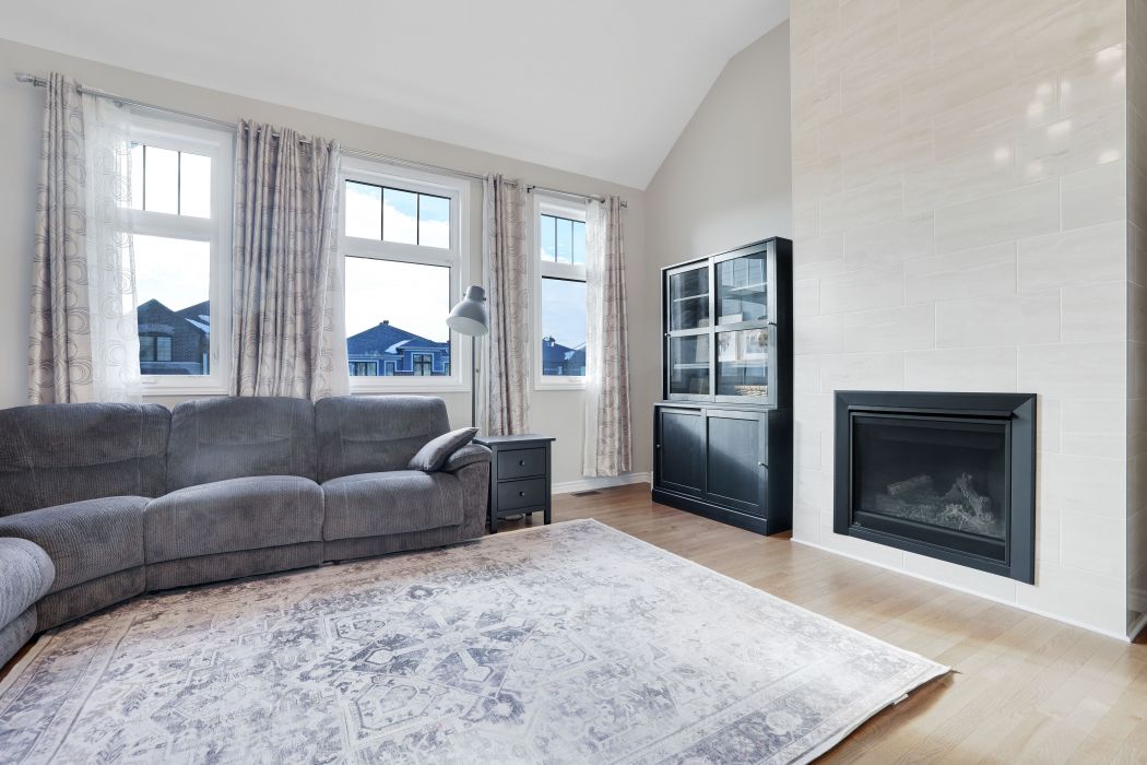 • Oversized family room features a floor-to-ceiling tiled gas fireplace.