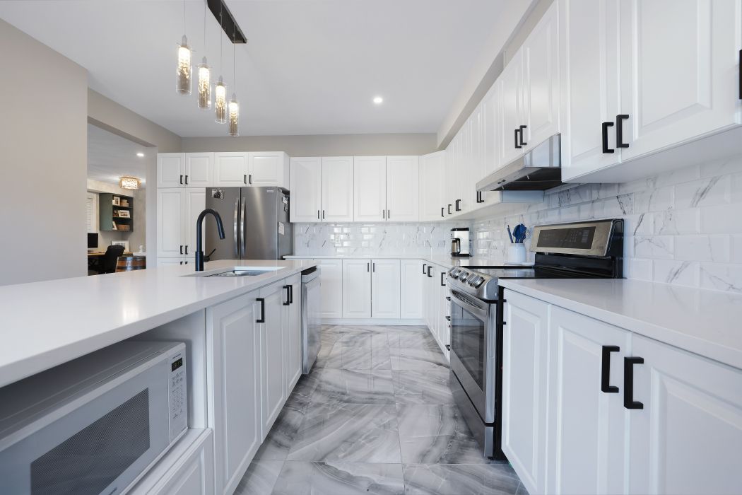 • Huge kitchen with new quartz counters and French doors to the deck.