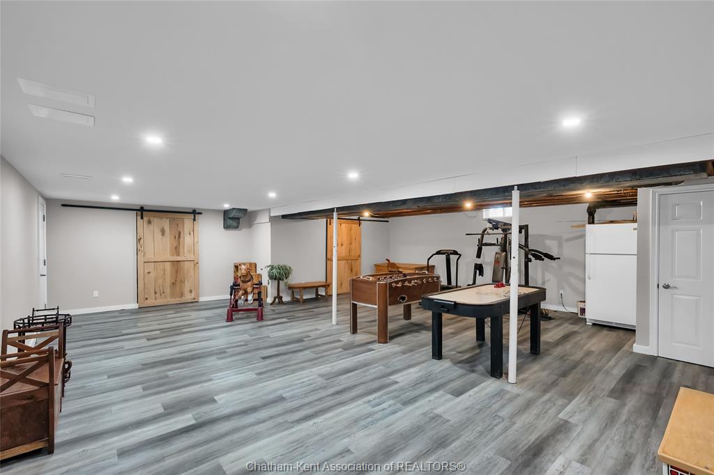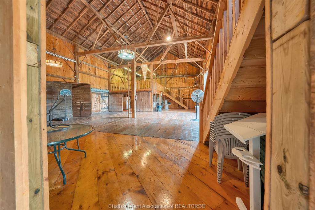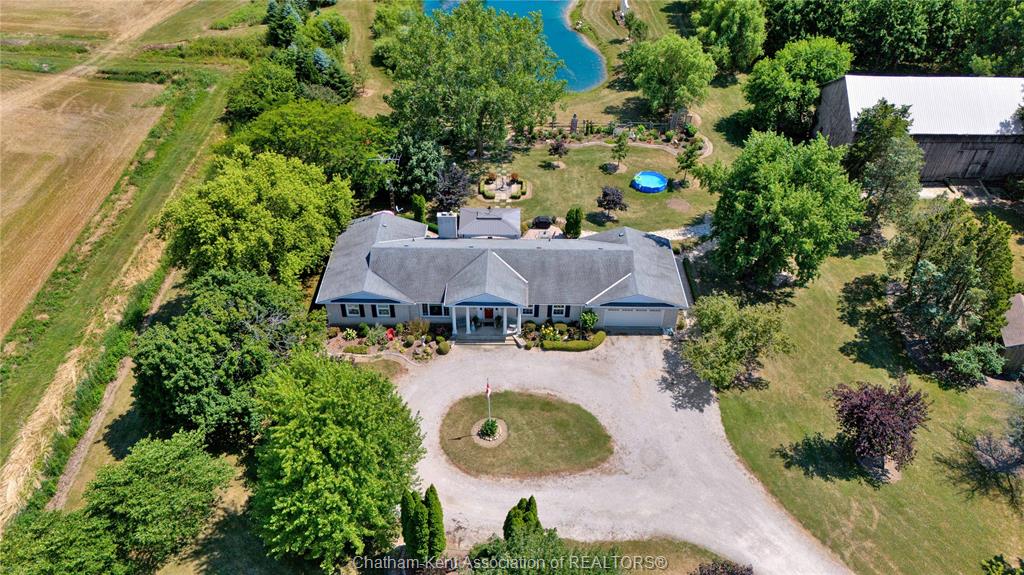Experience the best of country living on 5. 68 private acres. This stately bungalow combines comfort, functionality, and room to entertain. Designed with gathering in mind, the home features multiple living spaces, including a bright living room, a family room with gas fireplace, a formal dining room with built-ins and electric fireplace, and a spacious eat-in kitchen with abundant cabinetry and counter space. The main level offers three generous bedrooms, including a primary suite with garden doors opening to the backyard, and 2. 5 bathrooms to accommodate the family. The finished lower level expands your living options with a large games room and recreation room. Outdoors, enjoy a covered patio, stroll around the tranquil pond, and take advantage of the 40x80 barn for private events, hobbies, or storage. Additional highlights include multiple outbuildings, a vegetable garden, and a naturalized treed area—ideal for exploring or relaxing. Practical updates add peace of mind: vinyl windows, a 2023 heat pump, 200-amp service, spray foam insulation, and no carpet throughout. With no close neighbours, this property offers the ultimate in privacy and a lifestyle where you can gather, grow, and unwind.