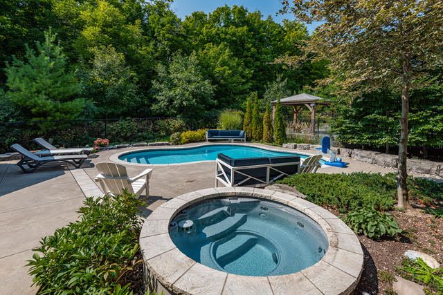 Welcome to 76 annsleywood court, an exceptional residence in prestigious kleinburg heritage estates. Situated on a quiet no-through street and backing onto a private ravine, this home offers near 6,000 sq ft of elegant living space with refined, high-end finishes throughout. Soaring 10 ft ceilings on the main floor and 9 ft ceilings on the second level and basement enhance the home's spacious, airy feel. Featuring 4+1 bedrooms and 5 bathrooms, the thoughtfully designed layout includes a main floor office and a chef-inspired downsview kitchen equipped with premium wolf, sub-zero, and miele appliances, plus a spacious centre island ideal for entertaining. The primary suite offers a private deck, heated ensuite floors, and spa-like finishes. A built-in surround sound system extends throughout the home for an elevated living experience. The professionally finished walk-out basement includes a theatre room, expansive recreation space, and an additional bedroom for guests or extended family. Designed for both luxury and lifestyle, the backyard is a private retreat complete with a custom salt water pool, hot tub, cabana, and mature landscaping overlooking the ravine for exceptional privacy. A 3-car tandem garage plus a car lift accommodates up to 4 vehicles. Located minutes to kleinburg village, parks, nature trails, and hwy 427. A rare opportunity to own a resort-inspired home in one of vaughan's most exclusive communities.