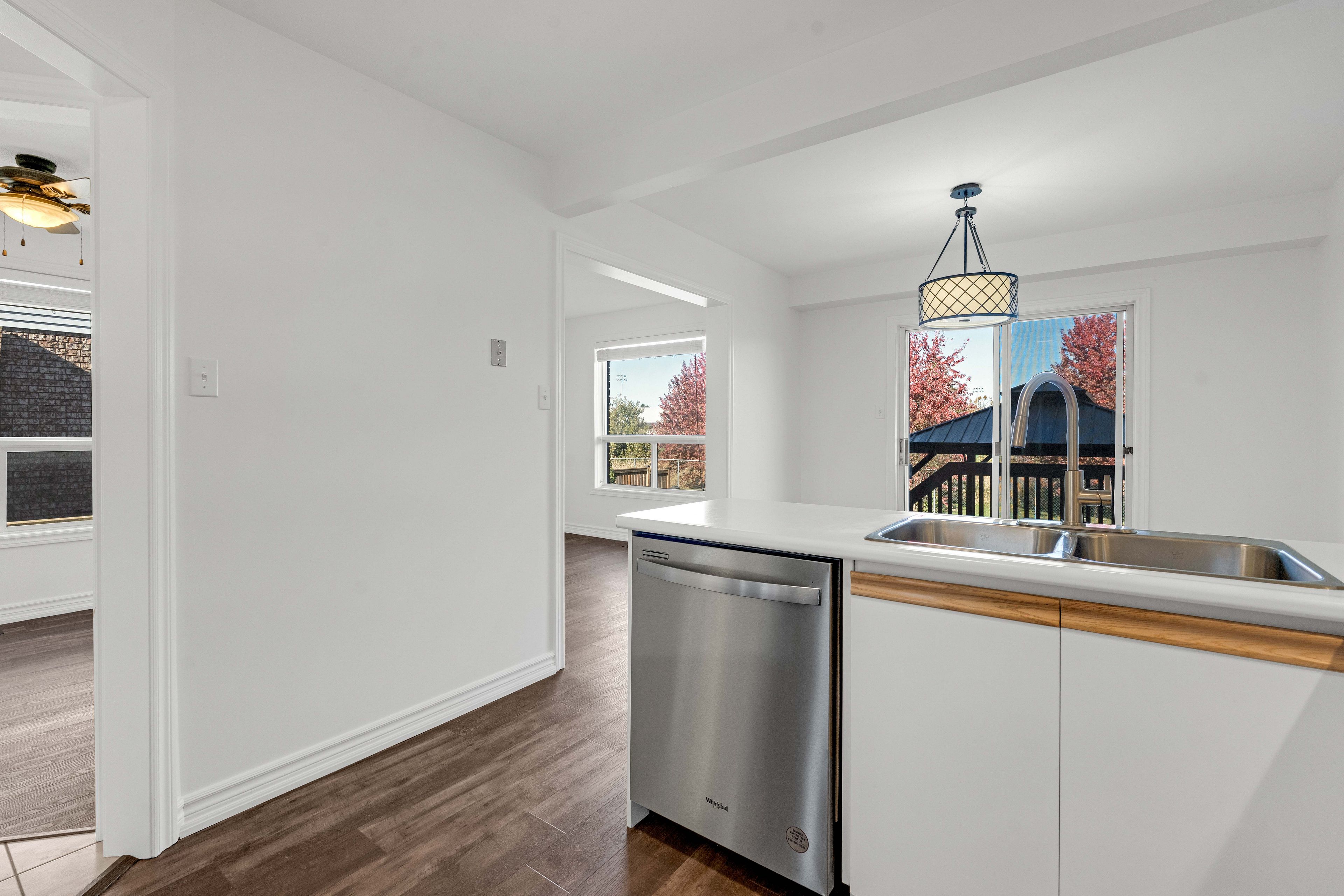 • Updated eat-in kitchen with double patio doors to large deck.