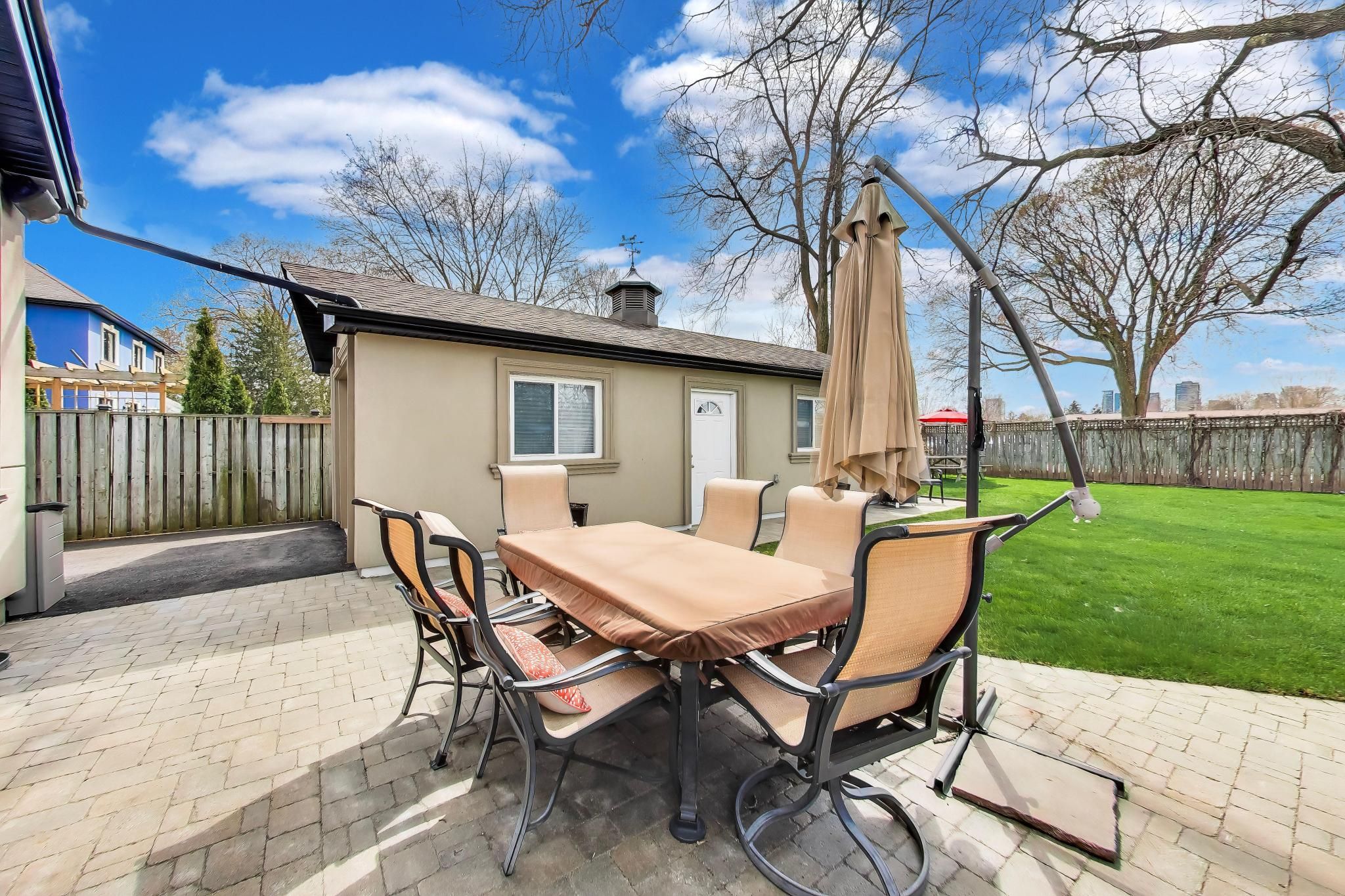 A rare and distinguished offering in the heart of etobicoke this beautifully upgraded residence sits on a premium 47' x 157' lot in one of eatonville's most sought-after pockets, just minutes to vibrant bloor st. Surrounded by multi-million dollar homes, this legal duplex delivers an exceptional blend of space, elegance, and functionality. The main level showcases formal living & dining rooms, seamlessly flowing into a stunning open-concept kitchen and family room with centre island, breakfast area, and ceramic floors. The sunken family room is a true highlight, featuring vaulted ceilings, a skylight, expansive wall-to-wall windows, a striking 3-sided gas fireplace-creating a bright and inviting great room ideal for both everyday living and entertaining. Upstairs offers four generously sized bedrooms, including a well-appointed primary retreat with its own ensuite featuring heated floors, along with an additional full bathroom serving the secondary bedrooms. A main floor powder room adds convenience, and a utility room offers potential for main floor laundry hookup. The lower level provides exceptional versatility with a recently renovated self-contained suite 2025, ideal for extended family or income potential. In addition, this level features a media and entertainment room with a wood-burning stove, an additional bedroom, bathroom, and abundant storage throughout. Parking for 6 vehicles plus 1 in the garage, heated floors in the basement and primary ensuite, irrigation system, central vacuum, electricity in the garage, and a tankless dual system 2023. The home is also equipped with ducted central air and a separate fan unit-offering the best of both worlds. Step outside to a private, green oasis backyard with outdoor living space, hot tub rough-in conduit, and multiple exterior plugs-fully ready for entertaining. Backing onto a school and located steps to wedgewood park, top-rated schools, transit, shopping, and the kipling go and subway hub. Too many upgrades to list.
