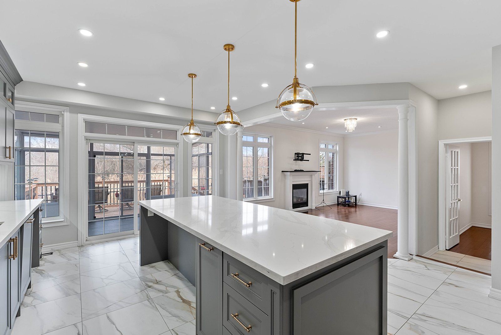 Luxury ravine home for lease - bernbridge street, box grove, markham. Stunning 5+1 bed, 4 bath detached home with approx. 3,500 sq. Ft. + finished basement, featuring modern design, hardwood floors, quartz countertops, and quartz kitchen island with high-end appliances. Main floor includes separate living & family rooms, office, guest room at entrance, and bright open spaces. Second floor offers 5 spacious bedrooms, including primary with walk-in & ensuite, plus additional full baths. Finished basement ideal for recreation or extra living space. Set on a private ravine lot with serene backyard views. Prime box grove location near walmart supercentre, top schools, parks & amenities. Perfect for upscale tenants seeking style, space, and privacy.