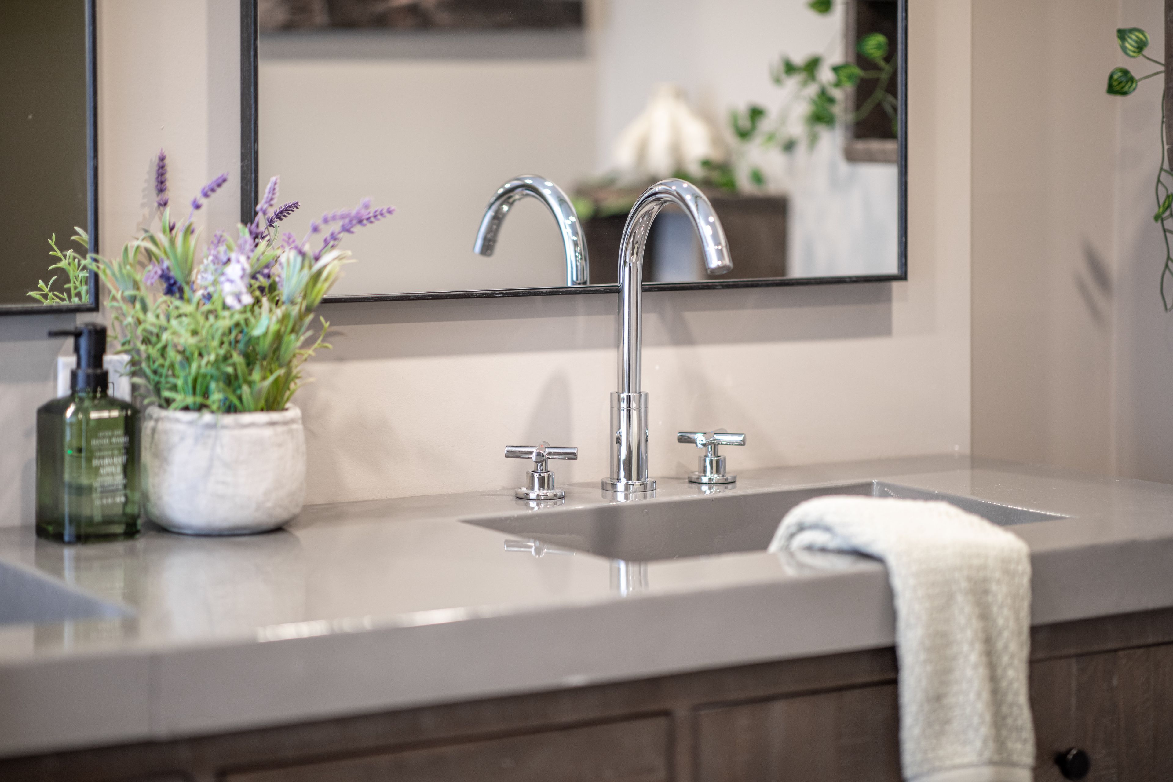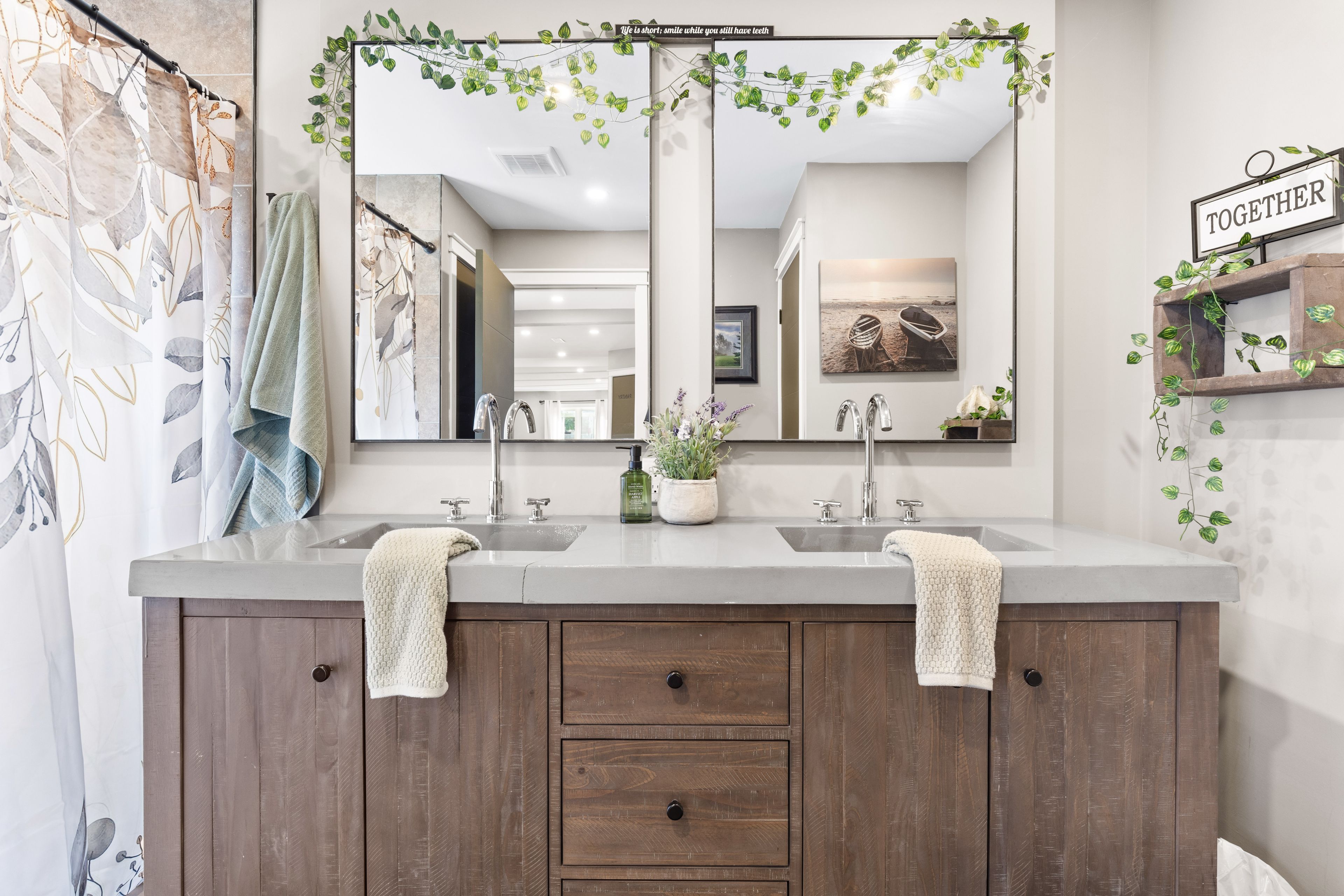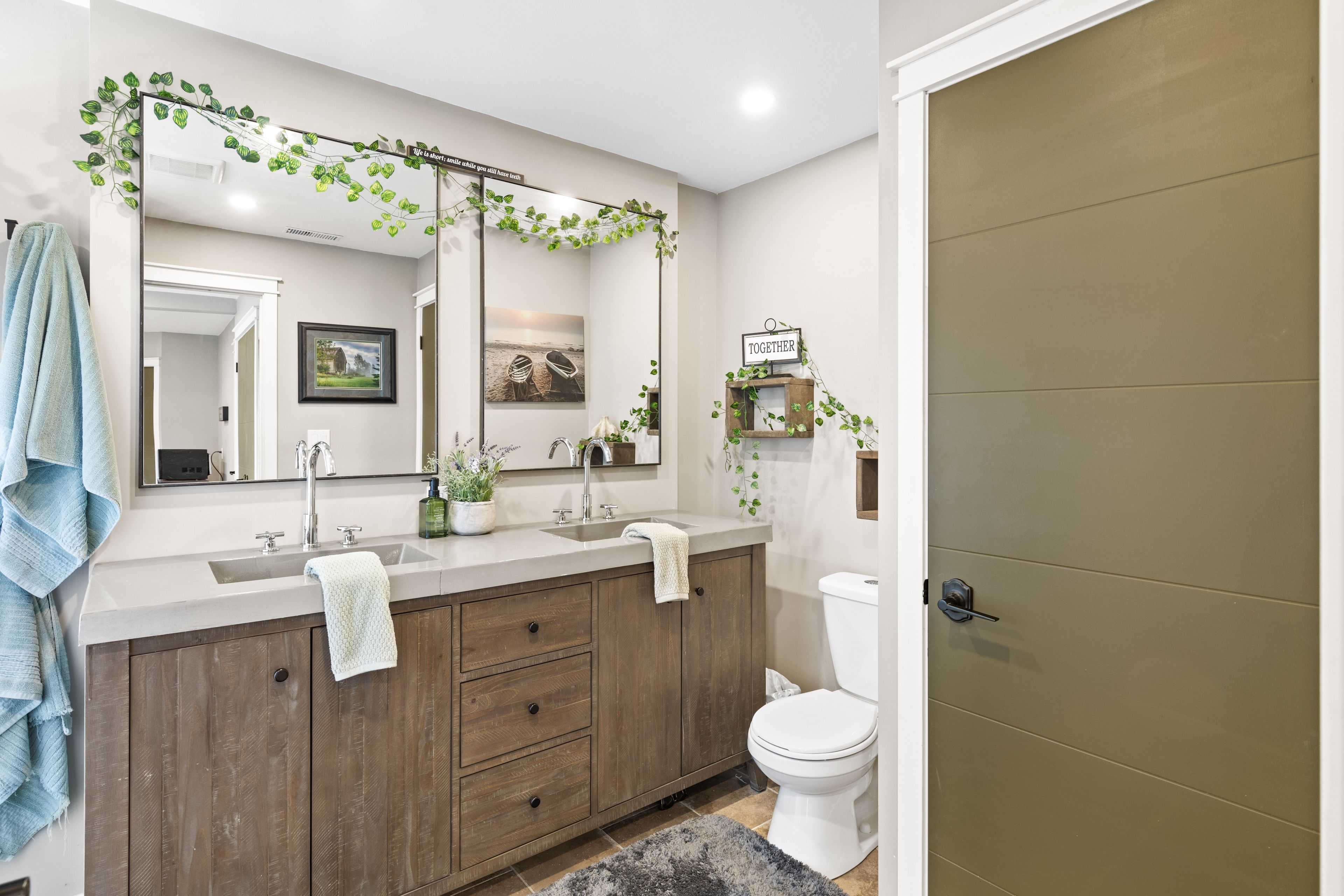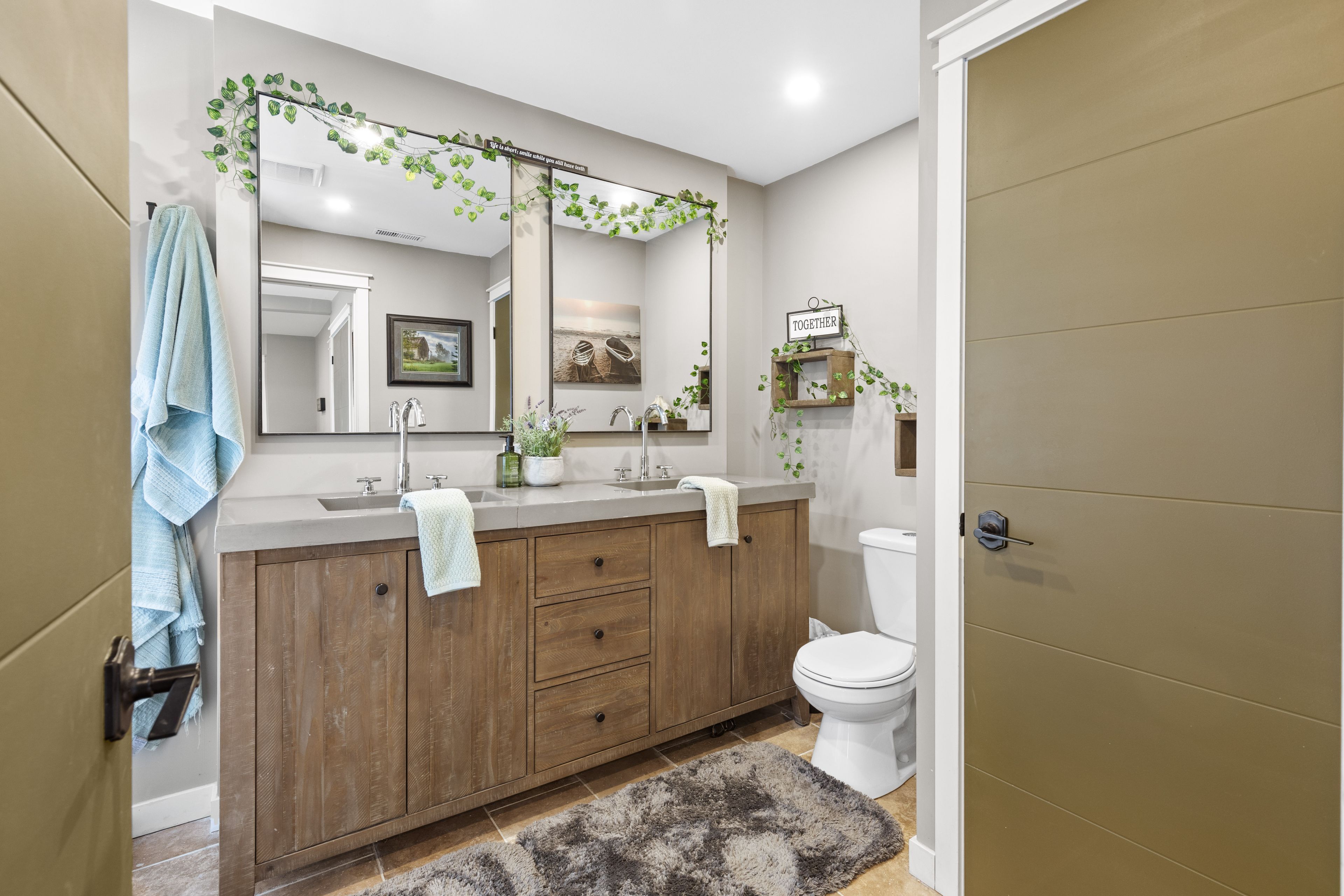 • Spacious bathroom with double vanity for a relaxing experience.