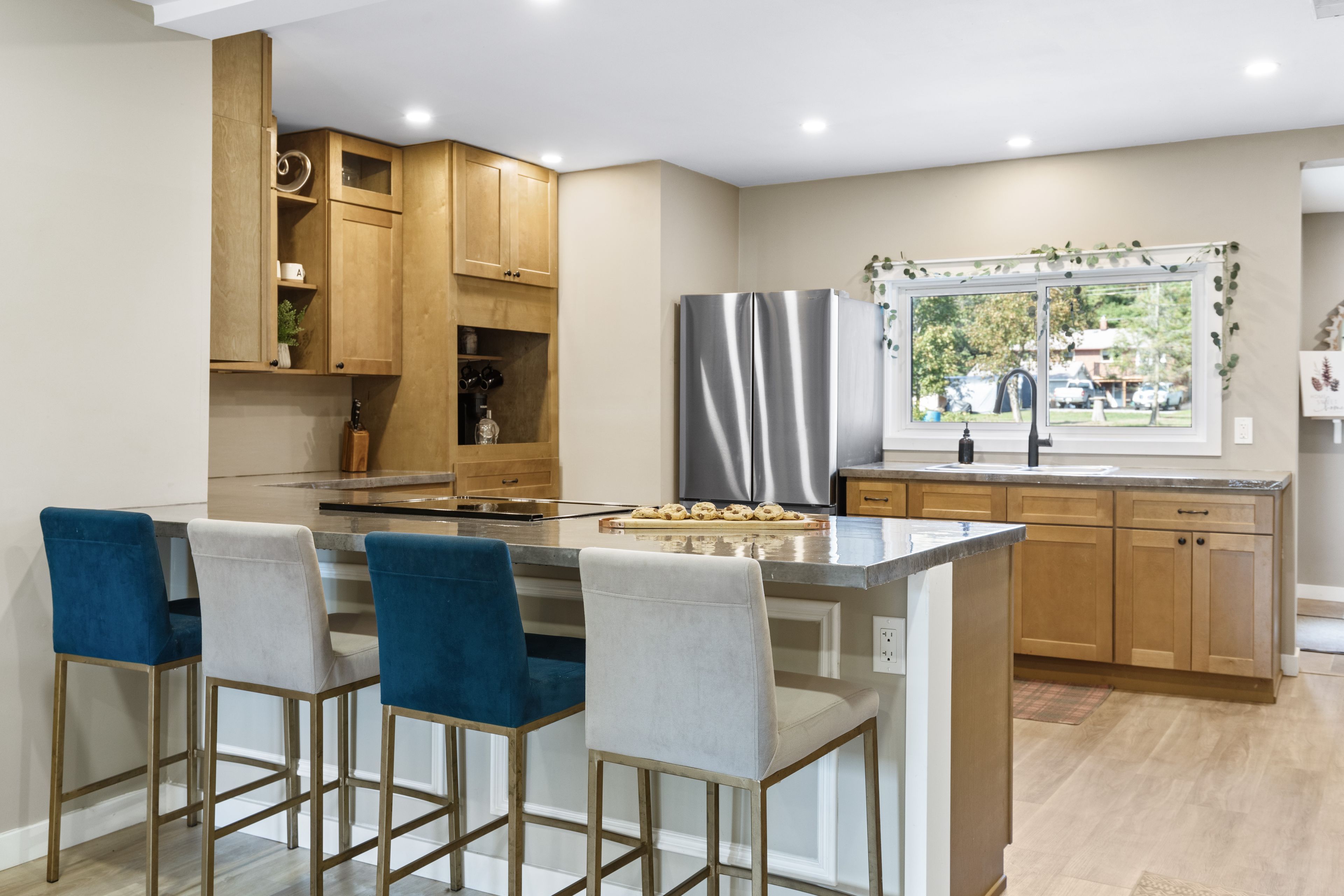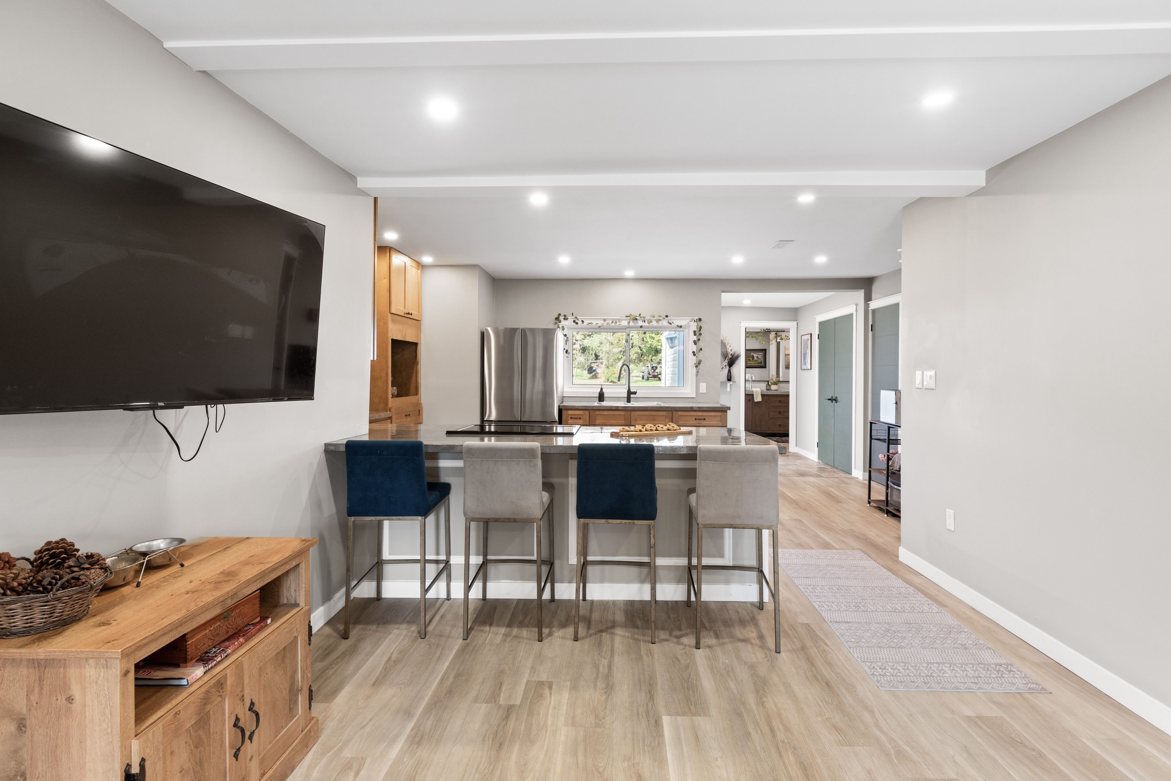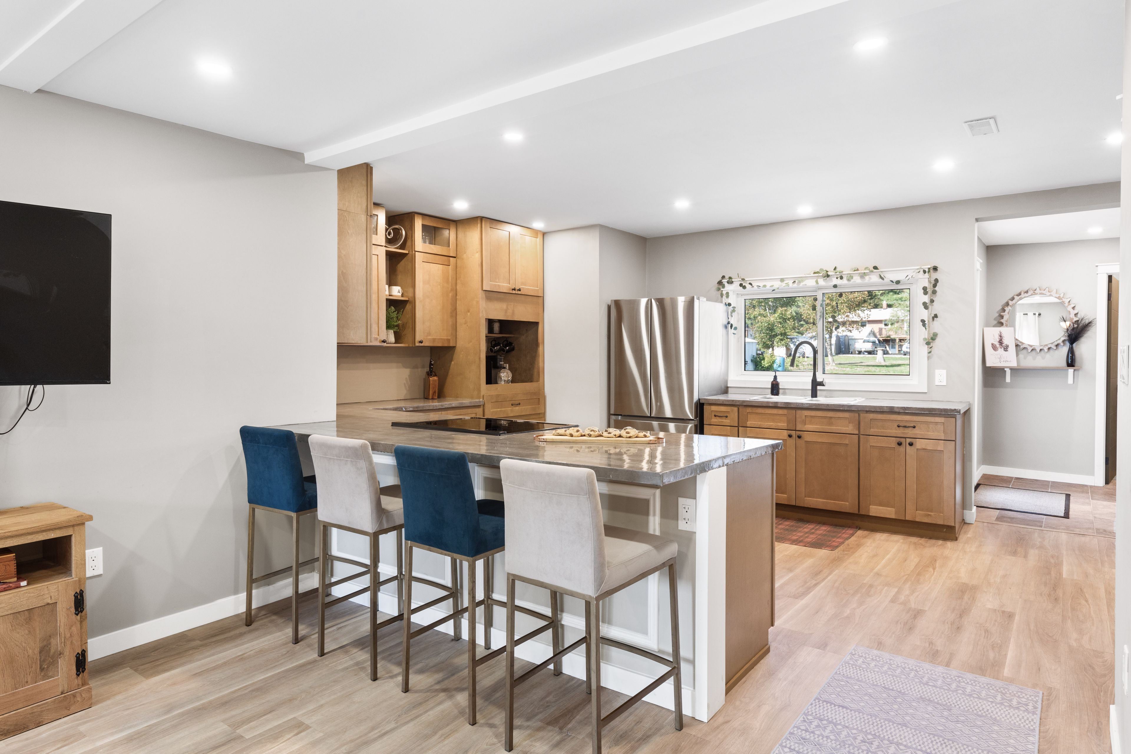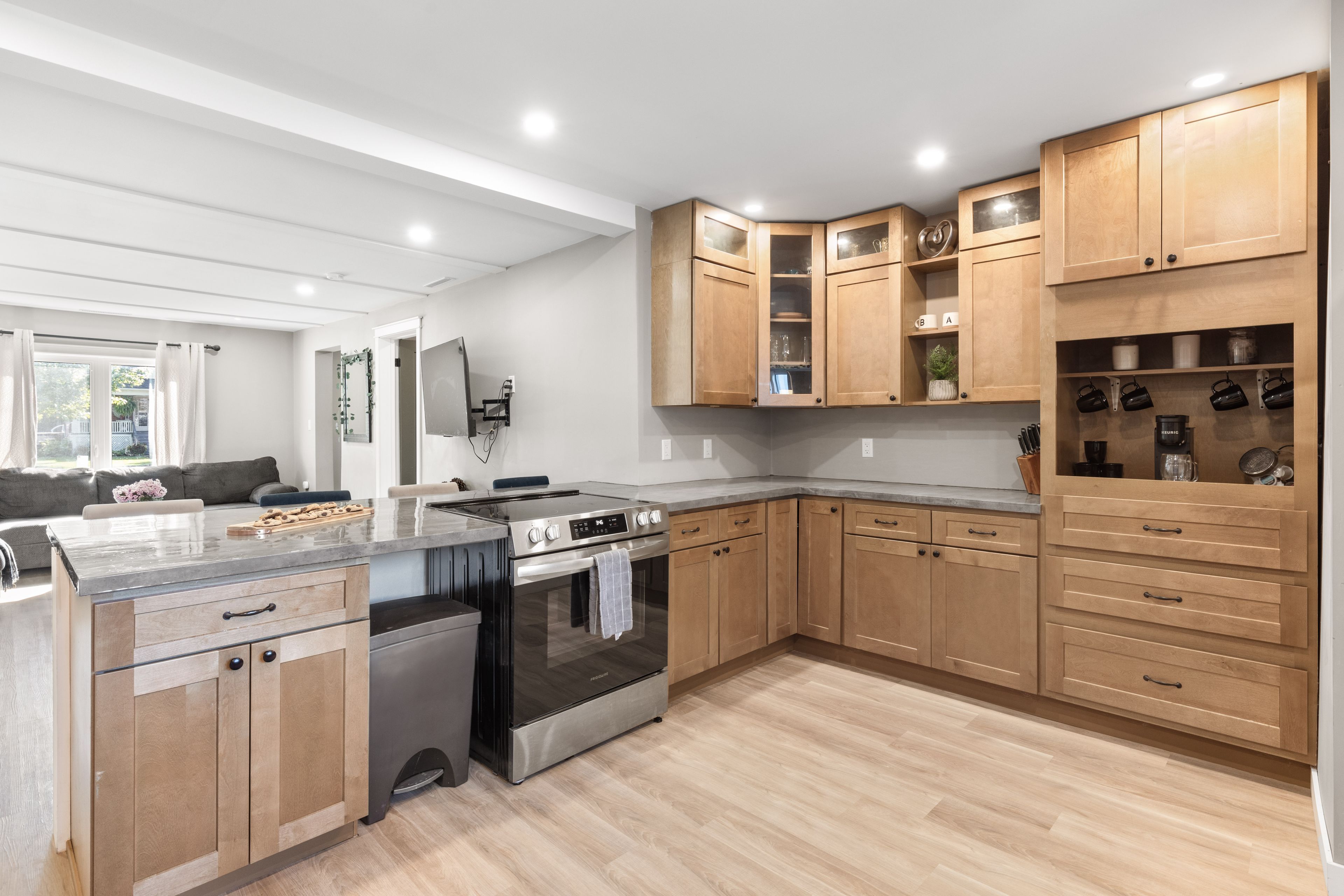 • Chef's kitchen with new appliances flowing into the main living area.
