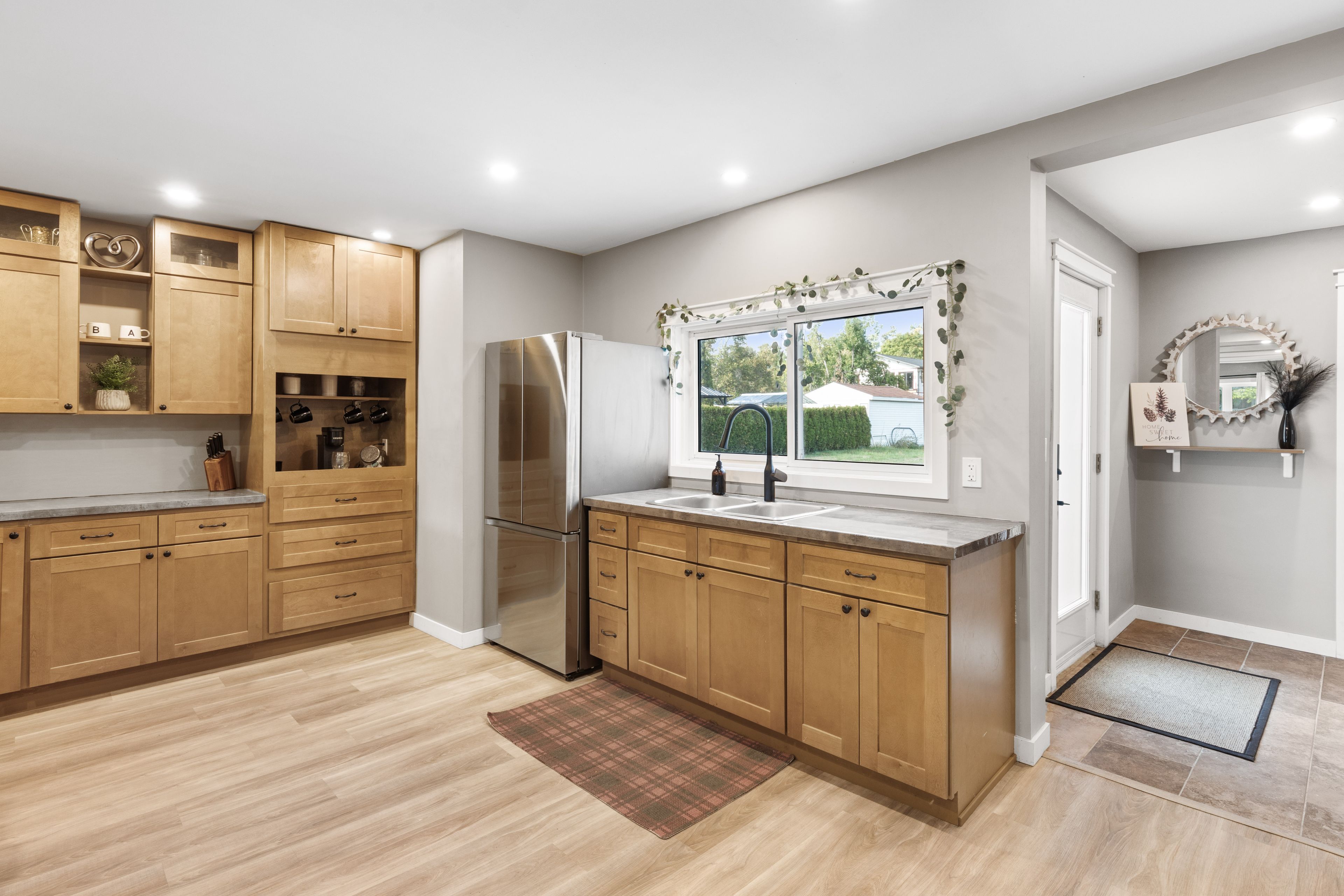 This beautifully updated 2-bedroom bungalow sits on a rare oversized in-town lot, just a short walk to the beach, shops, and all the charm of fenelon falls! Every detail has been thoughtfully designed to combine modern style with everyday comfort. Step inside to a bright open layout, enhanced with pot lights throughout! The chefs kitchen features brand-new appliances and sleek finishes, flowing seamlessly into the main living area. The spacious bathroom offers a spa-like feel with a double vanity, while the primary suite includes a large walk-in closet! A second bedroom with its own closet and a full-size laundry room complete the interior. Outside, enjoy peace of mind with new siding, windows, and a paved driveway leading to the single-car garage (with hydro!). With forced-air gas heating, 200 amp panel (new 2024), all major updates done, and move-in-ready appeal, this home is perfect for those seeking modern living in a welcoming community!