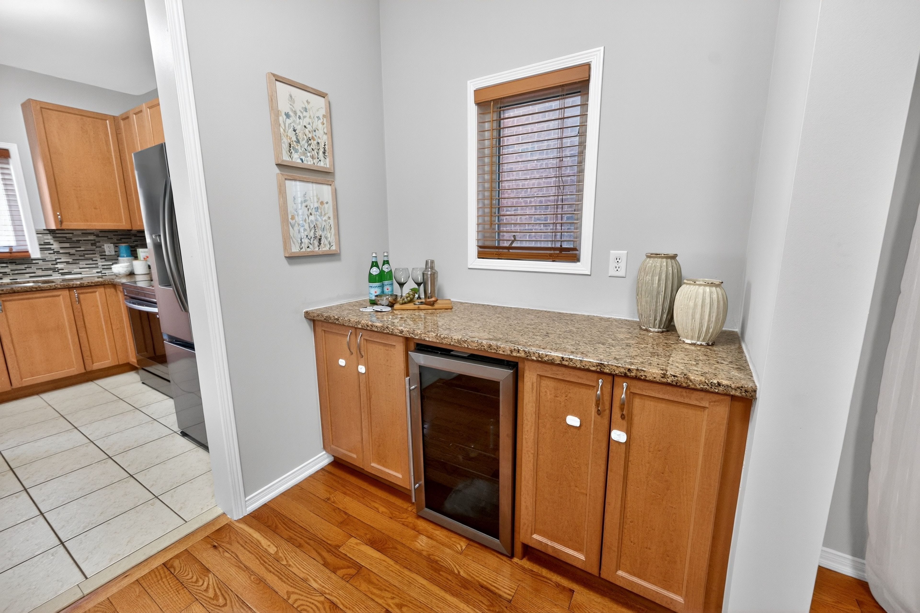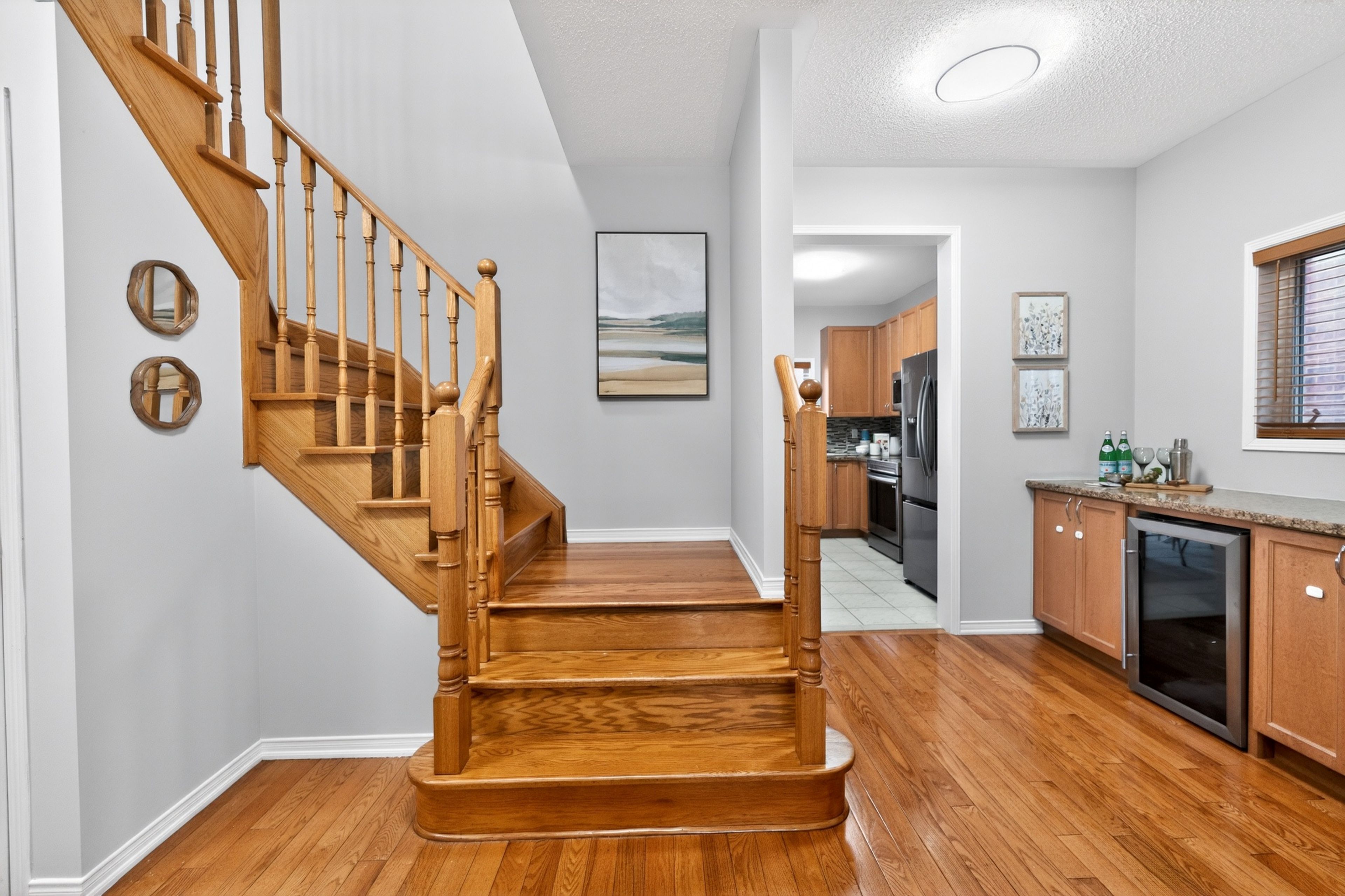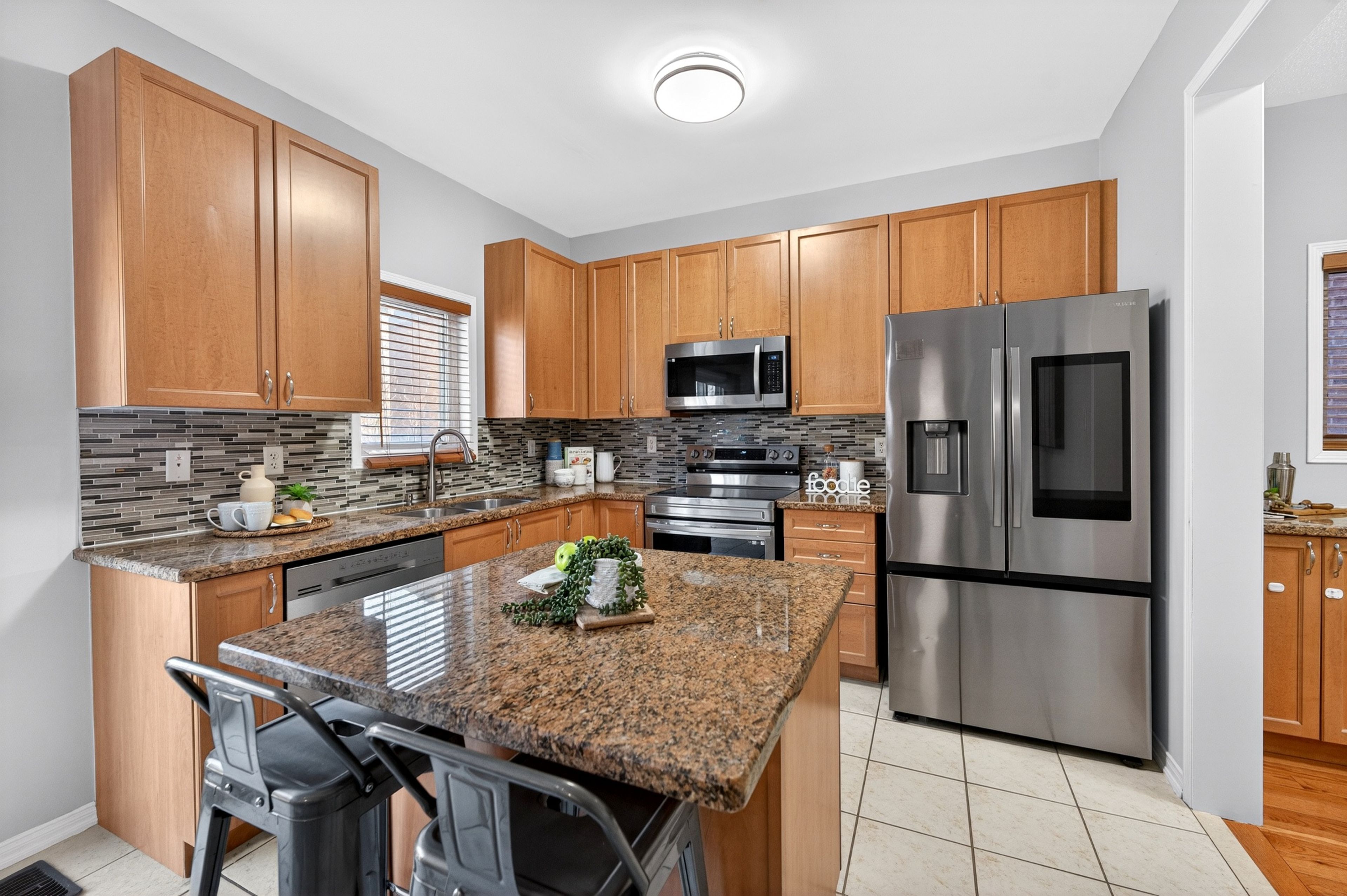 Spacious detached home in a highly sought-after, family-friendly neighbourhood! Hardwood floors and 9-ft ceilings on the main level create a bright and functional layout. Features include an oak staircase, formal dining area with a convenient servery and wine/beverage cooler, and a cozy family room with fireplace and built-in speaker, perfect for entertaining. Upgraded kitchen with granite countertops, backsplash, stainless steel appliances (2024), and breakfast bar, overlooking a bright breakfast area with walk-out to a deck and a large backyard. The primary bedroom offers a 4-piece ensuite with granite countertops and a walk-in closet. All bedrooms are generously sized, with an updated main bathroom on the second floor featuring granite countertops. Additional highlights include main floor laundry, direct access to the garage, and a furnace replaced in 2023. Ideally located within walking distance to top-ranked schools (including french immersion), audley rec centre, parks, transit, and just minutes to hwy 412, 401, and 407, along with shops, banks, deer creek golf club, and more!