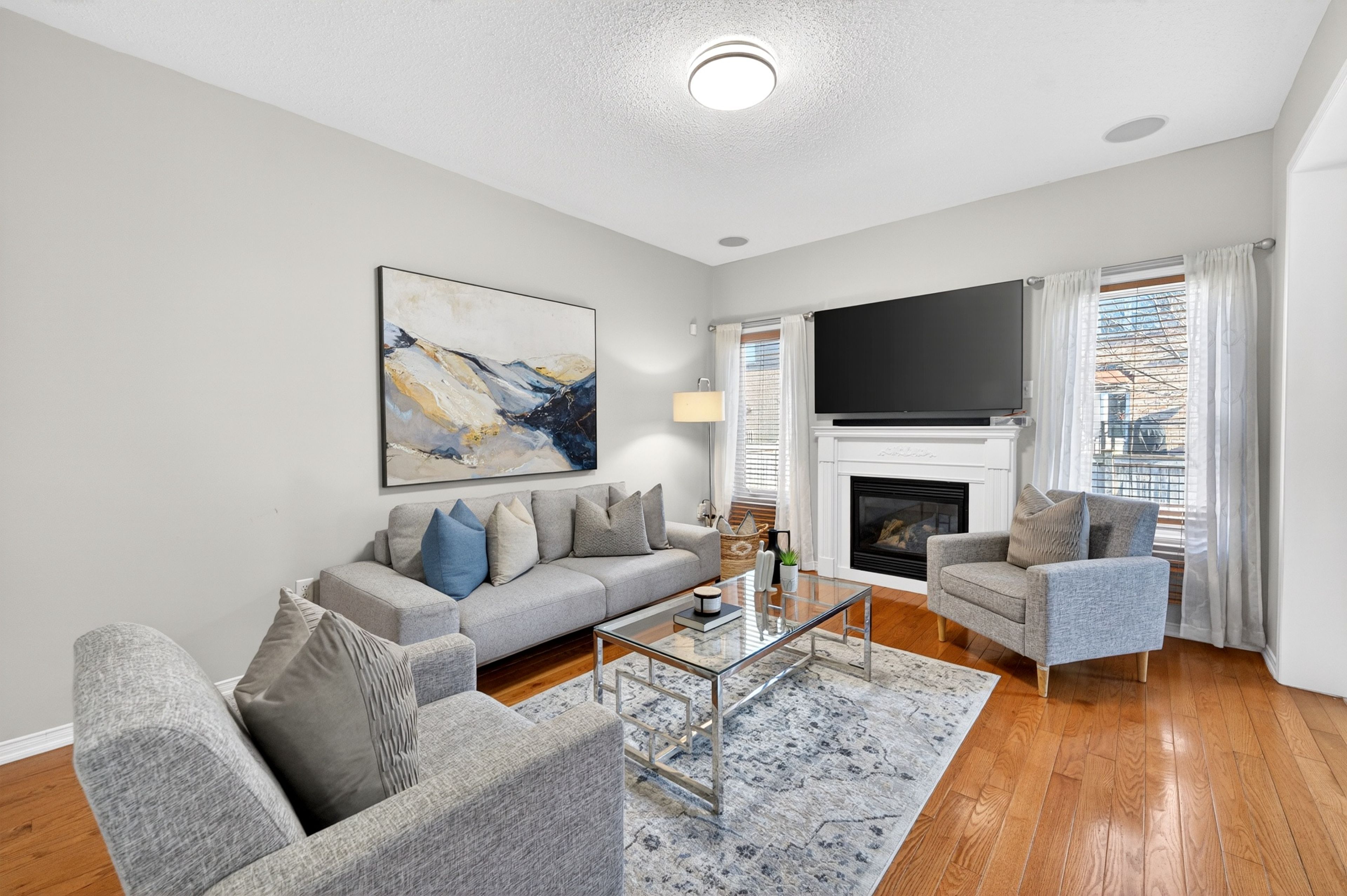 • Cozy family room with fireplace and built-in speakers for entertaining.