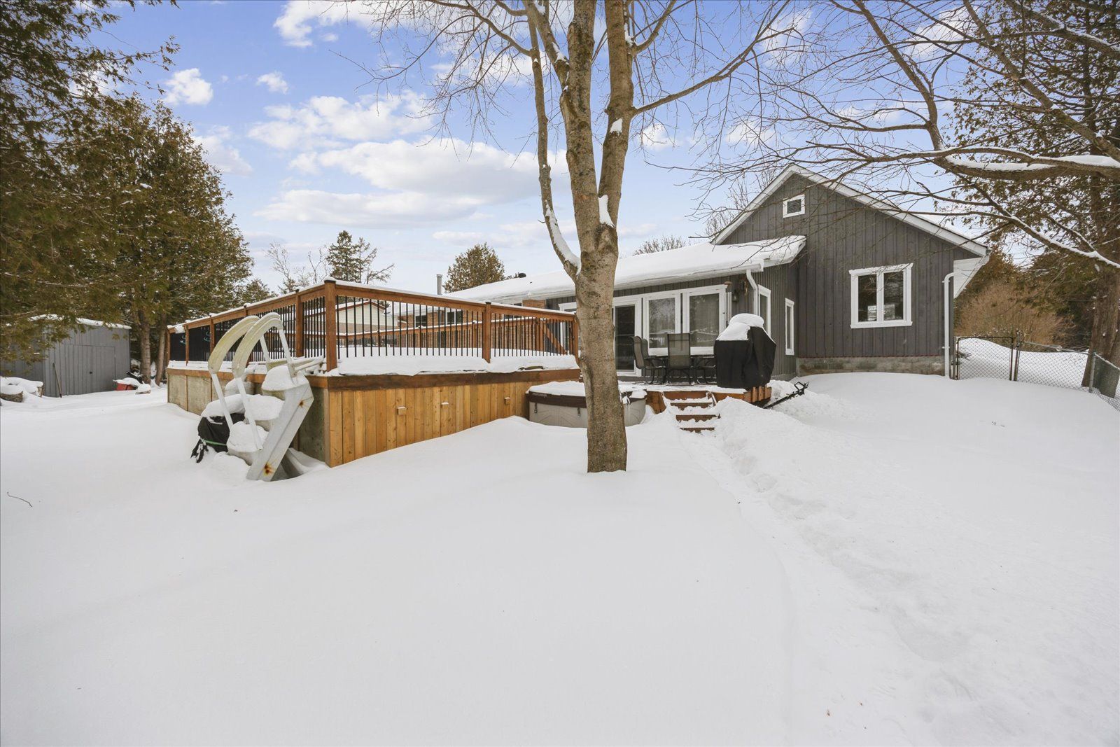 Awesome 4+1 bedroom bungalow with a finished basement for extra living space, on a private mature 100' x 150' property which boasts a heated salt water pool. Bright spacious living room featuring hardwood & a large bay window. Renovated eat-in kitchen with lots of cabinets, counter space & subway tile backsplash. 4 spacious bedrooms with good sized closets & windows. Two front entrances of which one enters into the large foyer which leads to the above grade family room where there are multiple large windows, vaulted ceiling, electric fireplace, & sliding door walk out to the back deck. The lower level is bonus space for your family with a massive rec room complete with above grade windows, a cozy wood stove, kitchenette, laundry area, additional bedroom, 2 piece powder room & separate shower room. The large fenced back yard is an amazing spot for entertaining family members & friends in the nice weather. The pool will provide lots of hours of fun for everyone. The large driveway provides lots of space for vehicles & recreational toys, while the 40' x 20' (approximate) garage with bonus loft offers storage & workshop space. Located in a sought after family friendly neighbourhood in pefferlaw, this home is close to lake simcoe, marinas, golf, & quick access to highway 48.