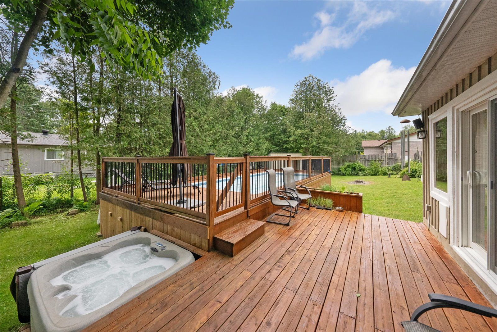 • Heated saltwater pool in a spacious, private backyard.