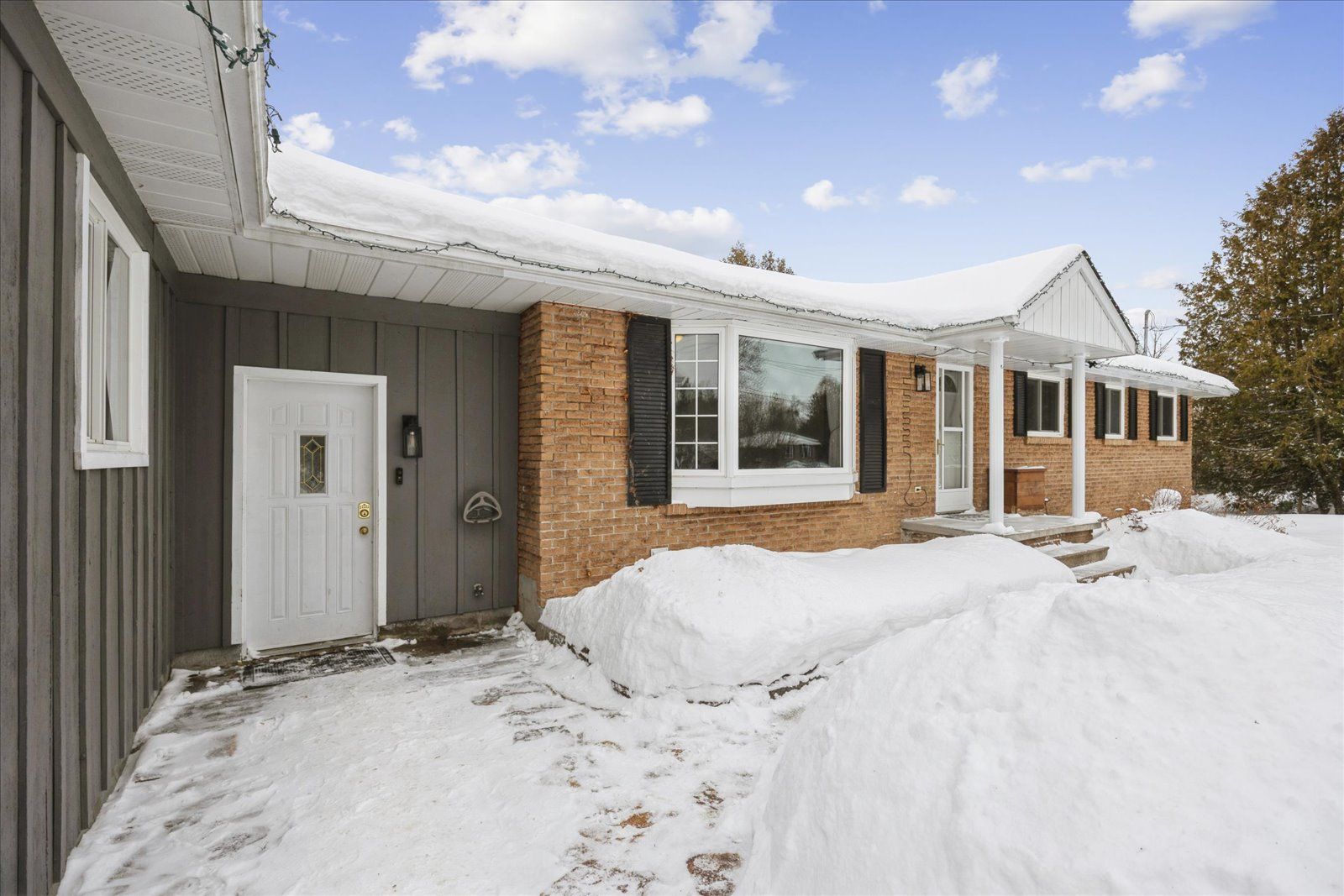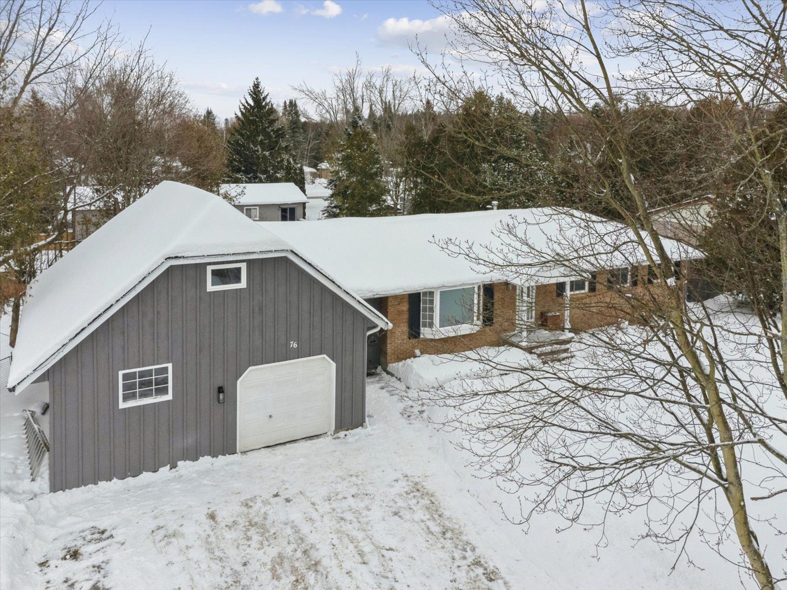 • Large driveway and garage with storage and workshop space.