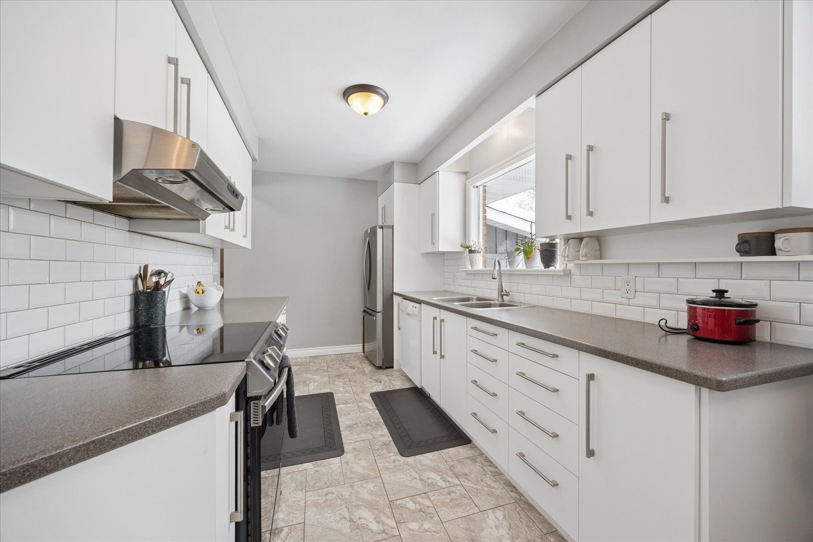 • Renovated kitchen with ample cabinets and counter space.