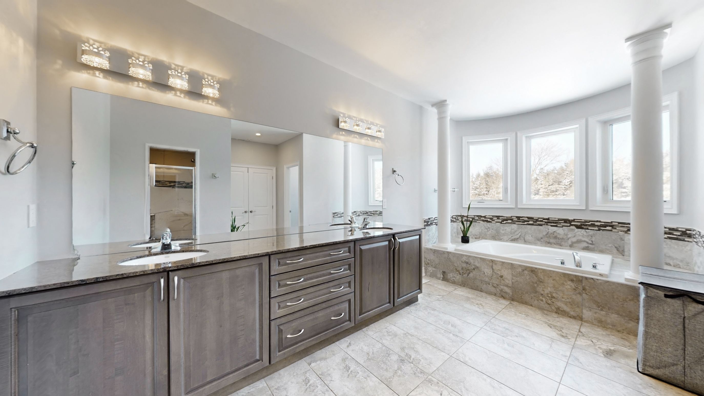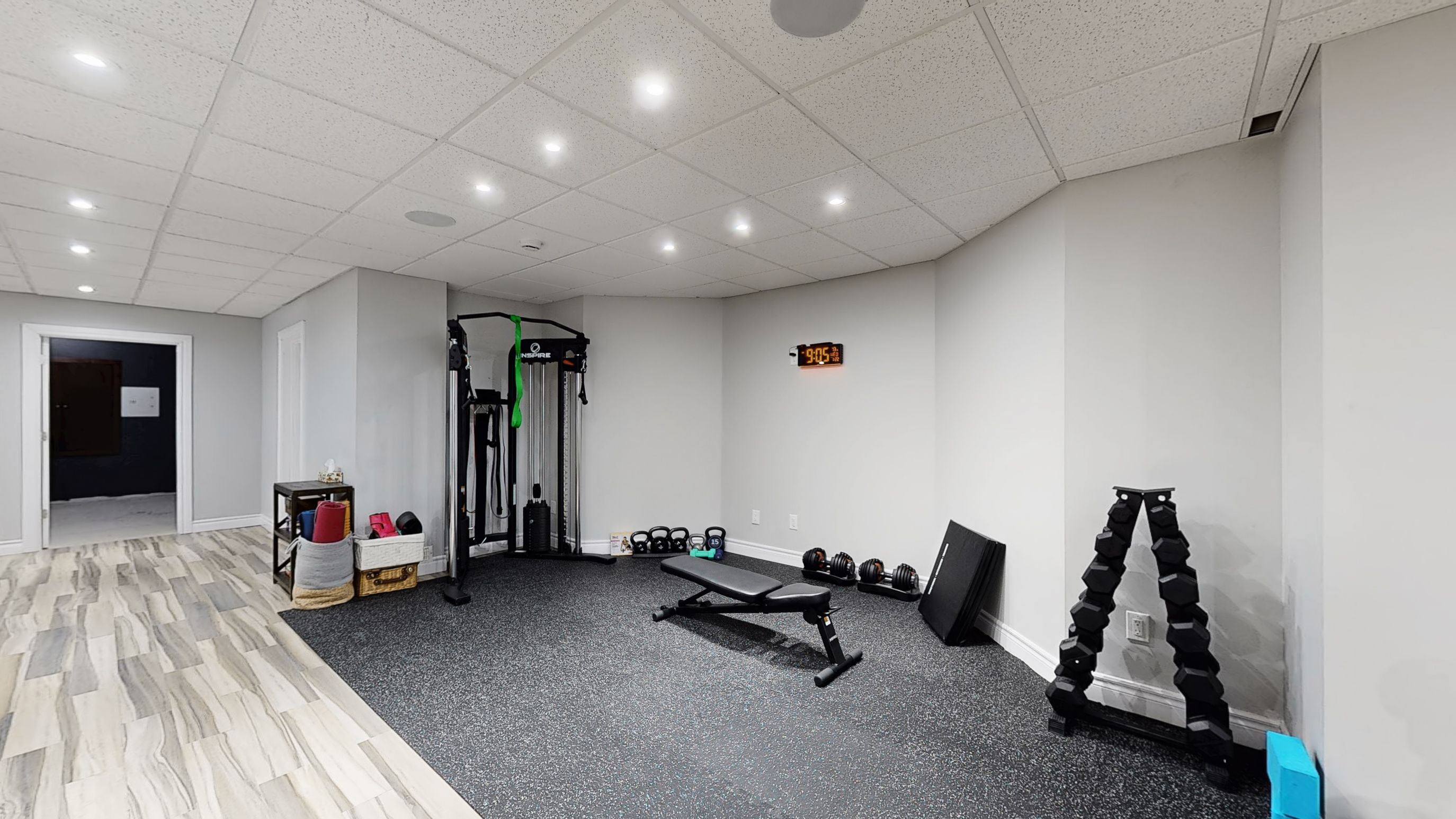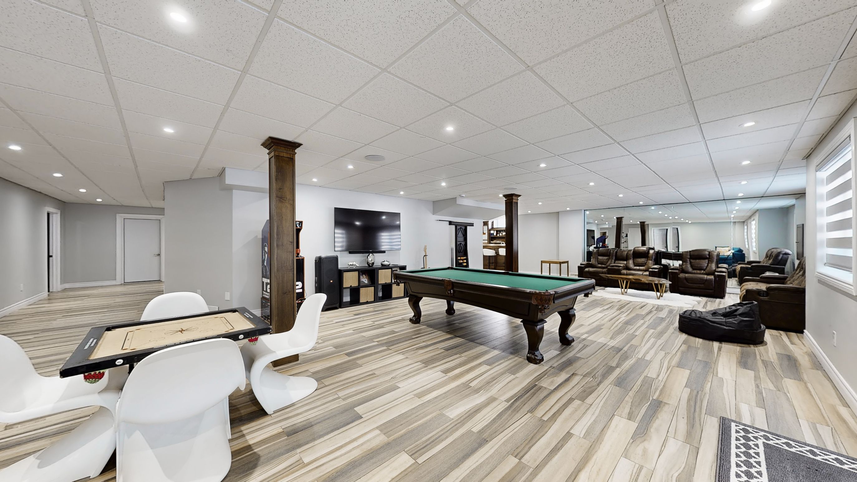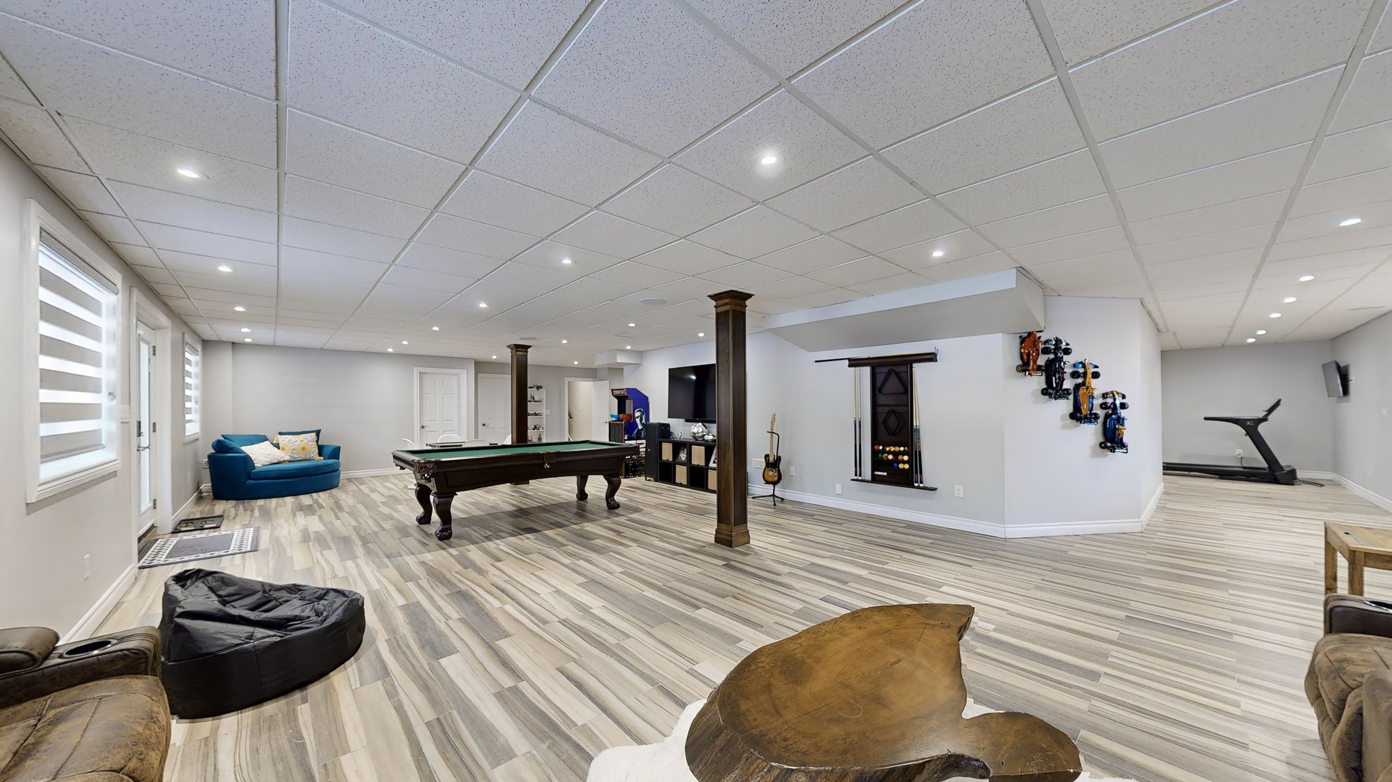 • 3,000 sq. ft. walkout basement includes a bar, gym, and recreational space.