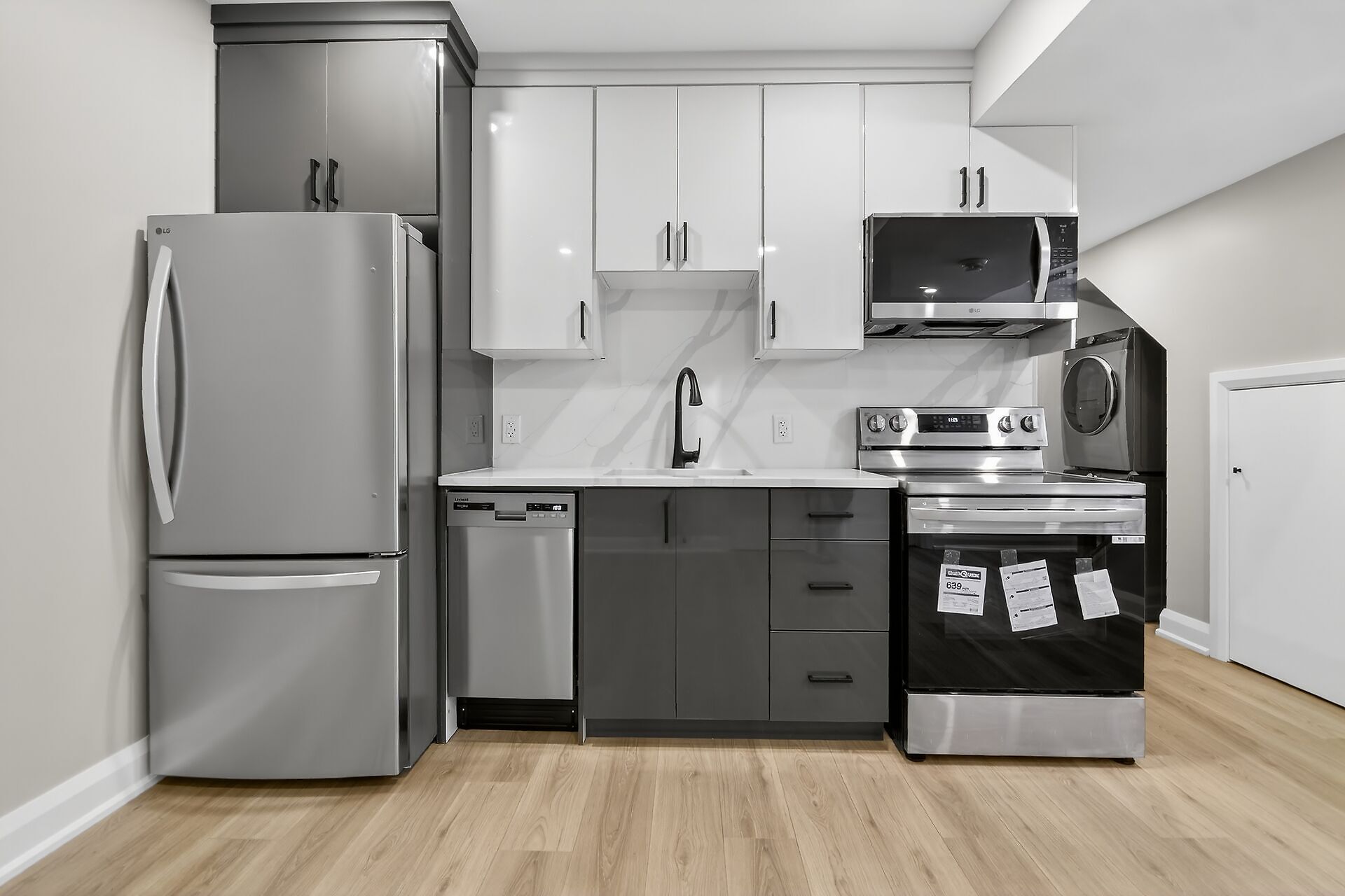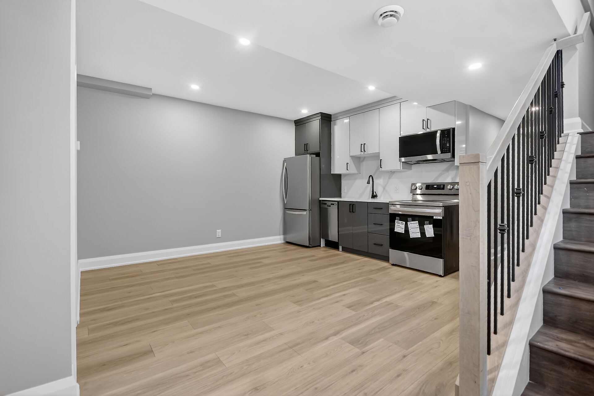 This brand new one-bedroom plus den/2nd bedroom with its own private entrance is a true gem that boasts water resistant laminate and tile flooring throughout, complemented by a sleek, modern kitchen with stainless steel appliances. Open living and dining spaces create an inviting atmosphere perfect for relaxation or entertaining. With one beautifully designed bathroom, and your own laundry. This premium basement apartment combines comfort with style. Water included in the rent. No parking, no access to driveway, garage or backyard.