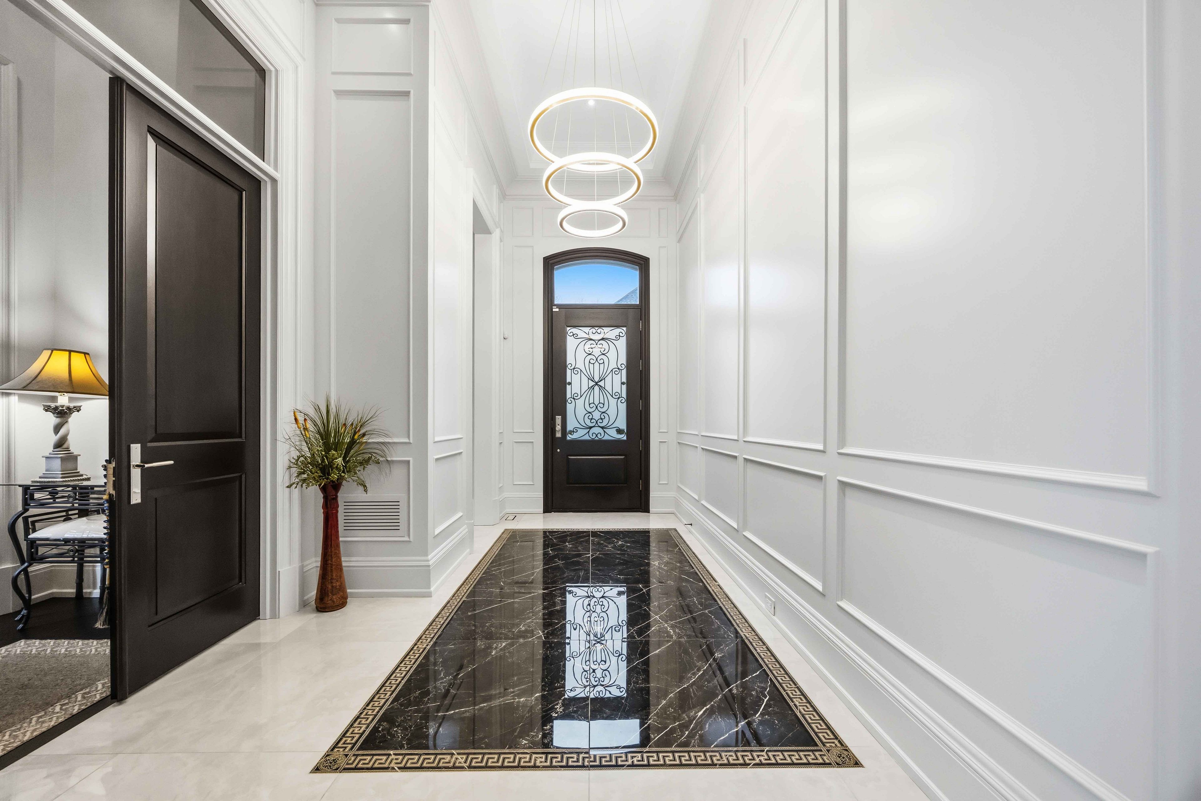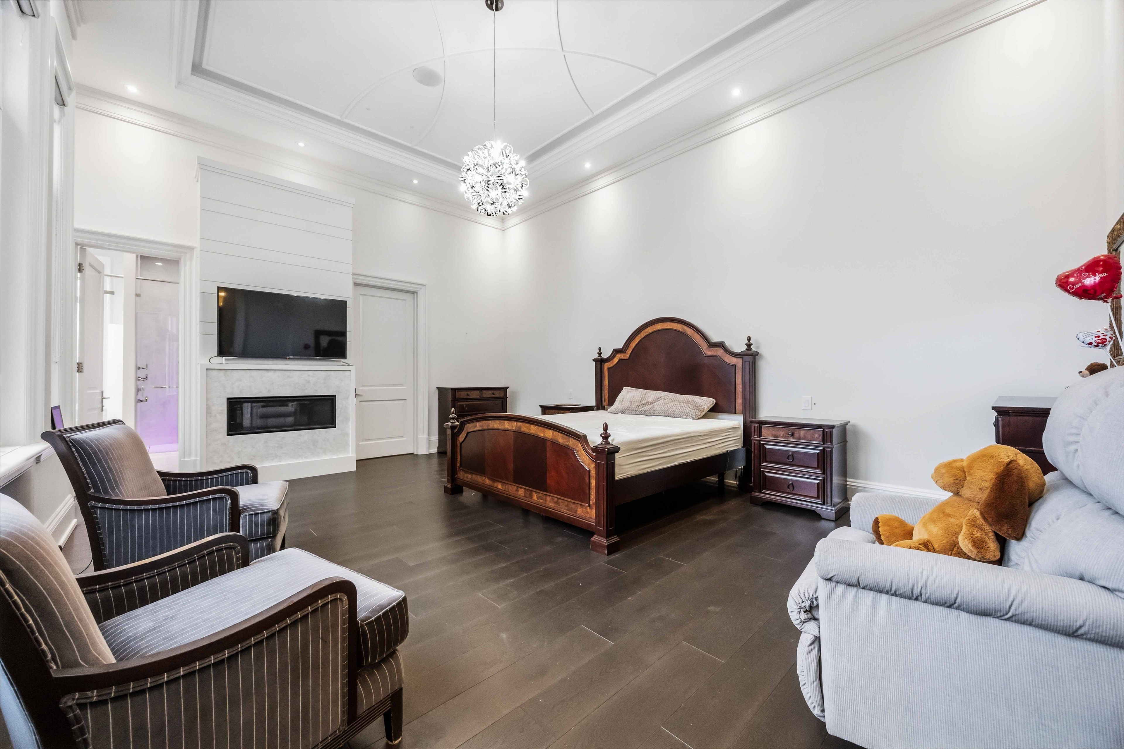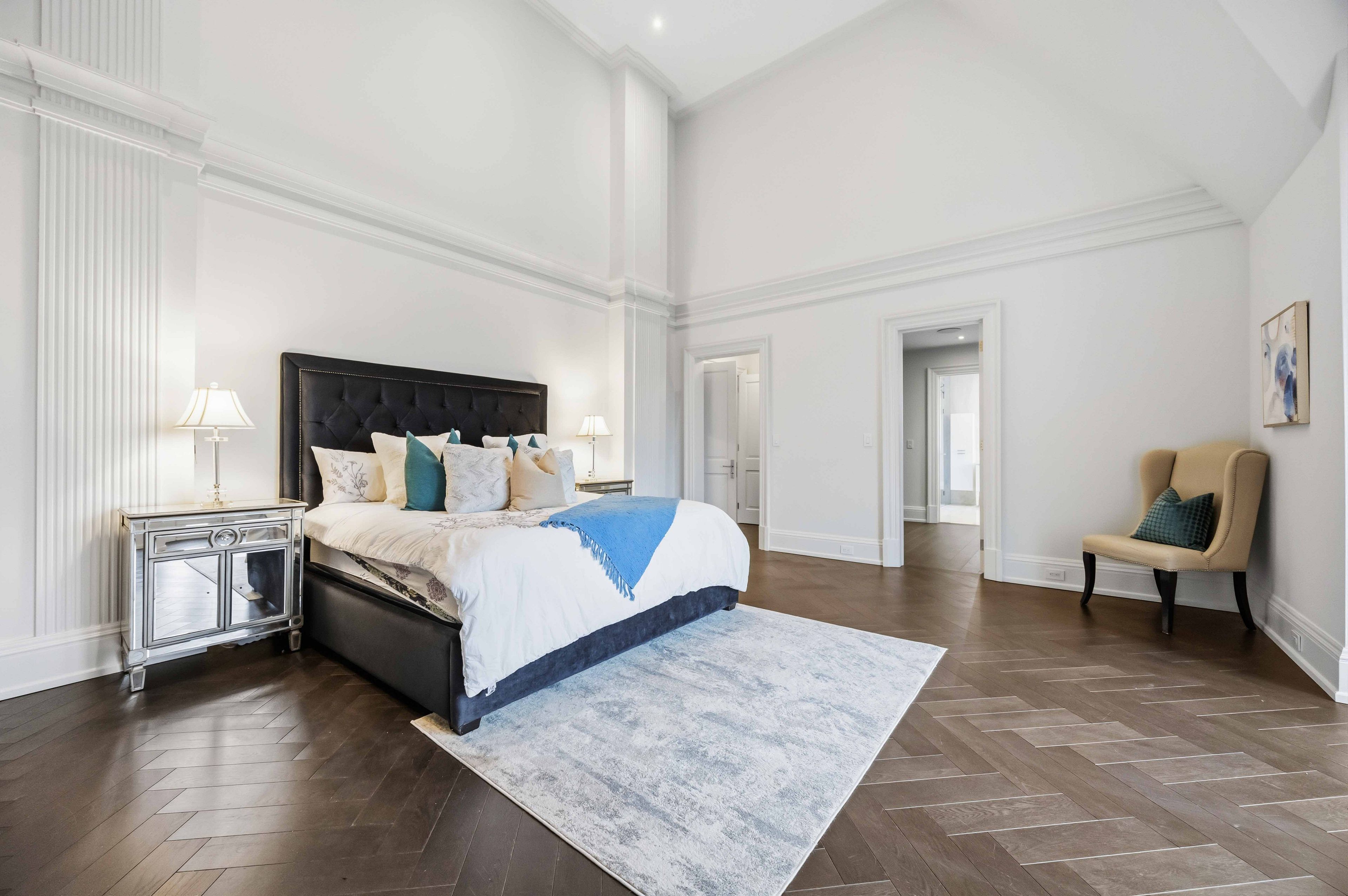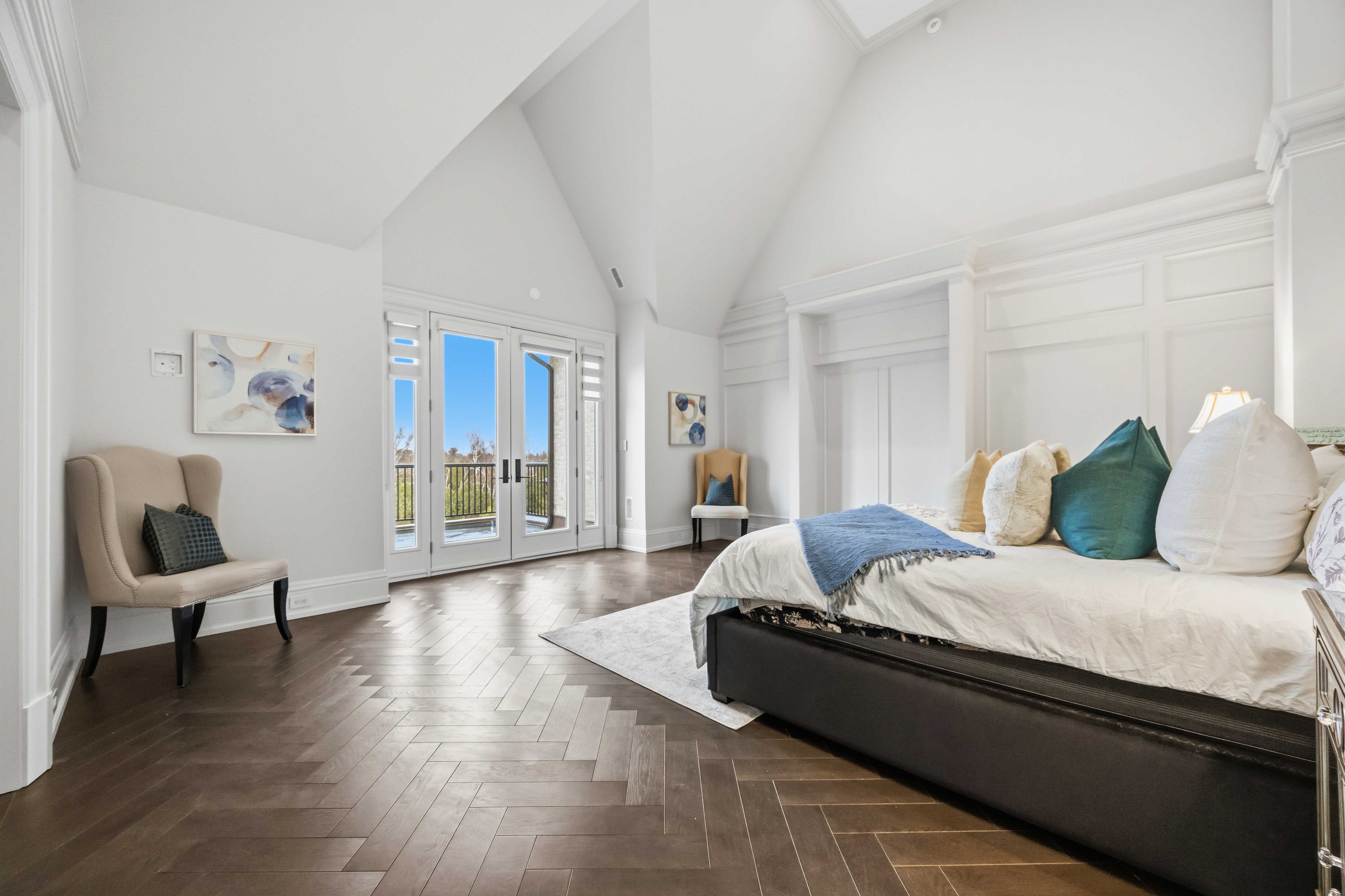 • Main estate features dramatic ceilings, formal spaces, and a luxurious kitchen.