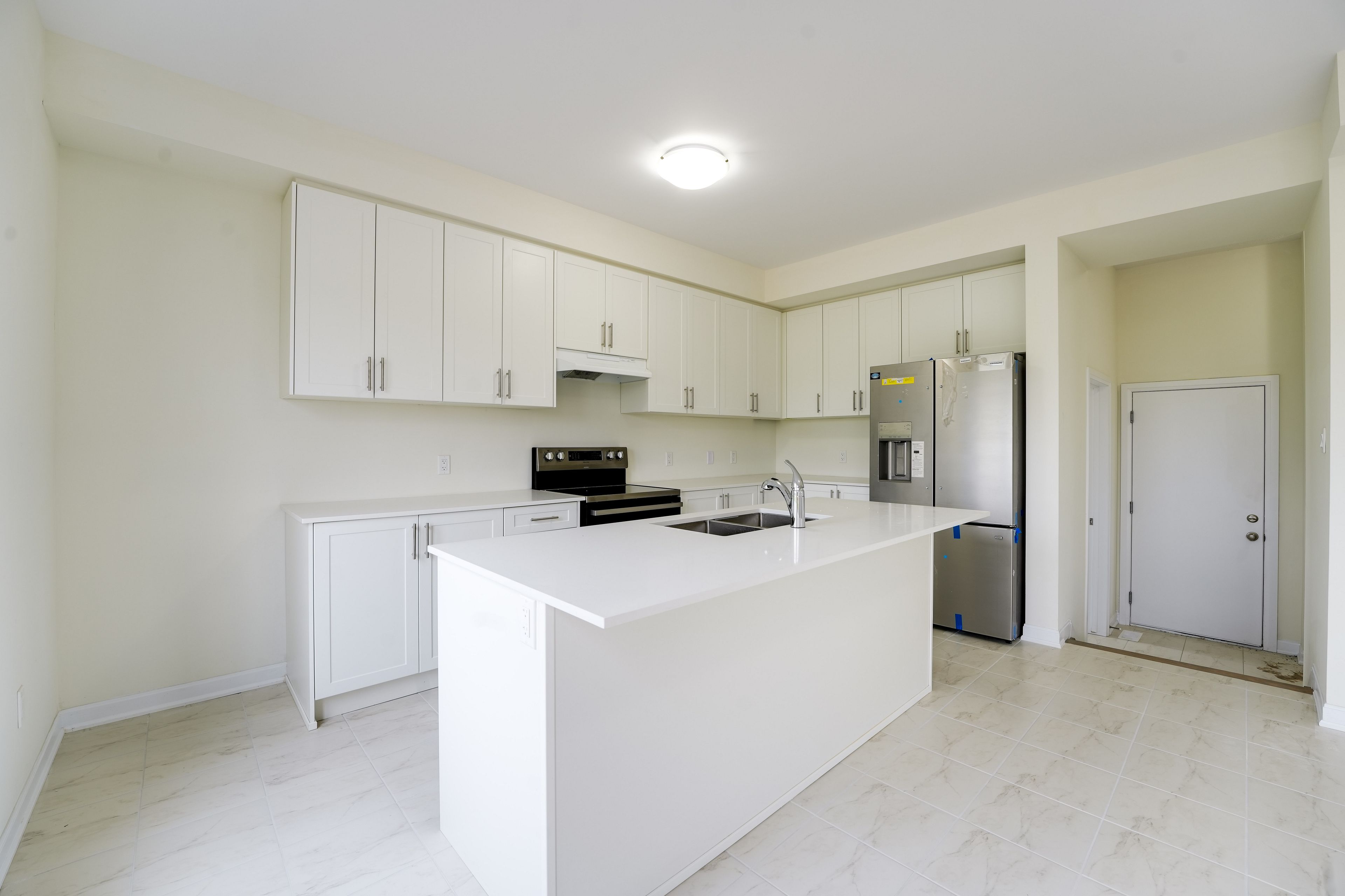 • Modern kitchen with quartz countertops and stainless steel appliances.