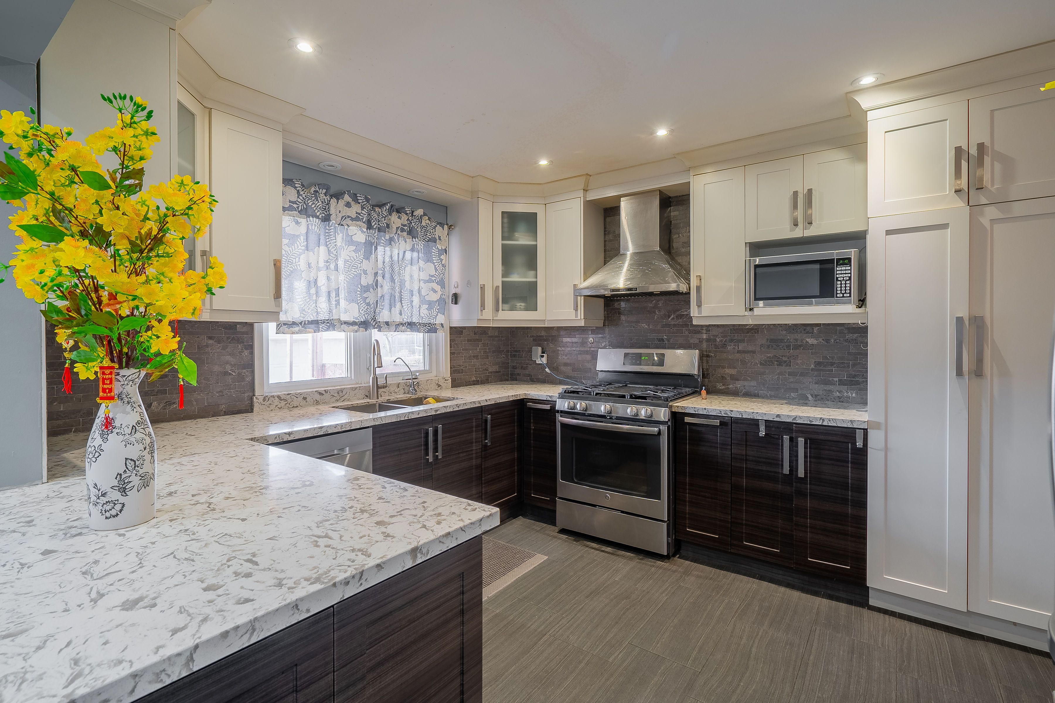 • Renovated kitchen featuring quartz countertops and stainless steel appliances.