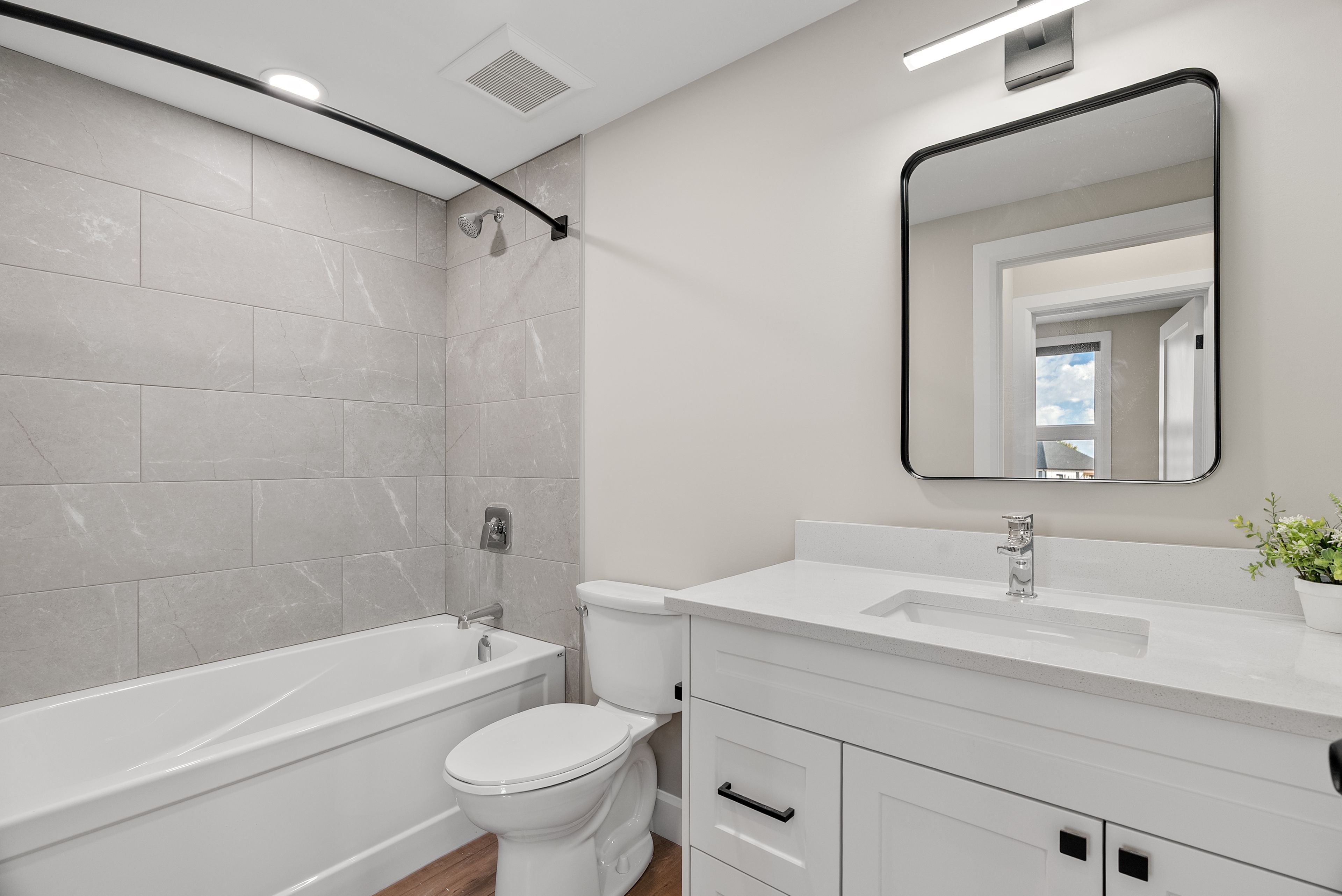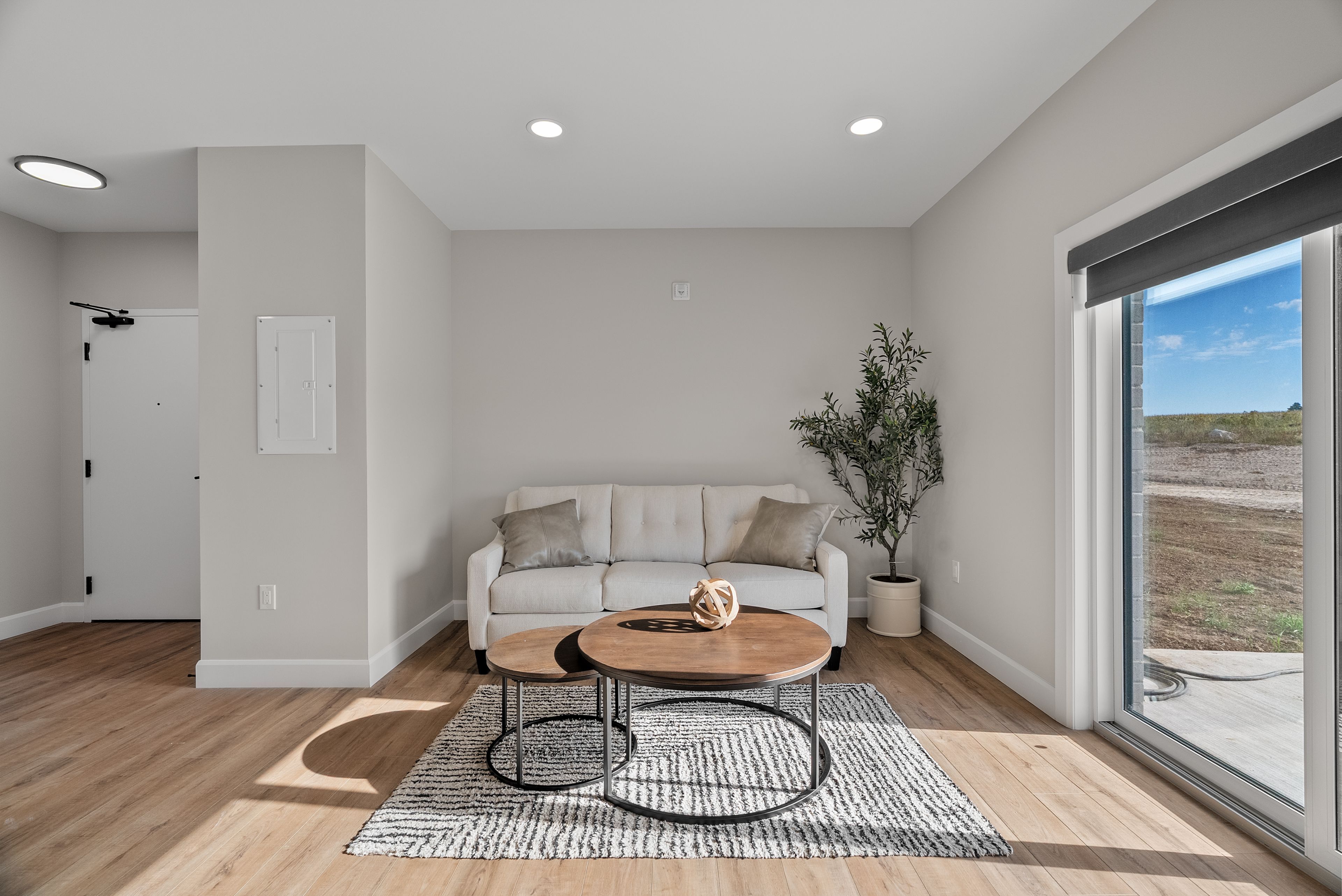 • Contemporary design with open-concept kitchen and living space.