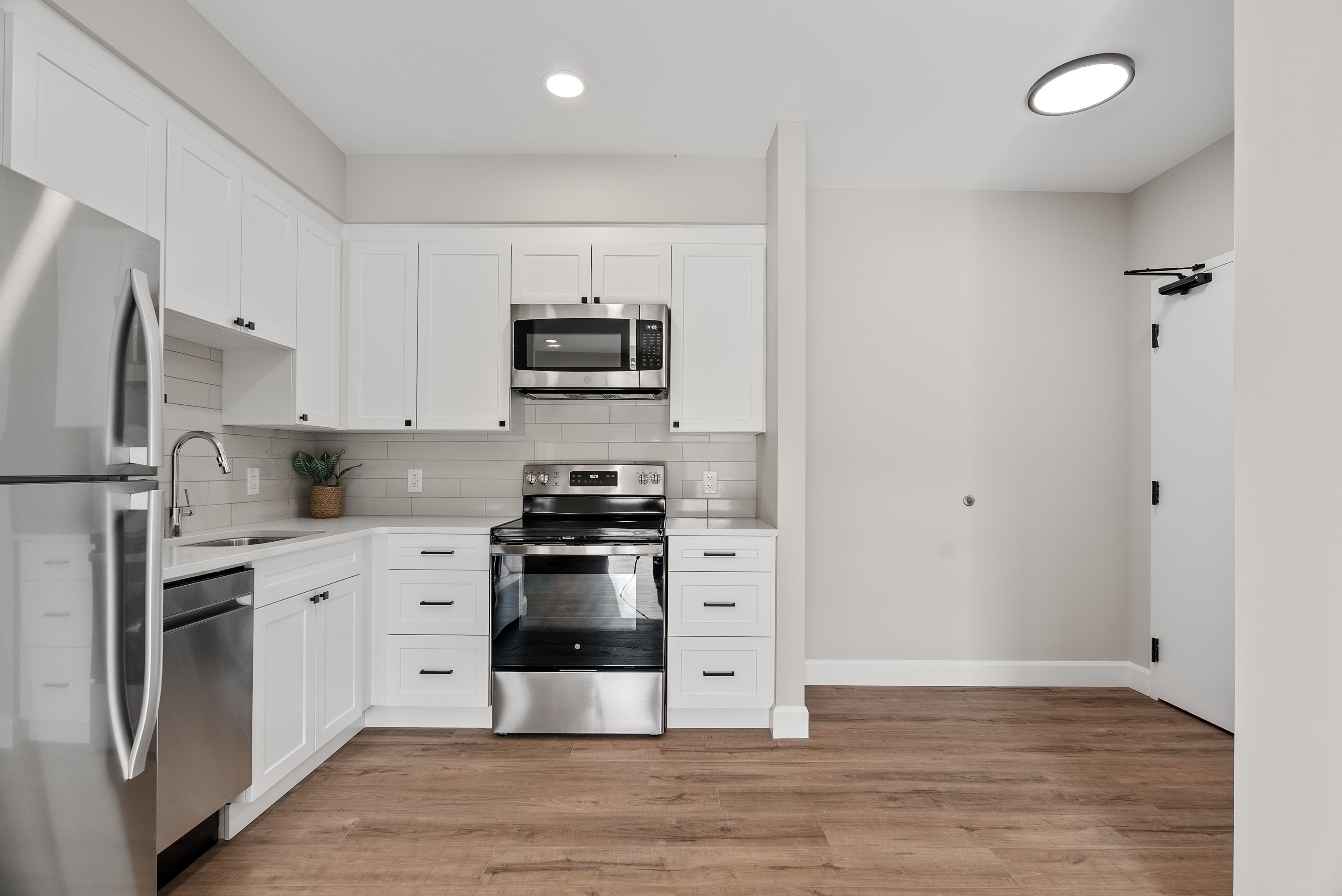 Located in one of ontario's most sought-after lakeside communities, this beautifully finished ground level suite offers modern comfort and a great location in the heart of goderich, "the prettiest town in ontario". Set just steps from the iconic downtown square, residents enjoy immediate access to shopping, cafes and dining, while the shores of lake huron and goderich's renowned beach/boardwalk are within walking distance: a true coastal living experience. This 2 bedroom suite is thoughtfully designed with a clean, contemporary aesthetic. The open-concept kitchen and living space boasts white shaker-style cabinetry, quartz countertops with matching backsplash. This stylish property is perfect for anyone looking to downsize or for those seeking a low maintenance lifestyle in a premium location. The ground-level suite enhances accessibility and everyday convenience while comfort is elevated with individually controlled heating and air conditioning. Establish yourself in this well-connected, amenity-rich setting with easy access to downtown conveniences and the waterfront. Occupancy is expected for september 1, 2026. (note: photos are renderings only. Building is currently under construction. Apartment is at rear of the main building. Laundromat/dry cleaning centre is adjacent to the property. $100 laundry credit provided. Tenant pays rent + hydro.)