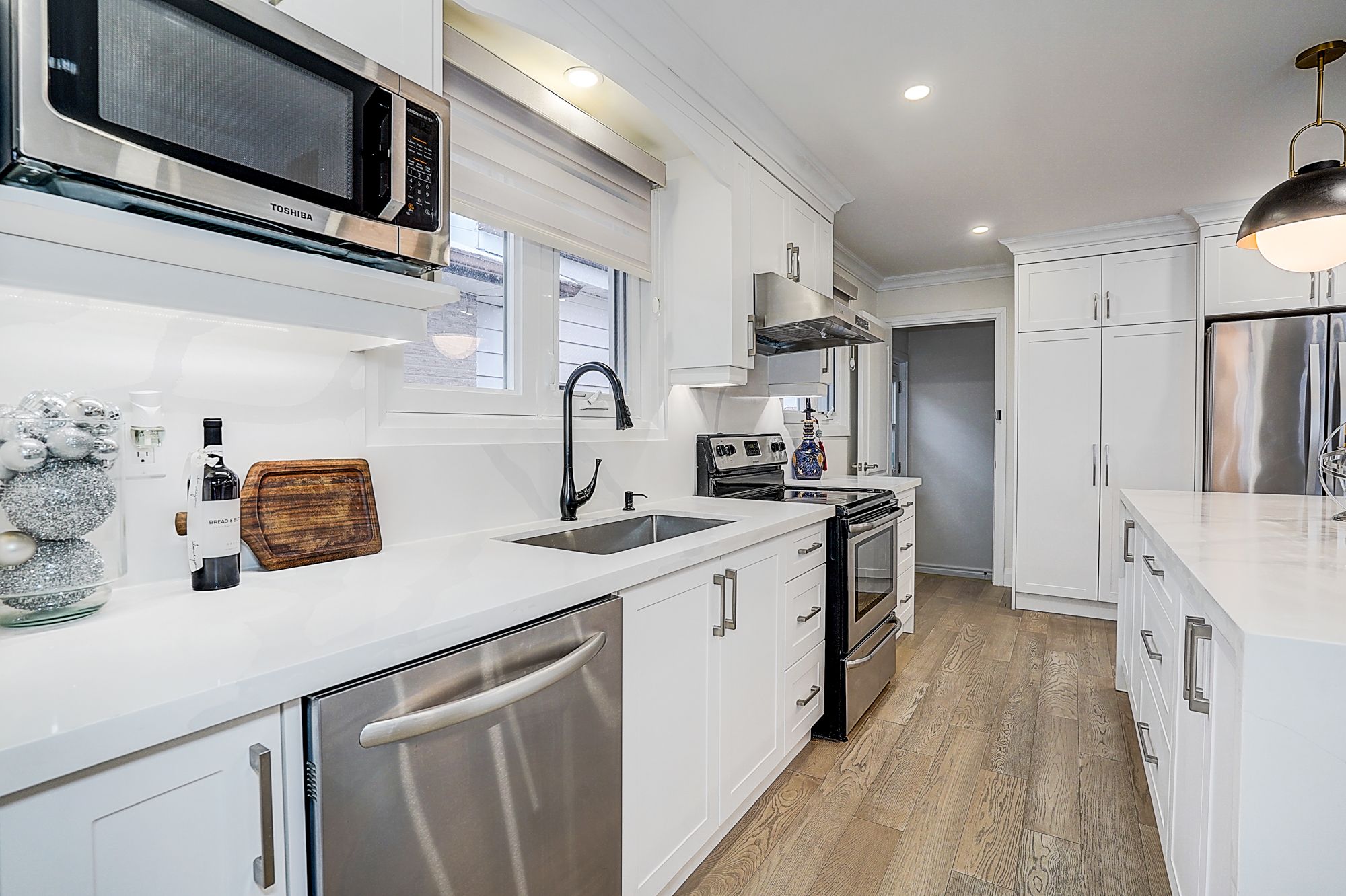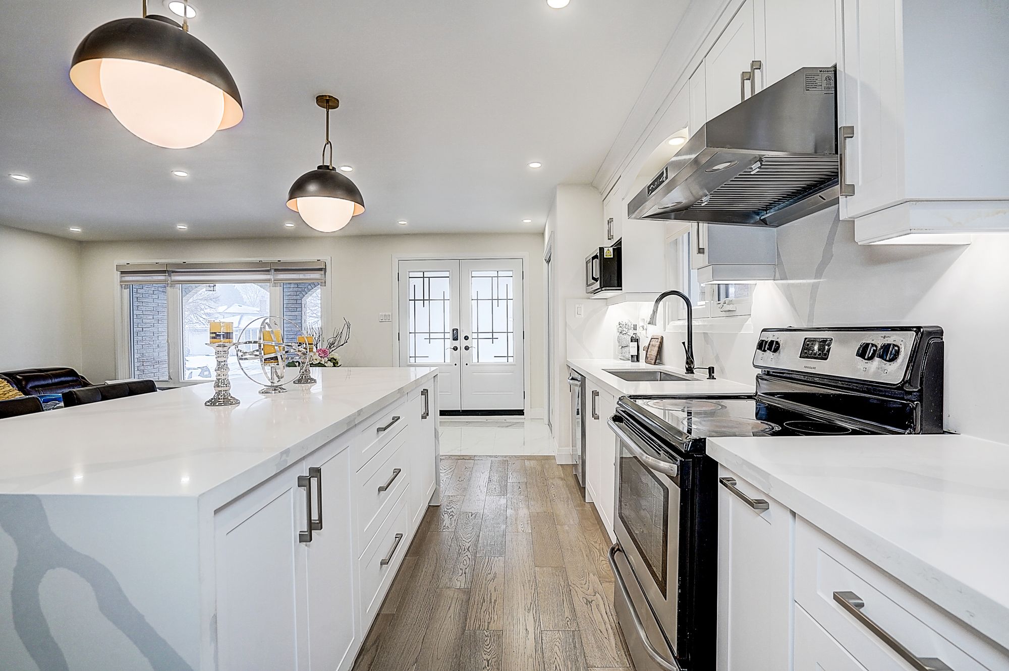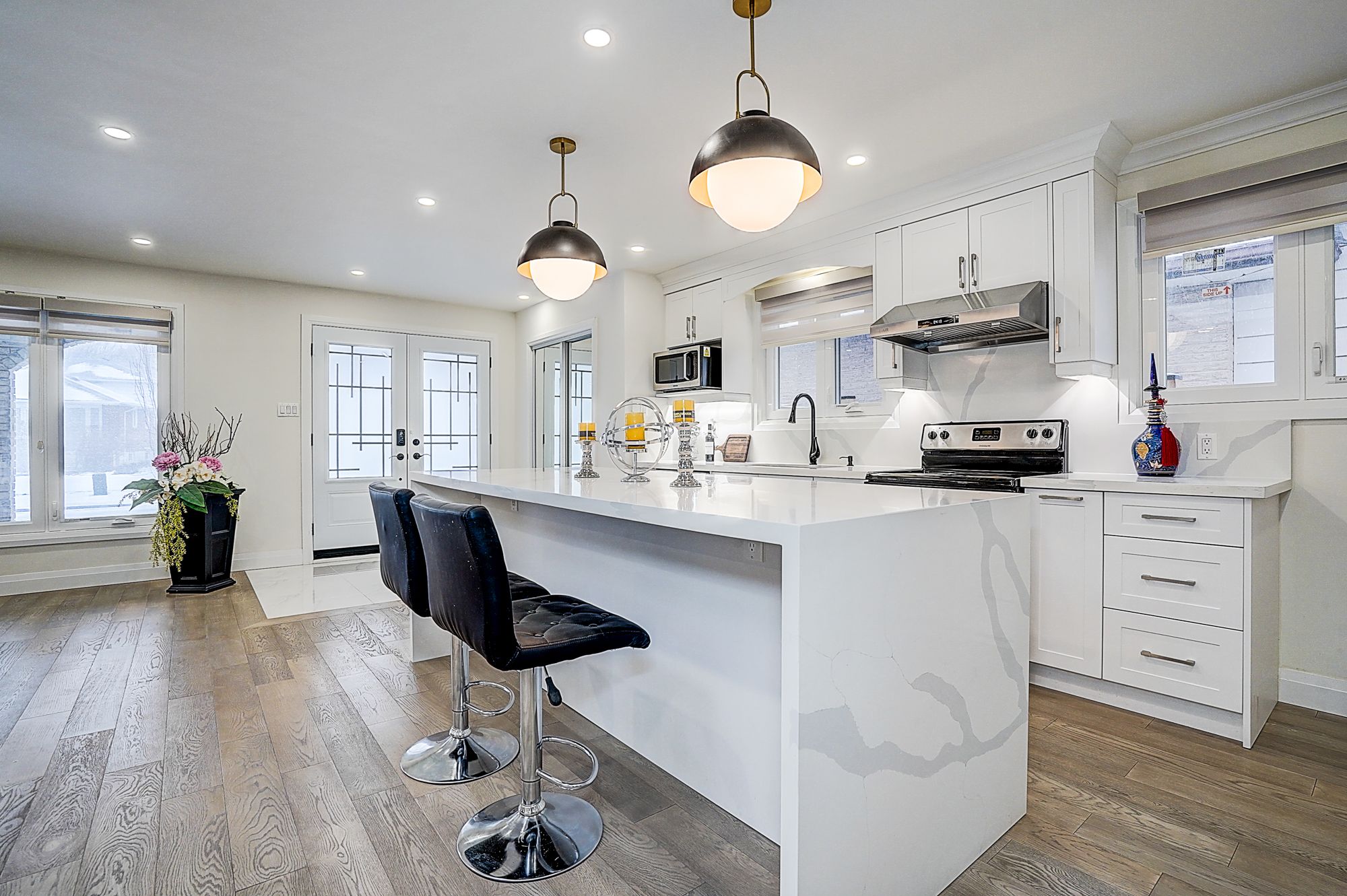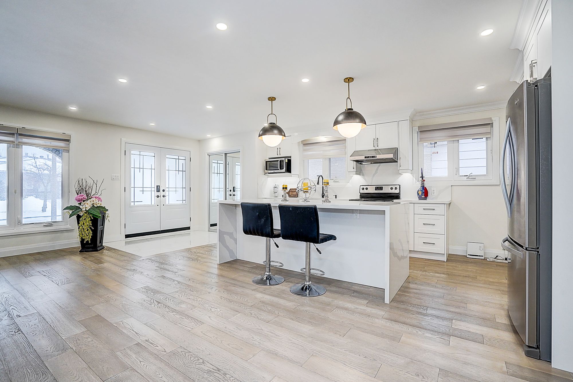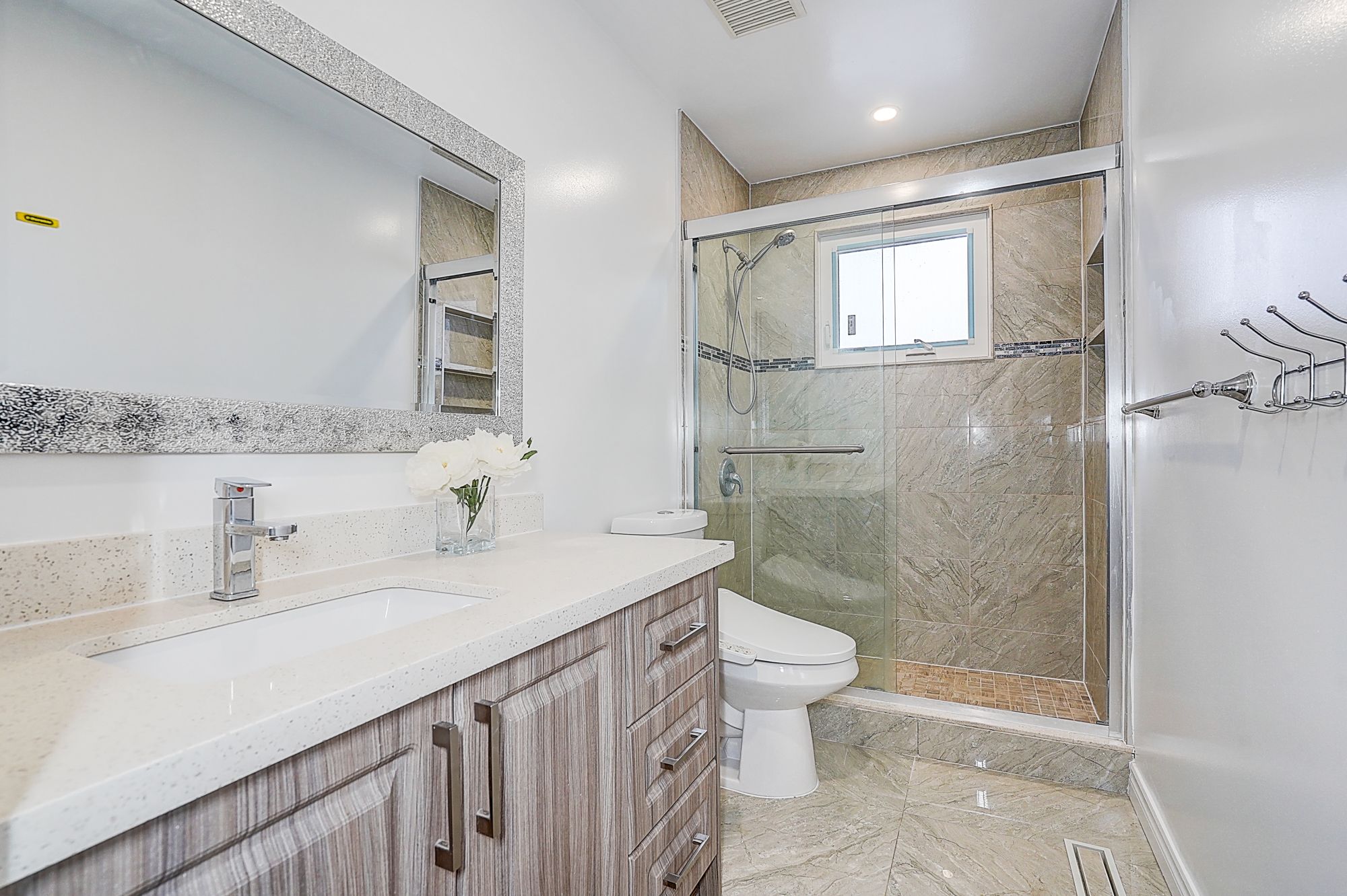 A rare, fully updated 4-level backsplit 50 x 120 ft lot in agincourt south-malvern west, offers exceptional flexibility for multi-generation living, with multiple private entrances, modern finishes & quick access to hwy 401. This home is ideal for large families seeking separate living spaces while staying under one roof in a convenient location, minutes to mccowan & sheppard, scarborough town centre, centennial & multiple ttc routes. The quiet, family-friendly street keeps you close to schools, parks, shops, and everyday amenities while still allowing fast dt & gta commutes. This backsplit features 4 separate entrances: a main front entrance, a convenient side entrance, a walk-up lower-level entrance & a direct entrance from the attached double garage to a rear studio-style unit, creating excellent potential for in-law & guest suites. With 3+5 bedrooms, multiple living areas & finished lower level, the layout works beautifully for multi-generation or extended families who want both connection & privacy. The home is highlighted by 7 stylish 3 pc baths, 6 are ensuite, giving almost every bedroom its own private shower and for everyday comfort. Upper lever modern upgraded bathrooms feature quartz countertops and contemporary finishes, reducing future renovation needs and appealing to buyers who value move-in ready quality. Enjoy a modern main kitchen with an open concept feel, quartz countertops & central island with quartz waterfall, undermount s/s sink, lots of pot lights & s/s appliances, bright principal rooms with sky light hardwood floors. The property also offers 2nd full kitchen in the basement plus 2 bar/counter areas, providing excellent functionality for entertaining, extended family cooking, or separate living zones on different levels. Cac, newly updated interlock driveway & side back yard, attached double garage, & parking for several cars complete this turn-key opportunity in one of toronto's most convenient east end neighbourhoods.