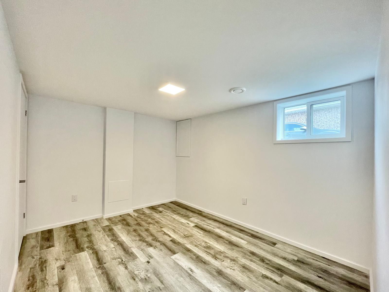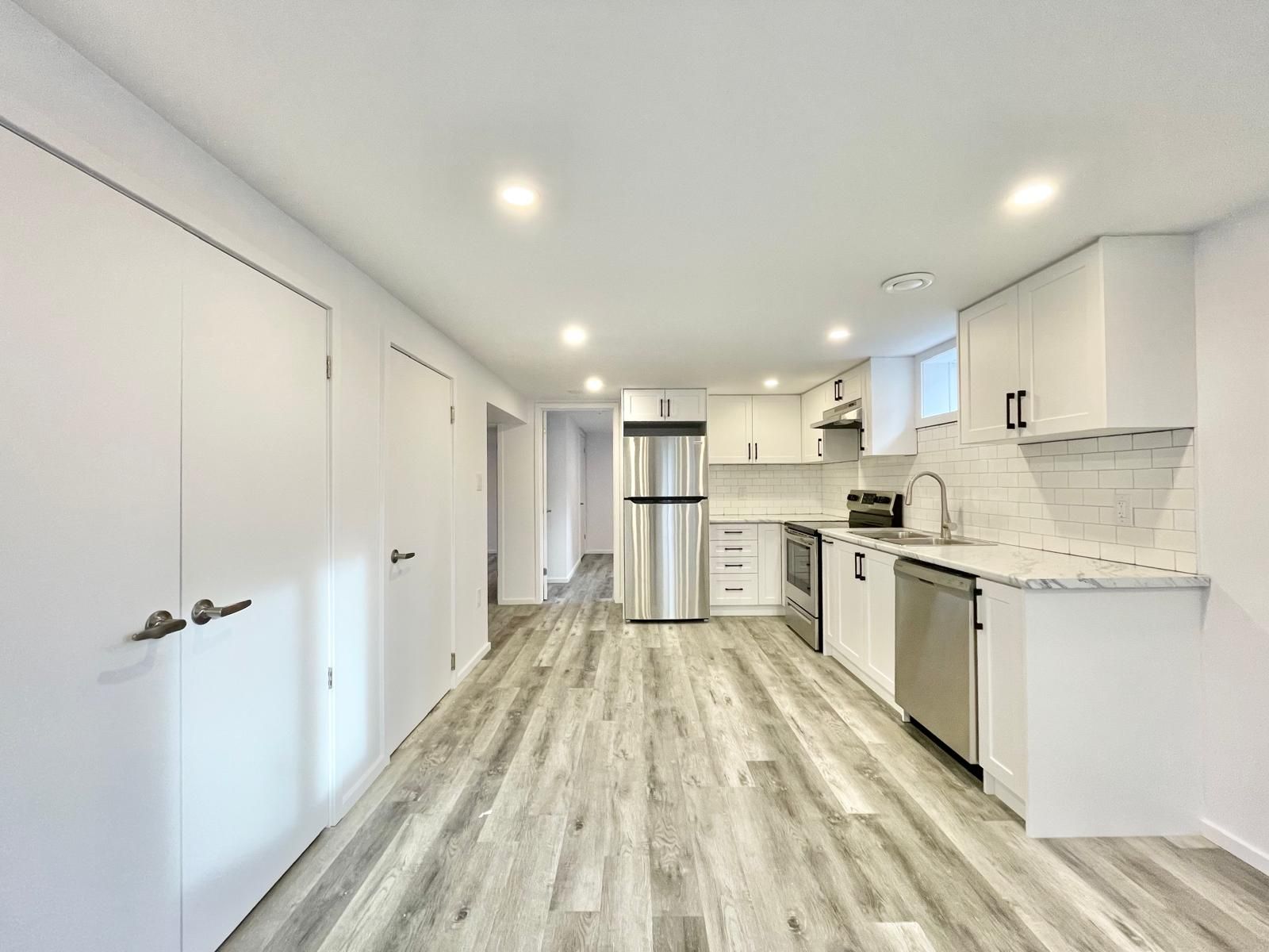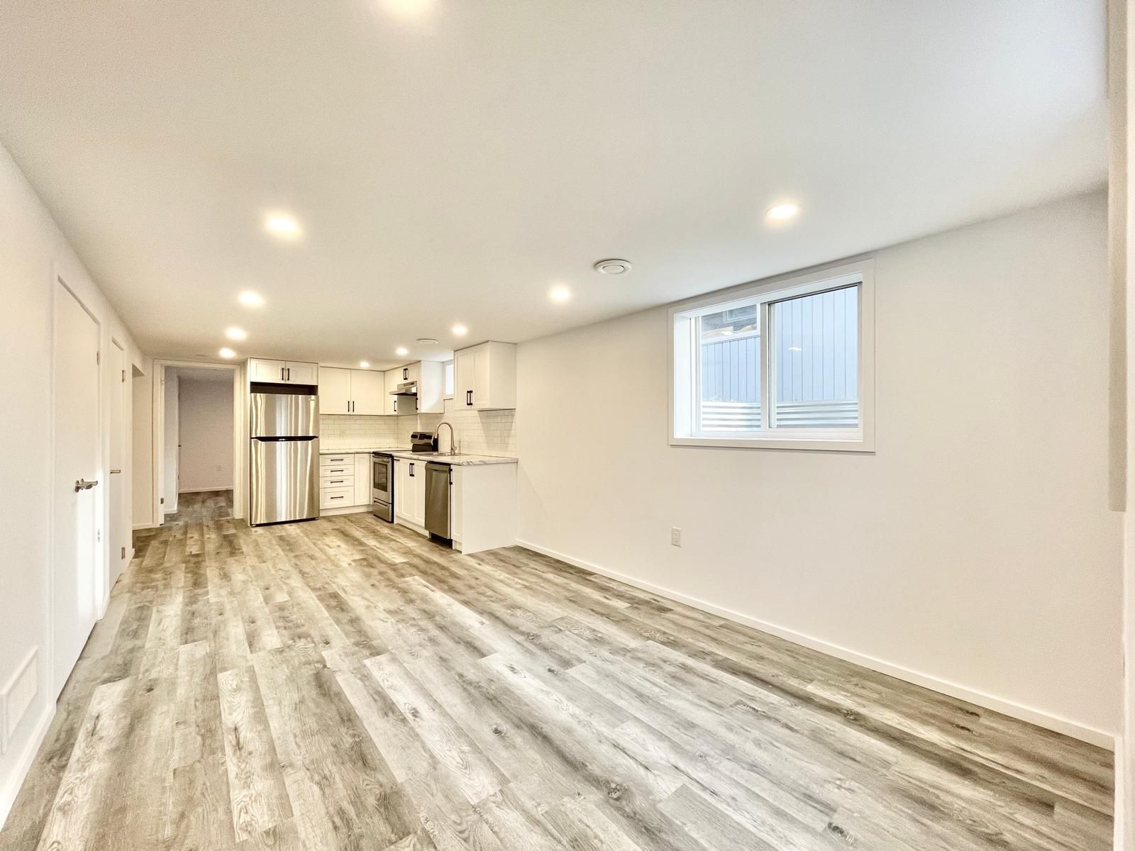 • Spacious 1,100 sq ft lower unit with an open-concept layout.