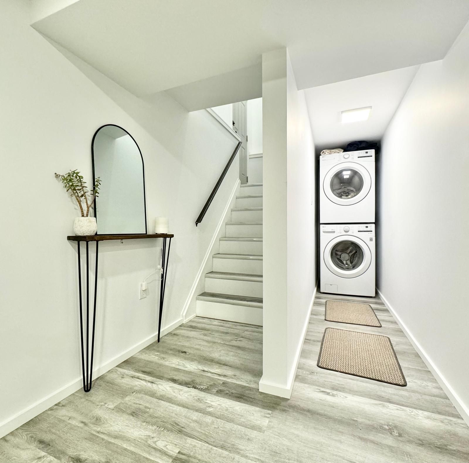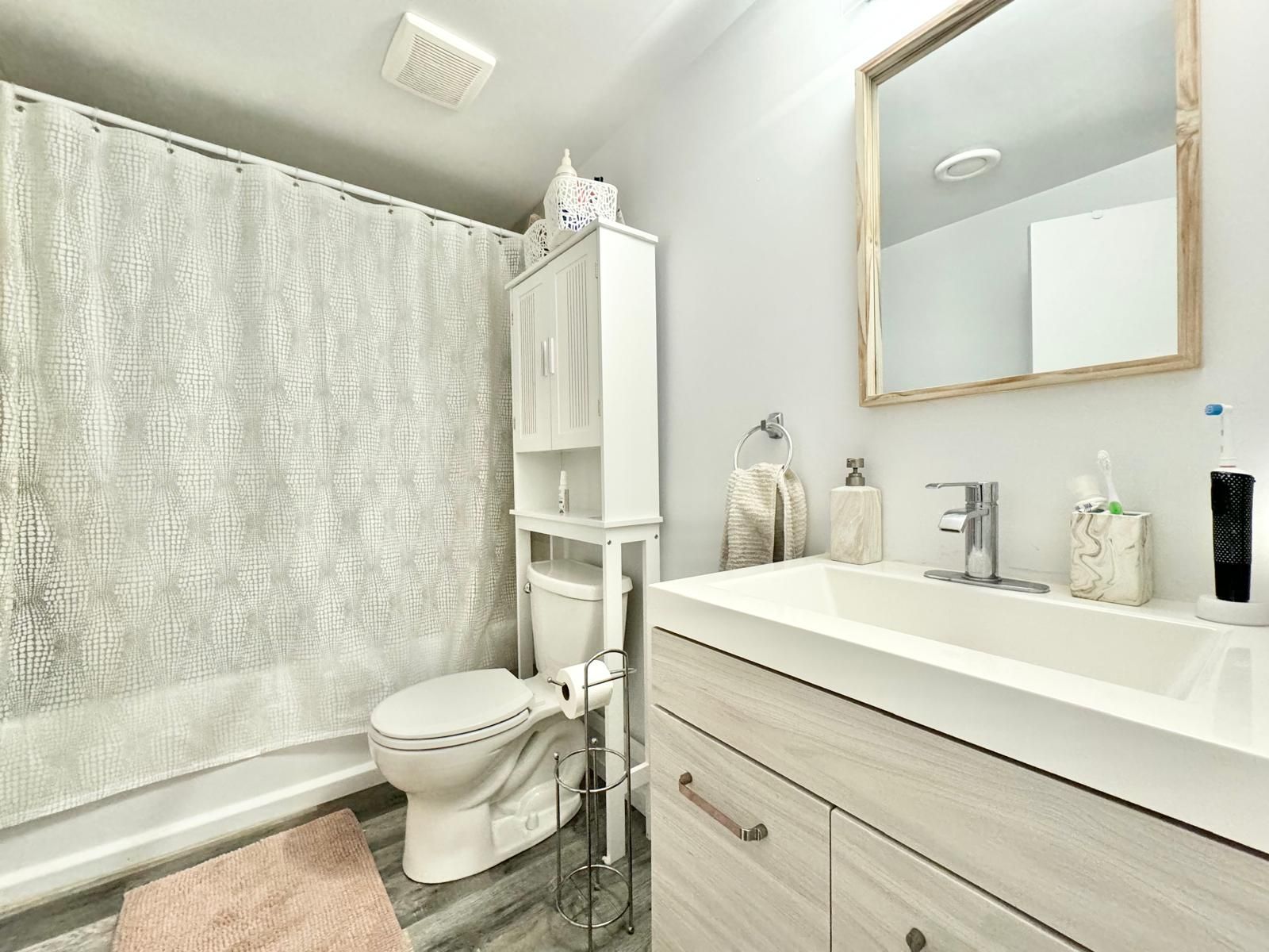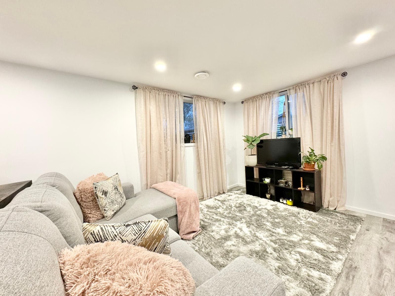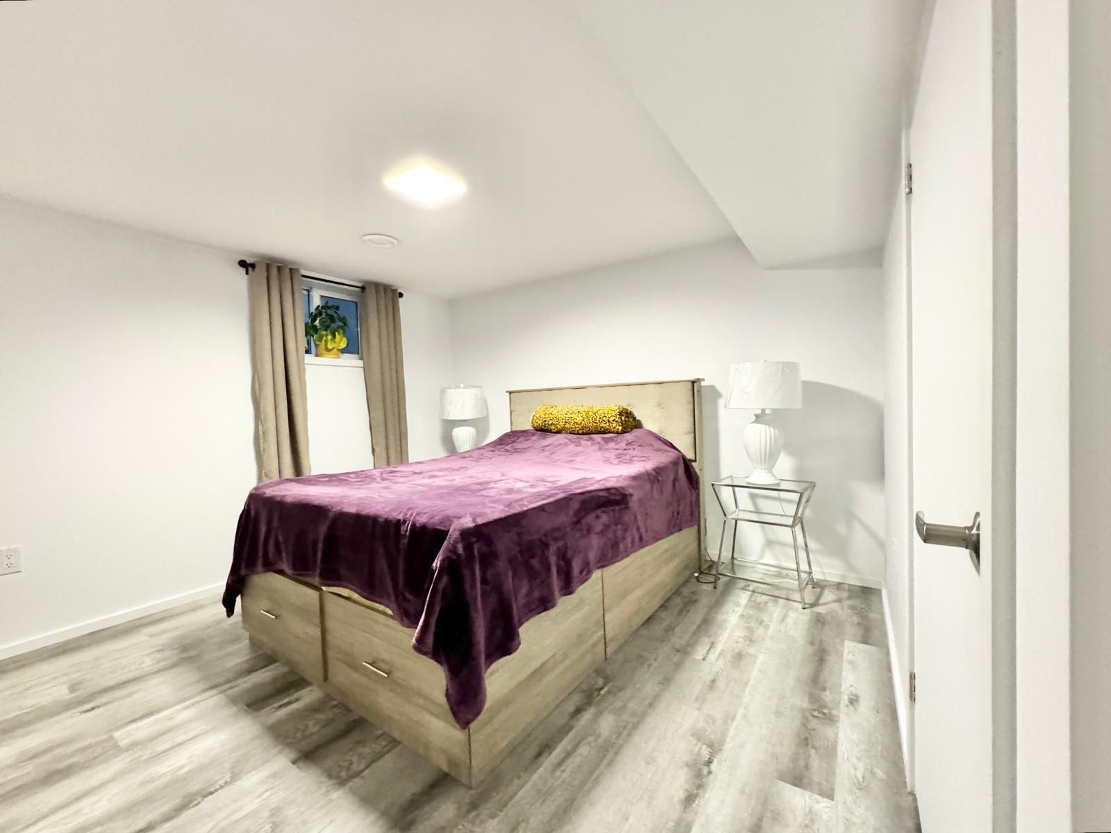 • Spacious 1,100 sq ft lower unit with an open-concept layout.